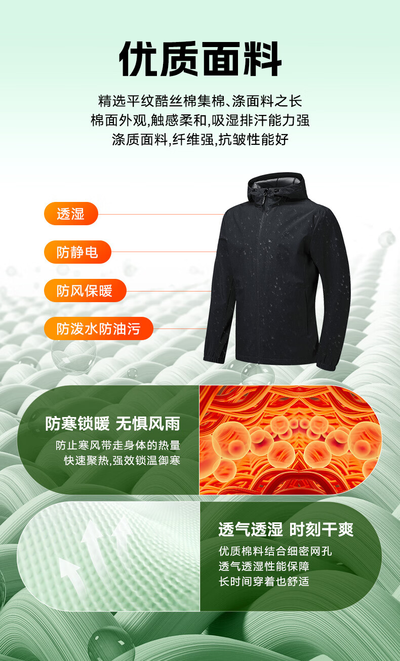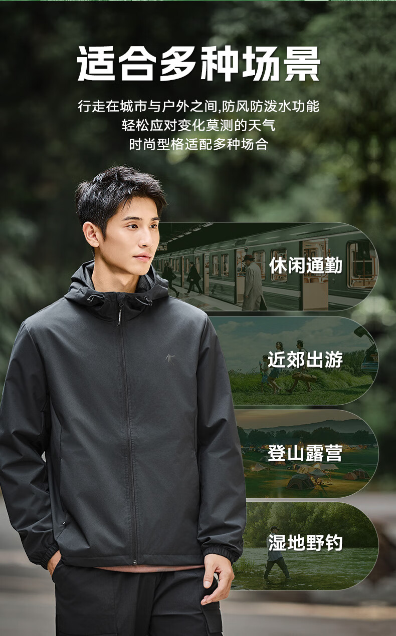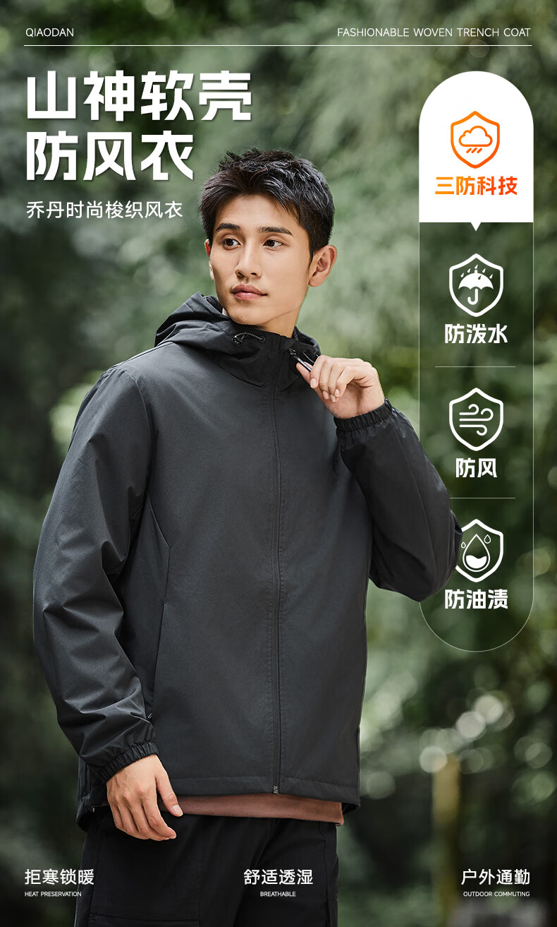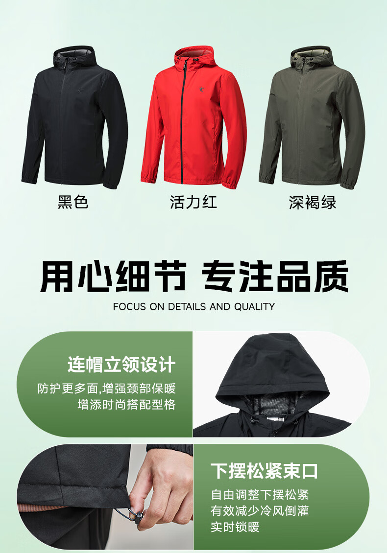 乔丹运动外套男2025秋季新款连帽风衣男休闲夹克三防户外冲锋运动服男