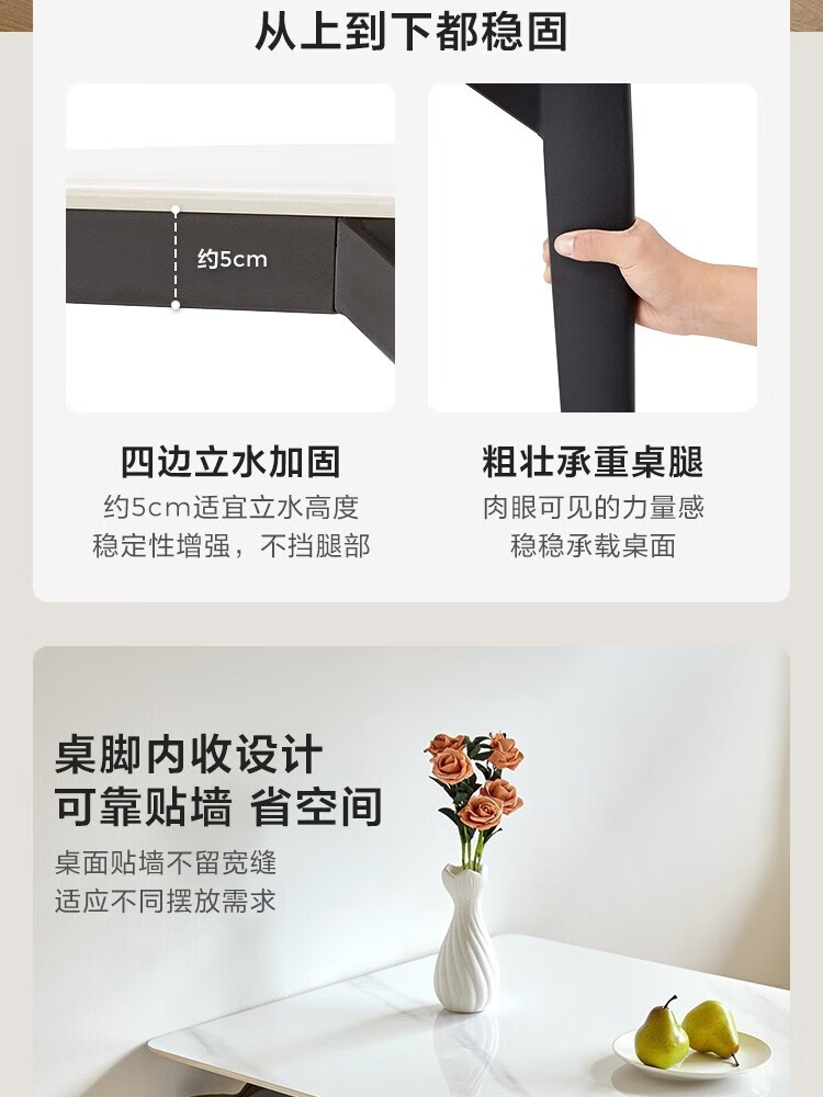 林氏家居现代简约岩板餐桌2023新款家用小户型饭桌林氏木业LH200 餐桌1.0米