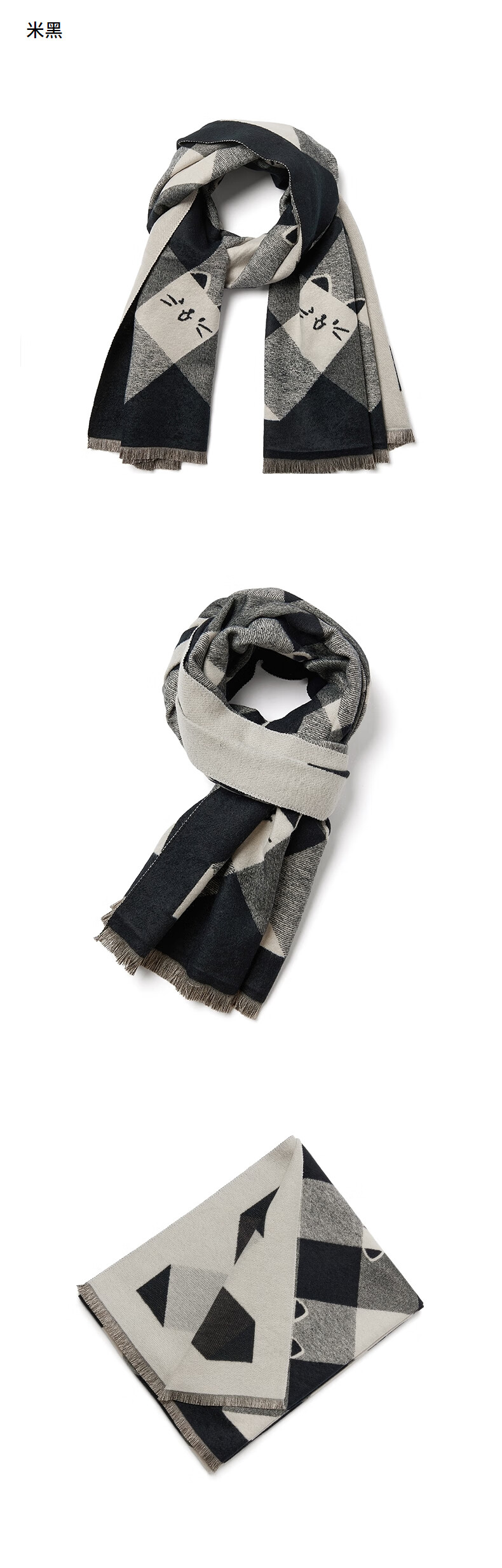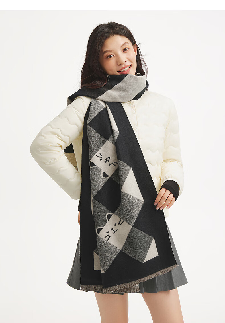 热风(Hotwind)【商场同款】女士围巾2025年冬季新款格纹小猫梭织气质保暖披肩 88米黑 67*180cm