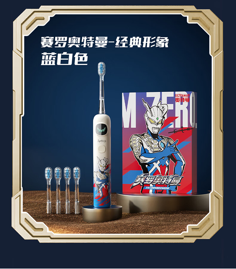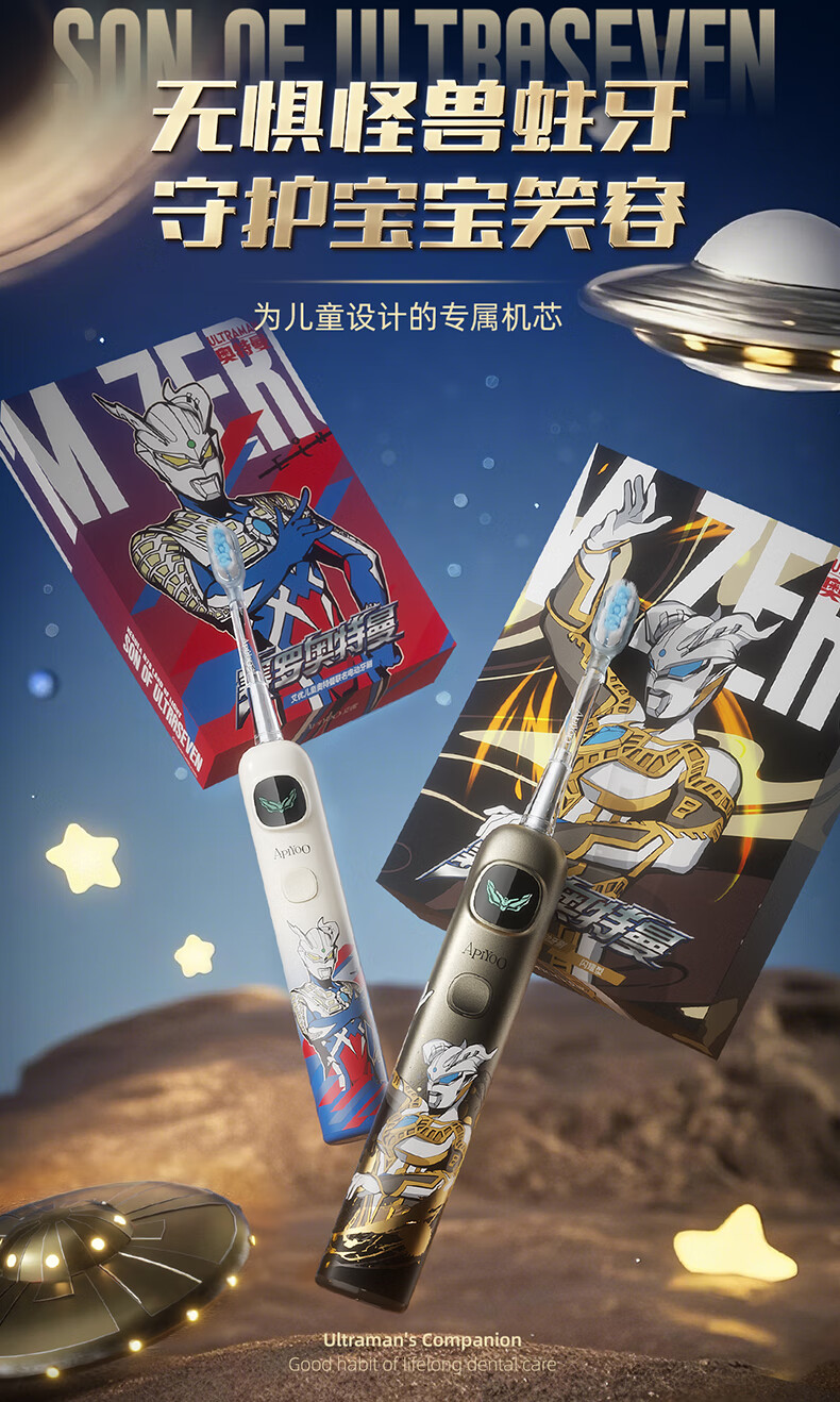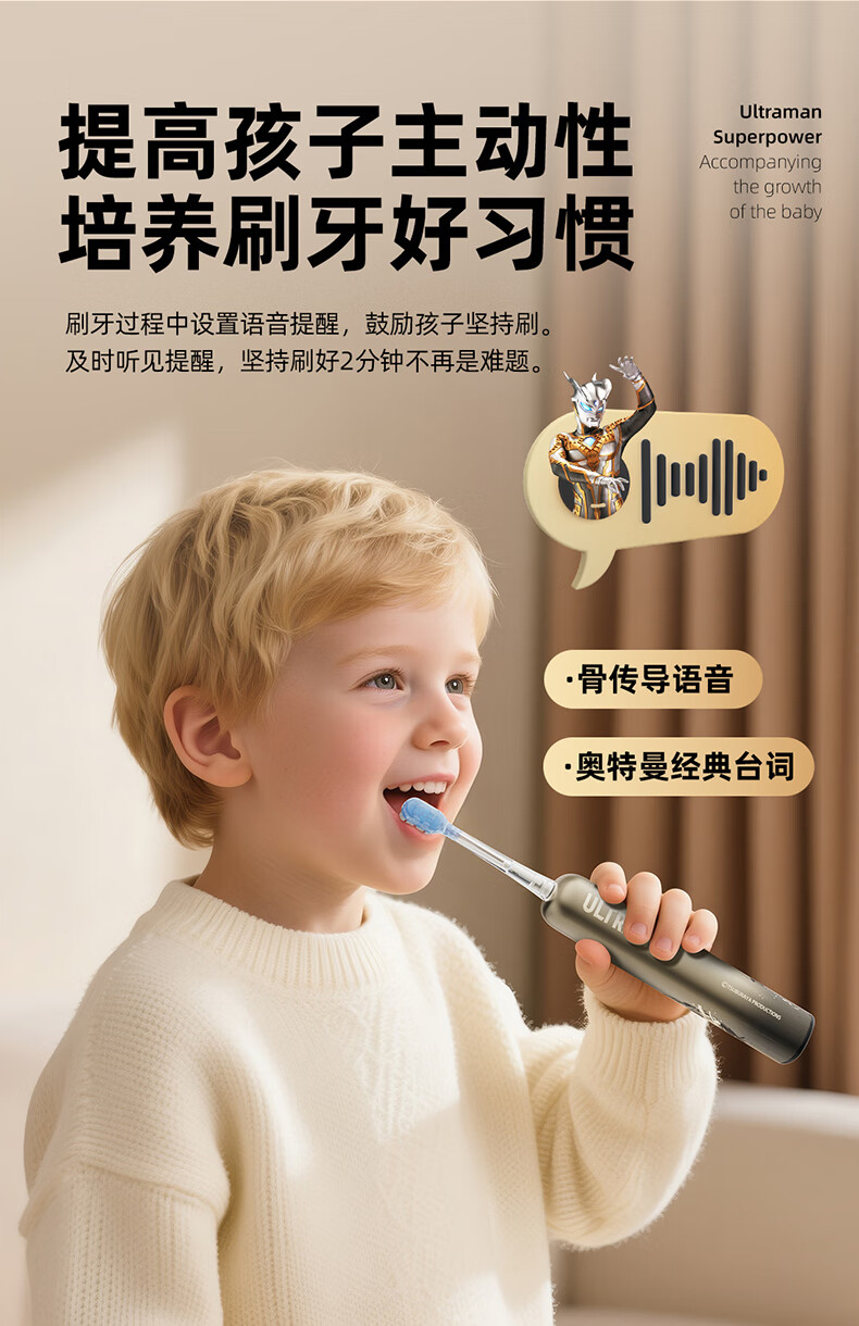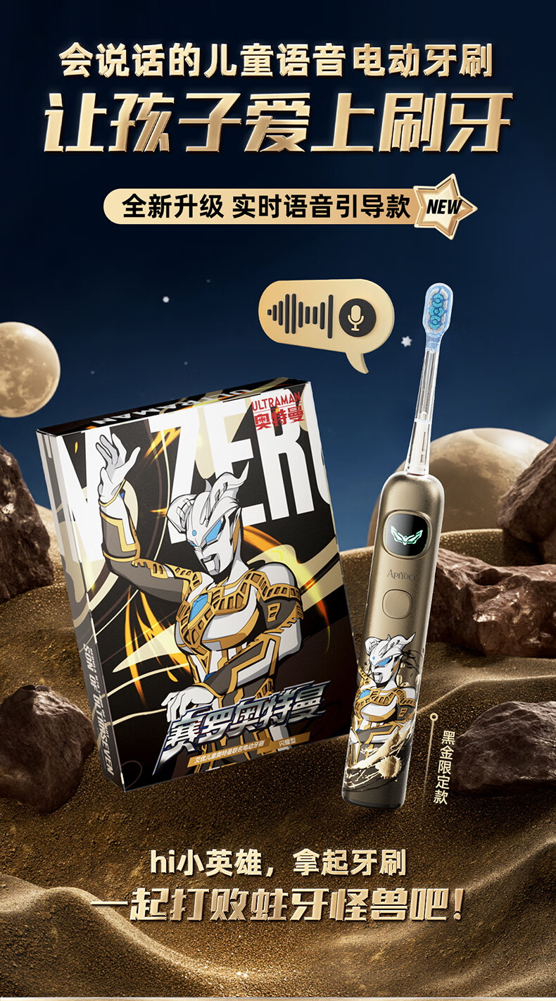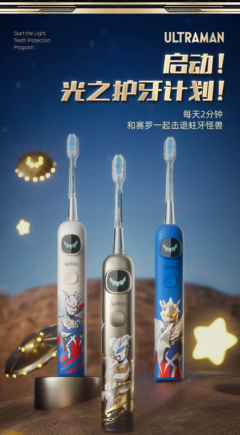 ApiYoo艾优A9pro奥特曼儿童电动牙刷语音提醒3-6-15岁软毛护龈 超长续航 送男女孩学生儿童节日生日礼物