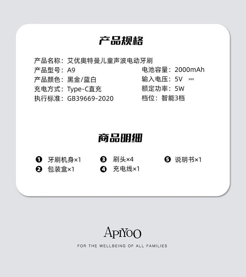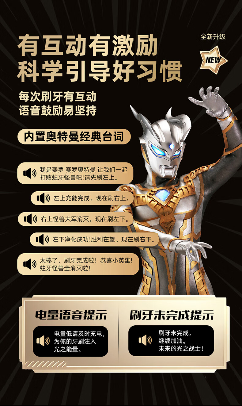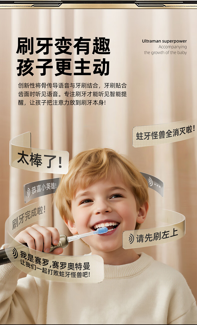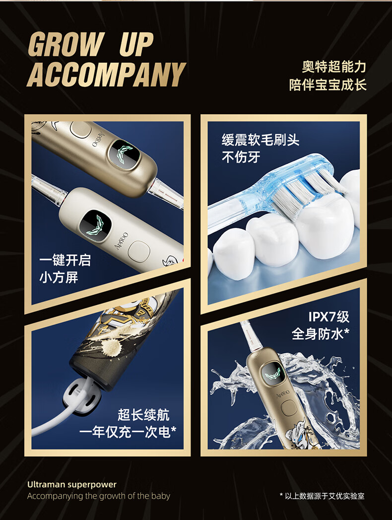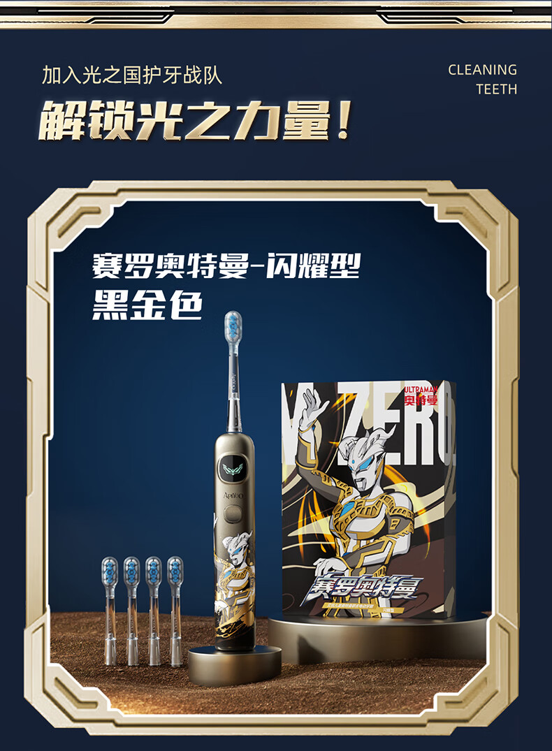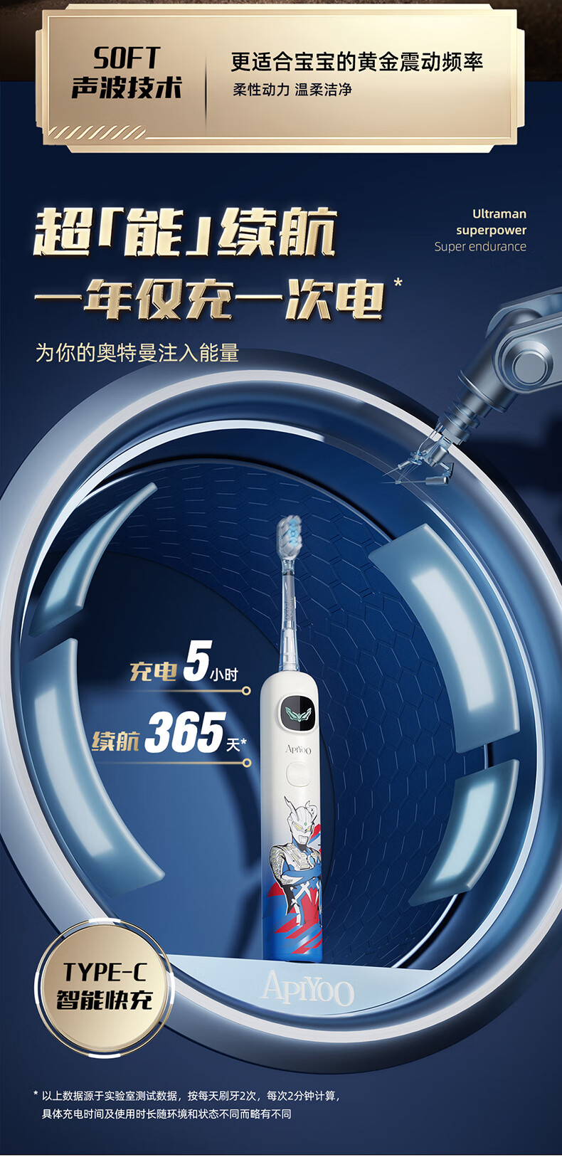 ApiYoo艾优A9pro奥特曼儿童电动牙刷语音提醒3-6-15岁软毛护龈 超长续航 送男女孩学生儿童节日生日礼物