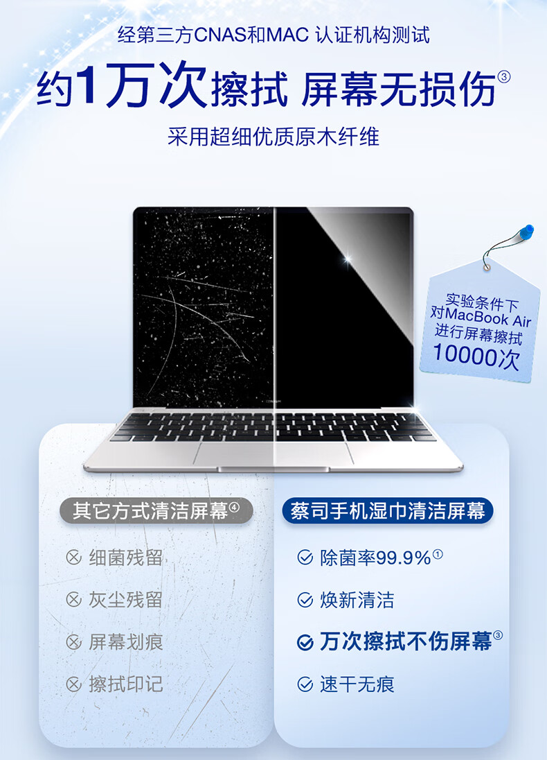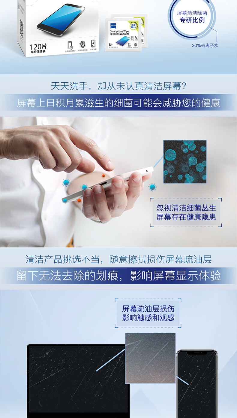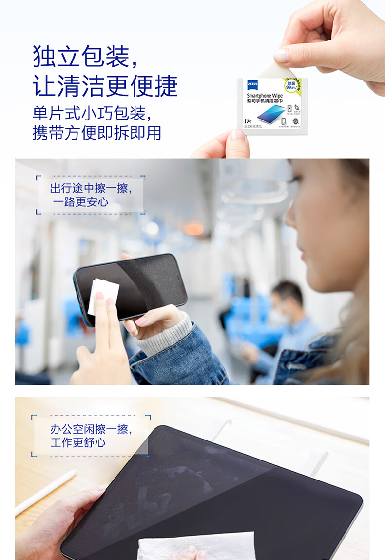 zeiss蔡司手机除菌清洁湿巾 擦钢琴mac苹果笔记本电脑ipad平板 120片装