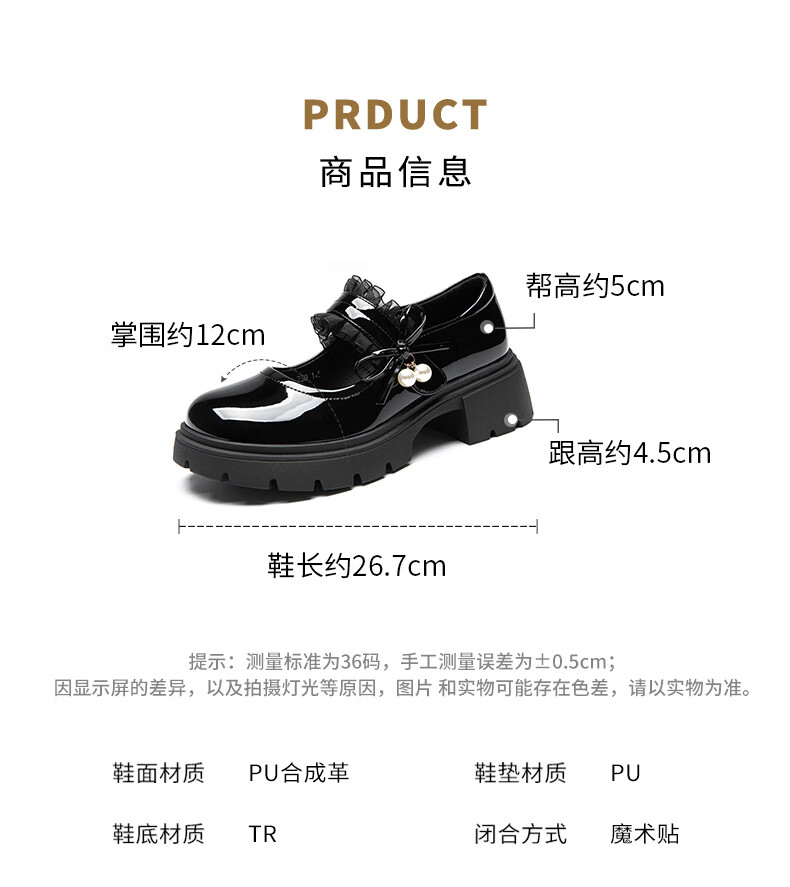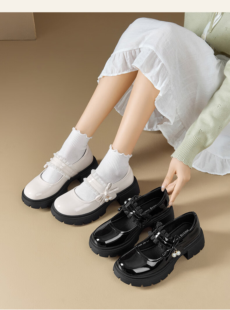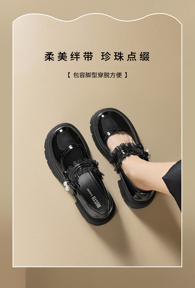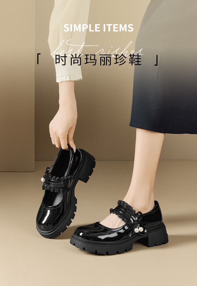大东玛丽珍女鞋2026年春季新款厚底洛丽塔圆头单鞋0225 黑色 35