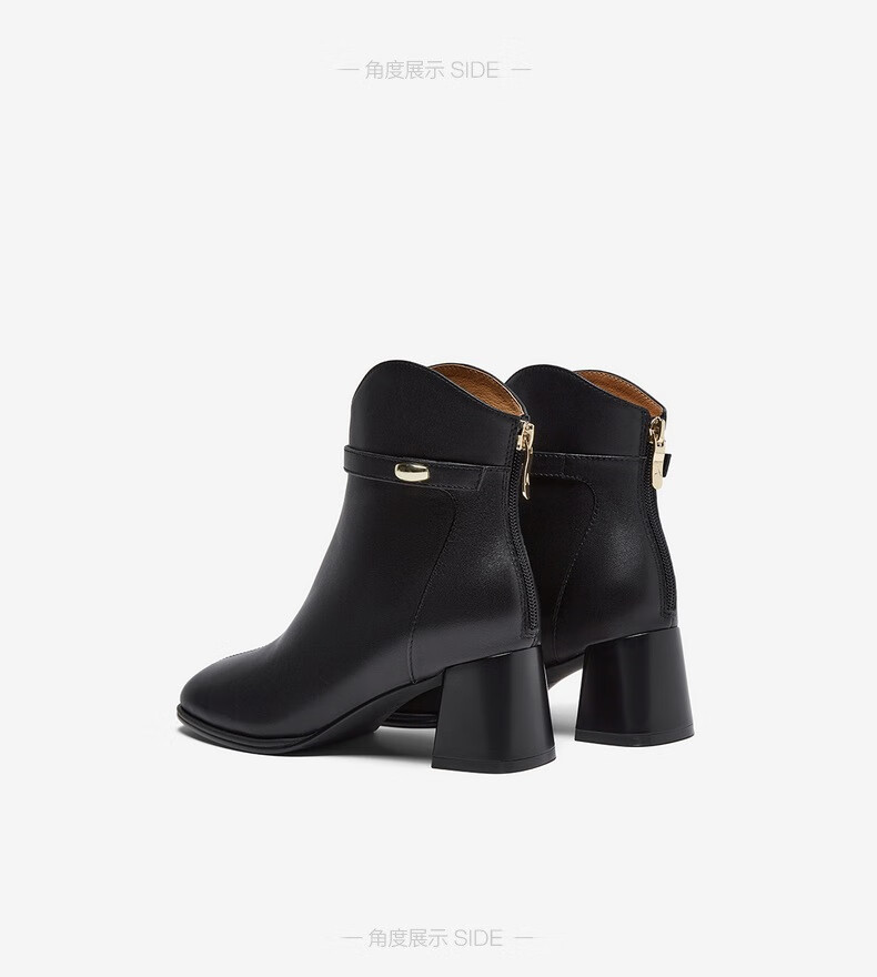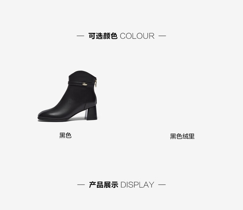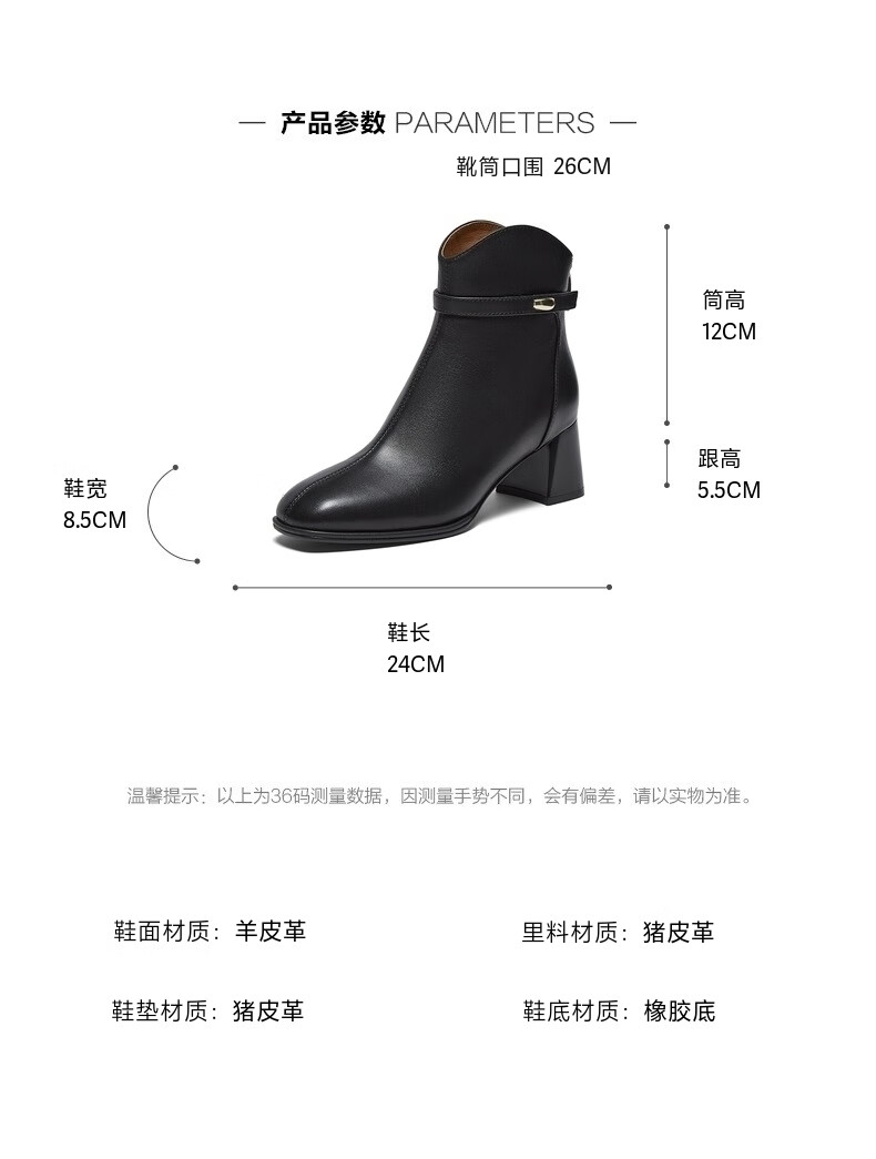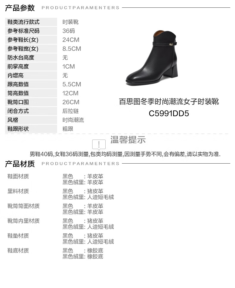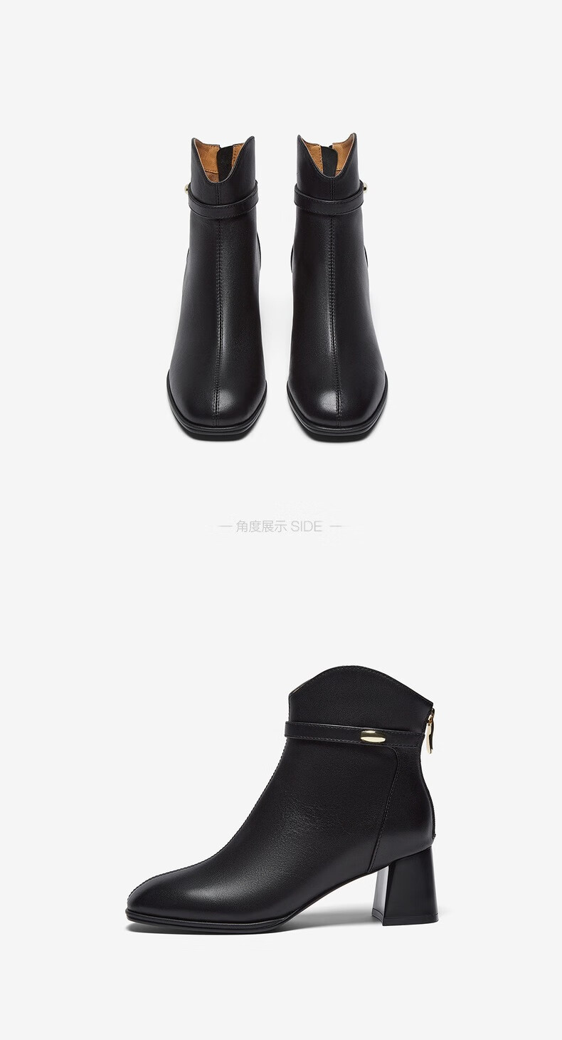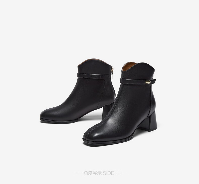百思图2025冬季商场新款粗跟羊皮靴法式小踝靴女短靴C5991DD5【预售】 黑色 34