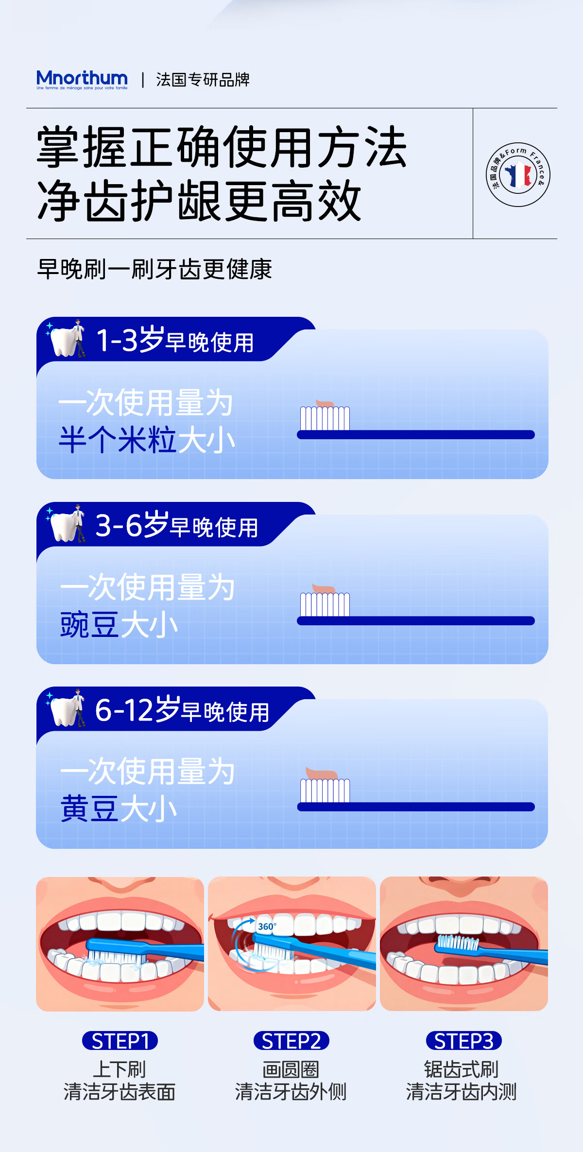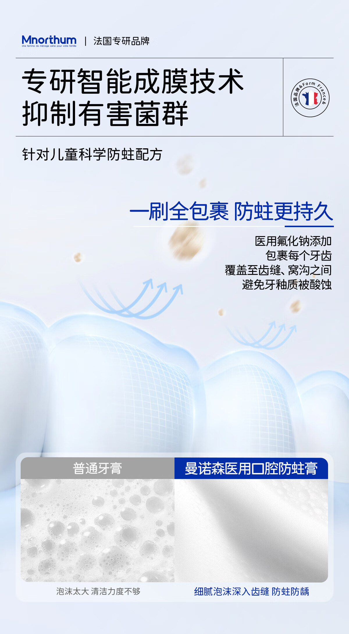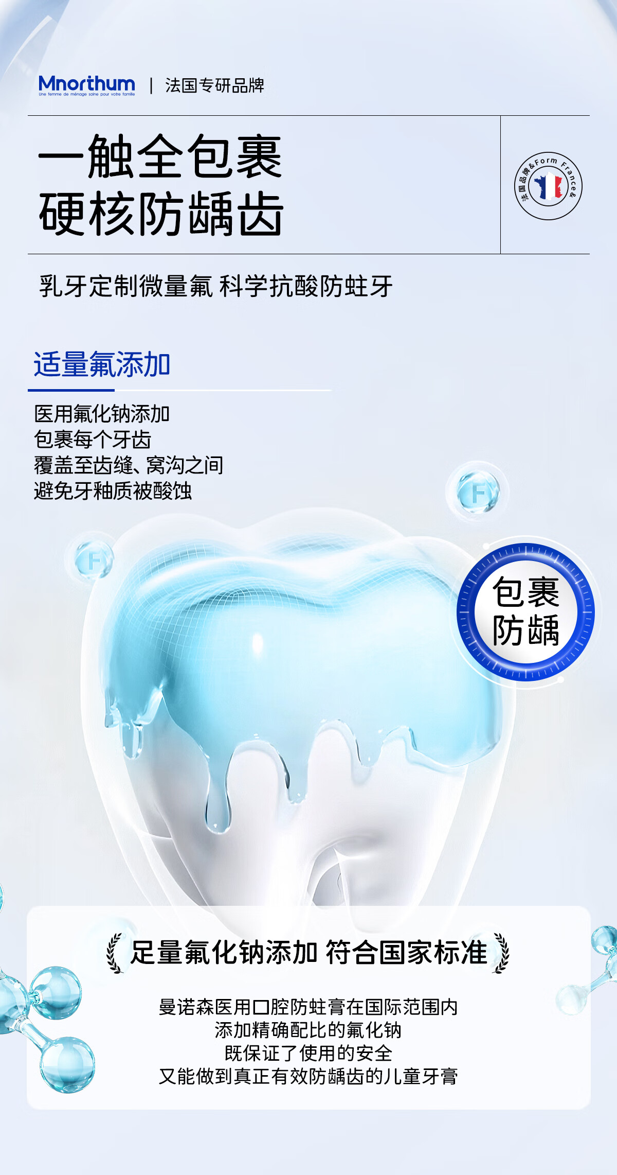 曼诺森医用口腔儿童牙膏3-6-12岁防蛀含氟换牙期除菌抗糖宝宝固齿防龋 【医用级】儿童防蛀牙膏*1