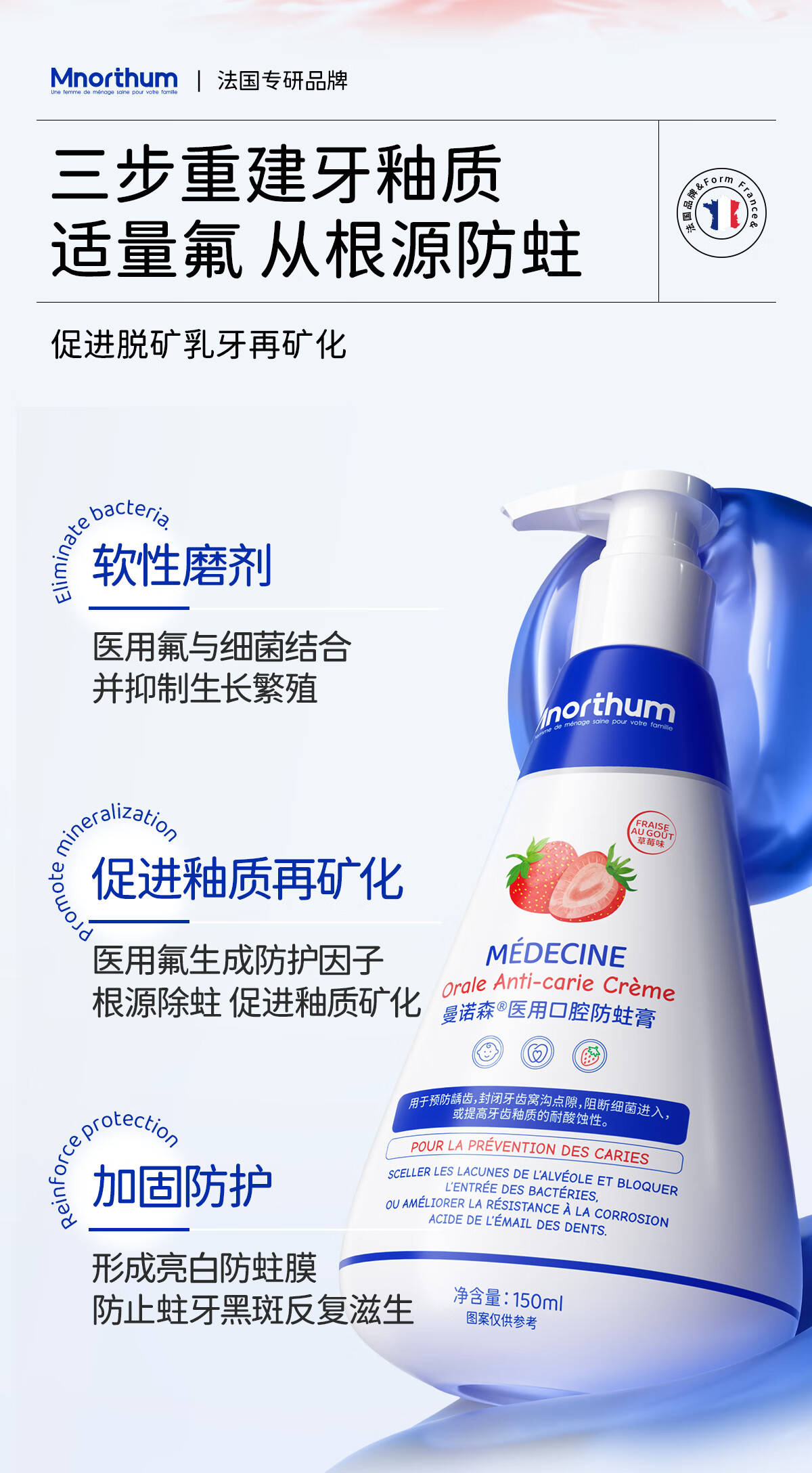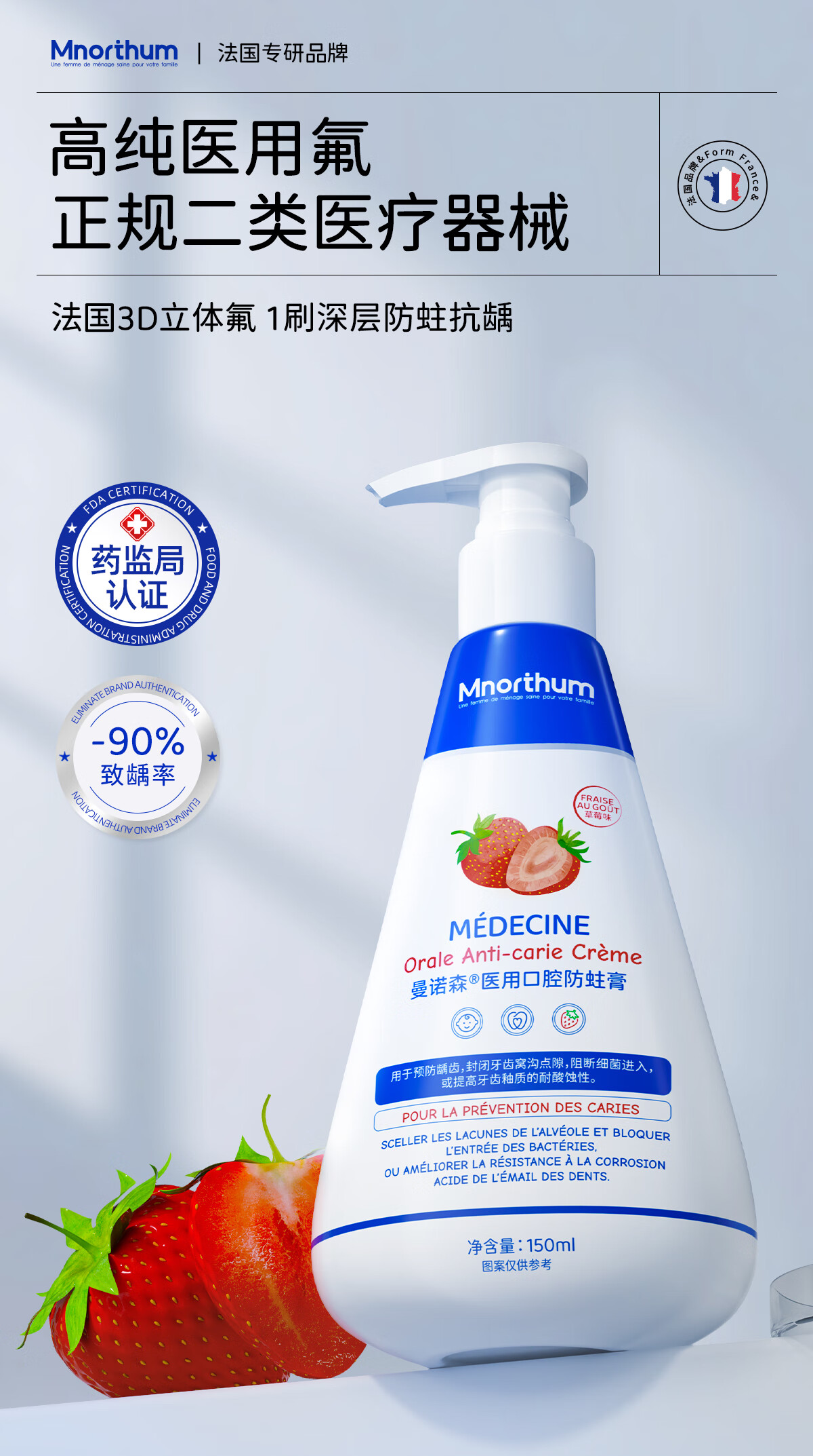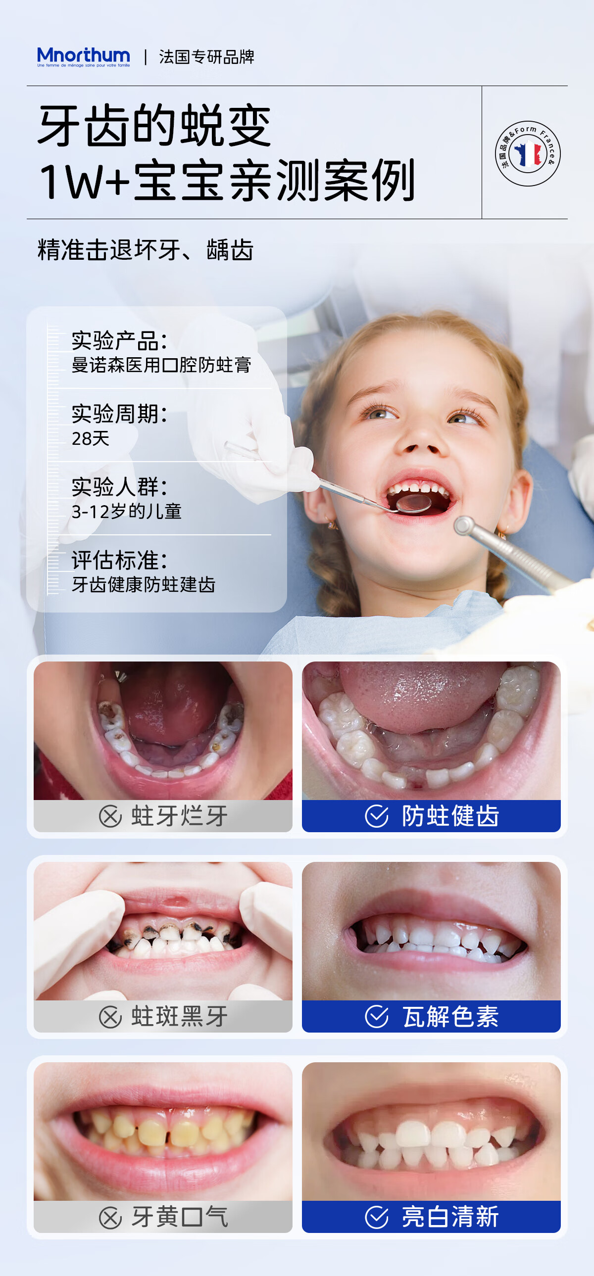 曼诺森医用口腔儿童牙膏3-6-12岁防蛀含氟换牙期除菌抗糖宝宝固齿防龋 【医用级】儿童防蛀牙膏*1