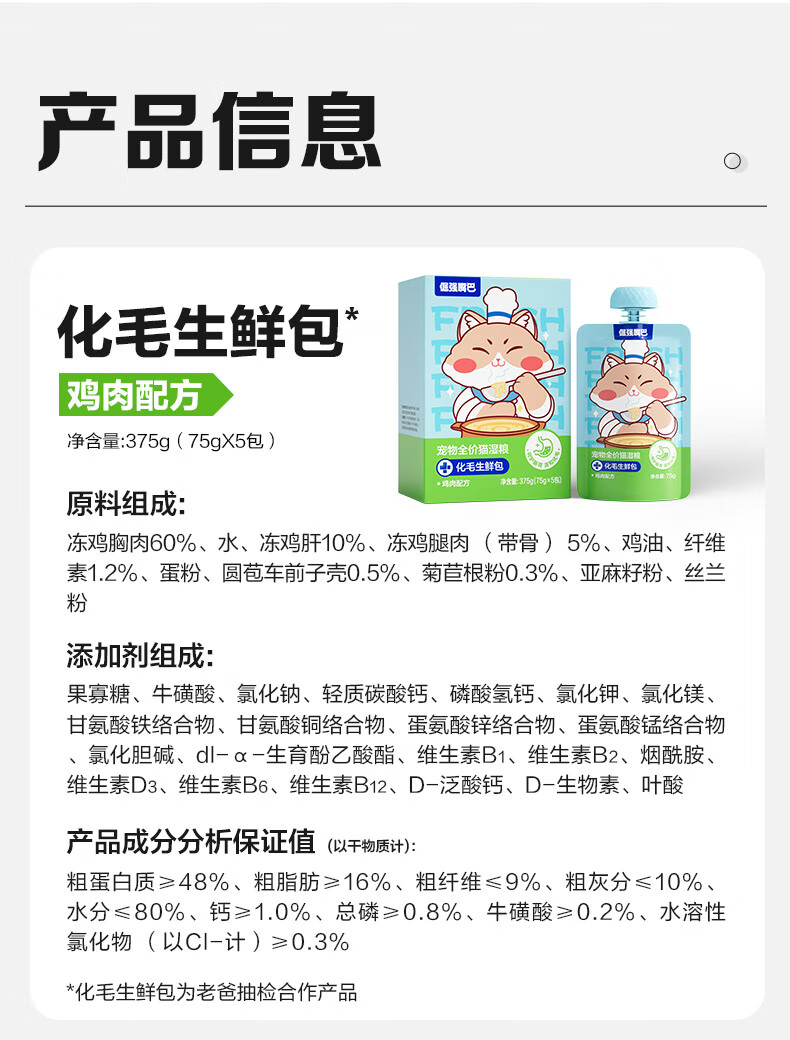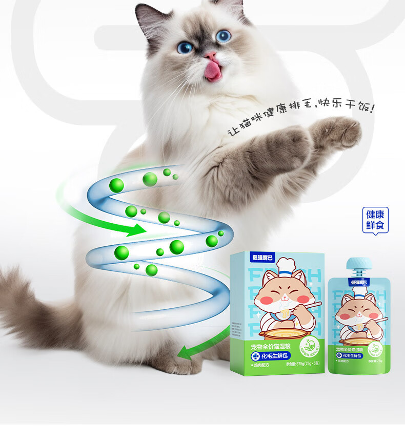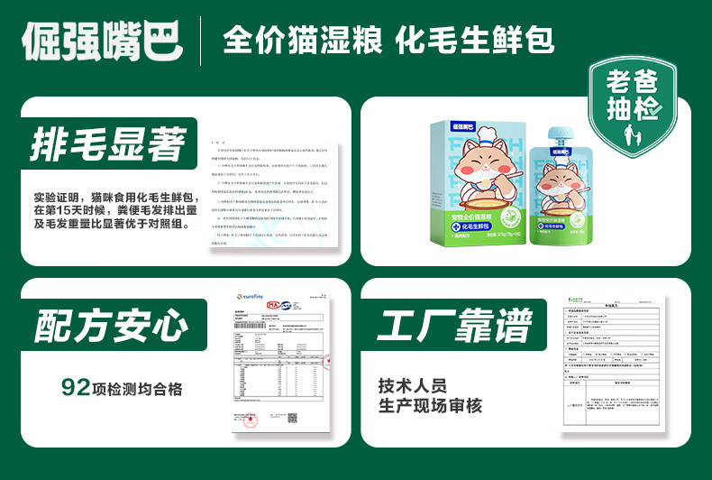 倔强嘴巴【老爸抽检】化毛排毛生鲜包猫主食湿粮 餐包轻松吐毛75g试吃装