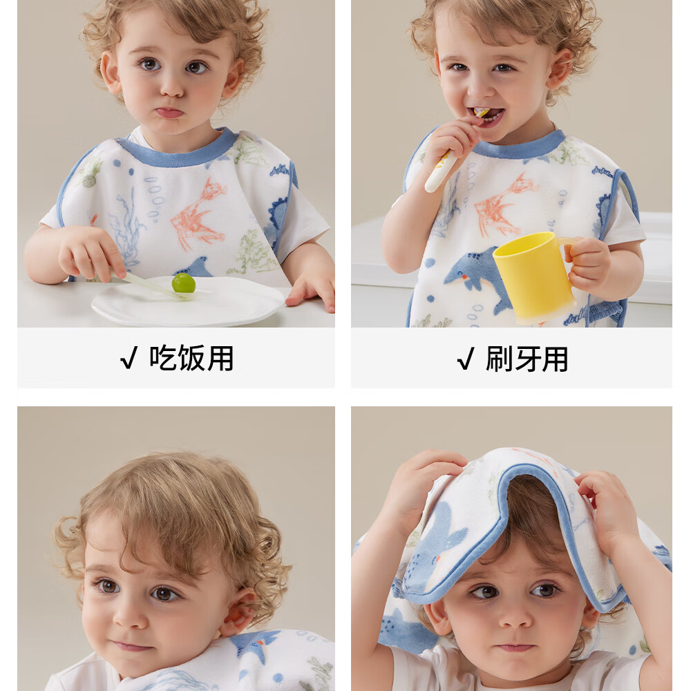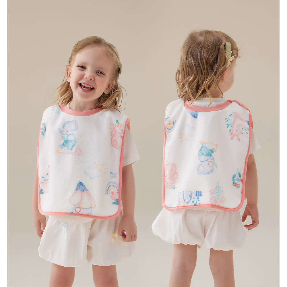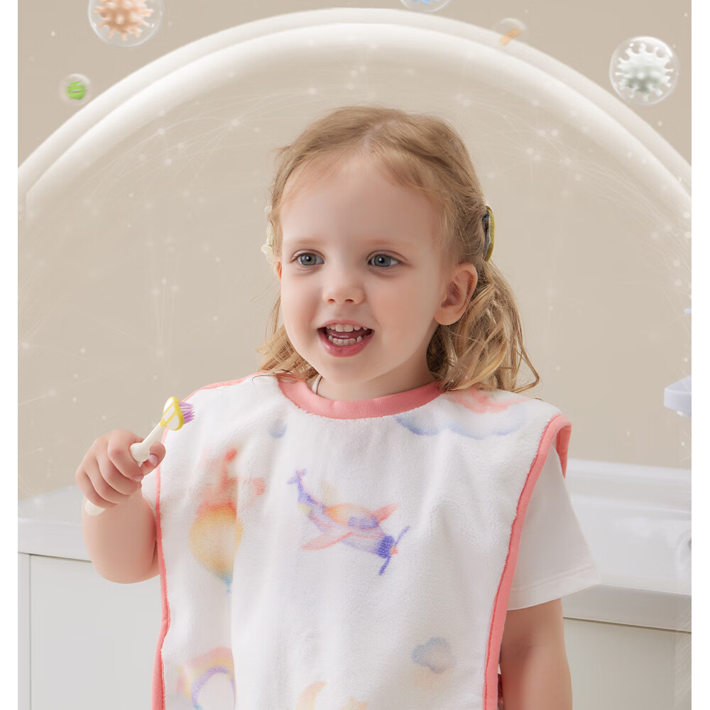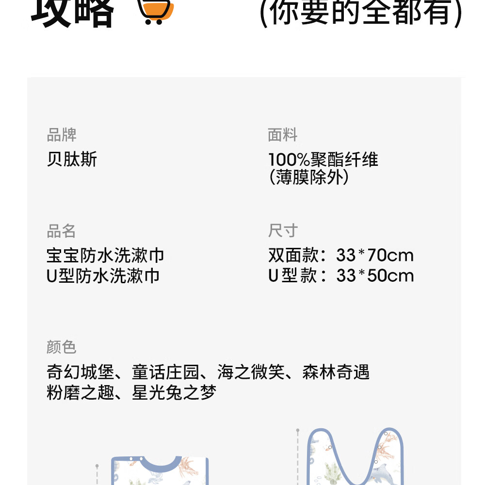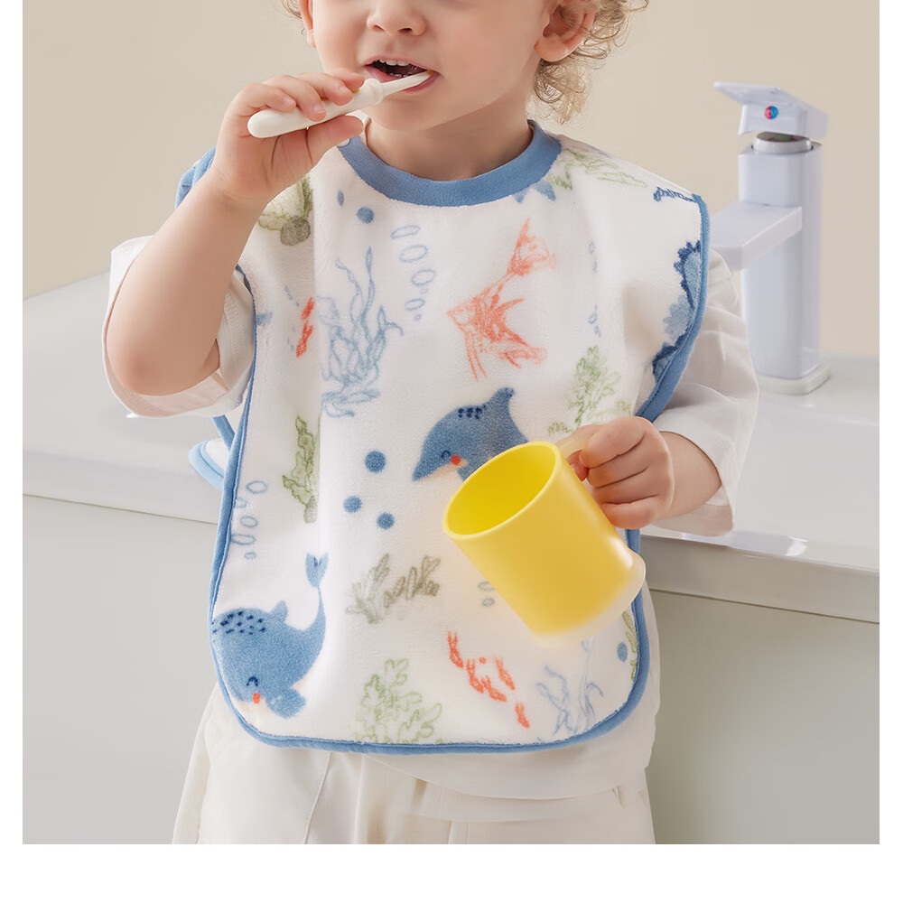 贝肽斯儿童洗漱巾宝宝刷牙围兜洗脸巾漱口巾防水不湿衣多功能毛巾 【单面防水U型款】奇幻城堡