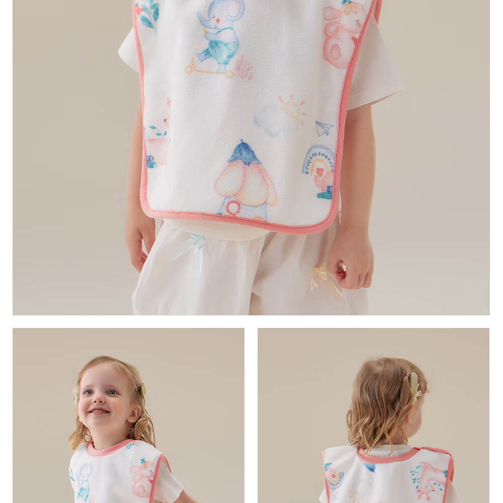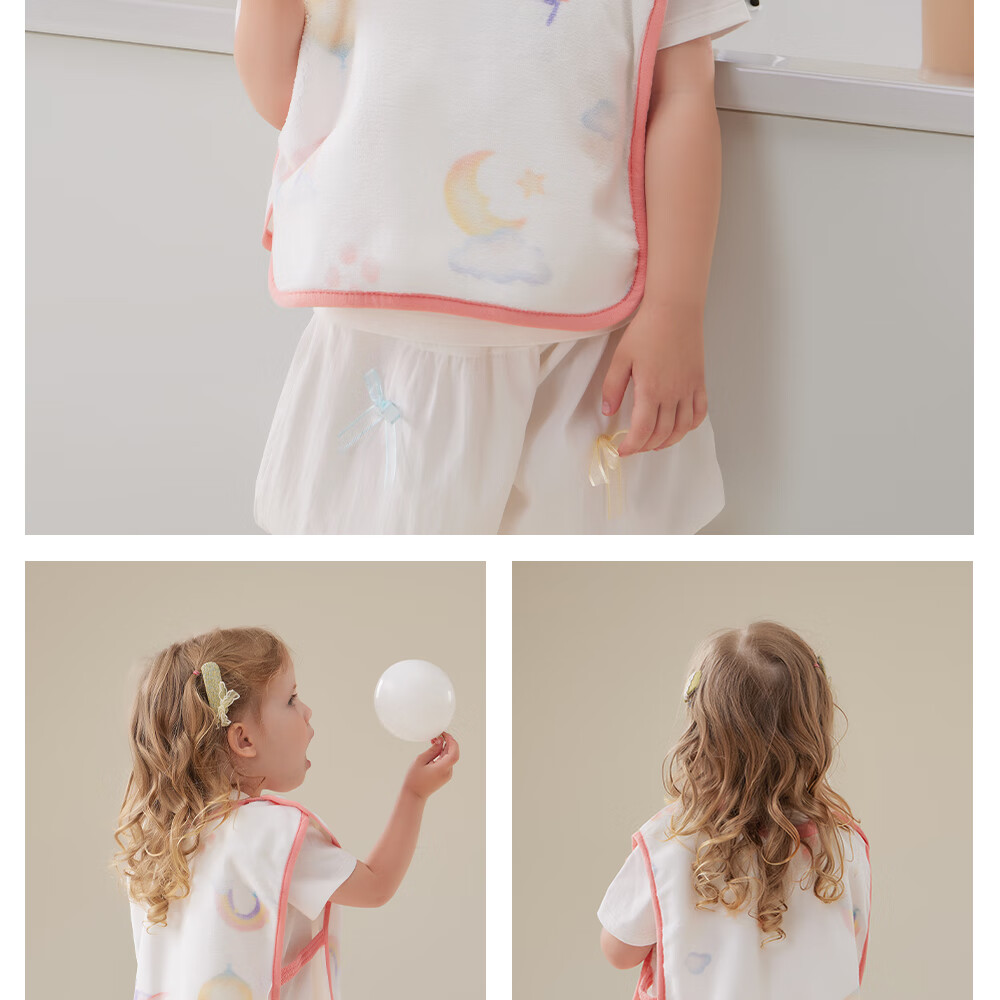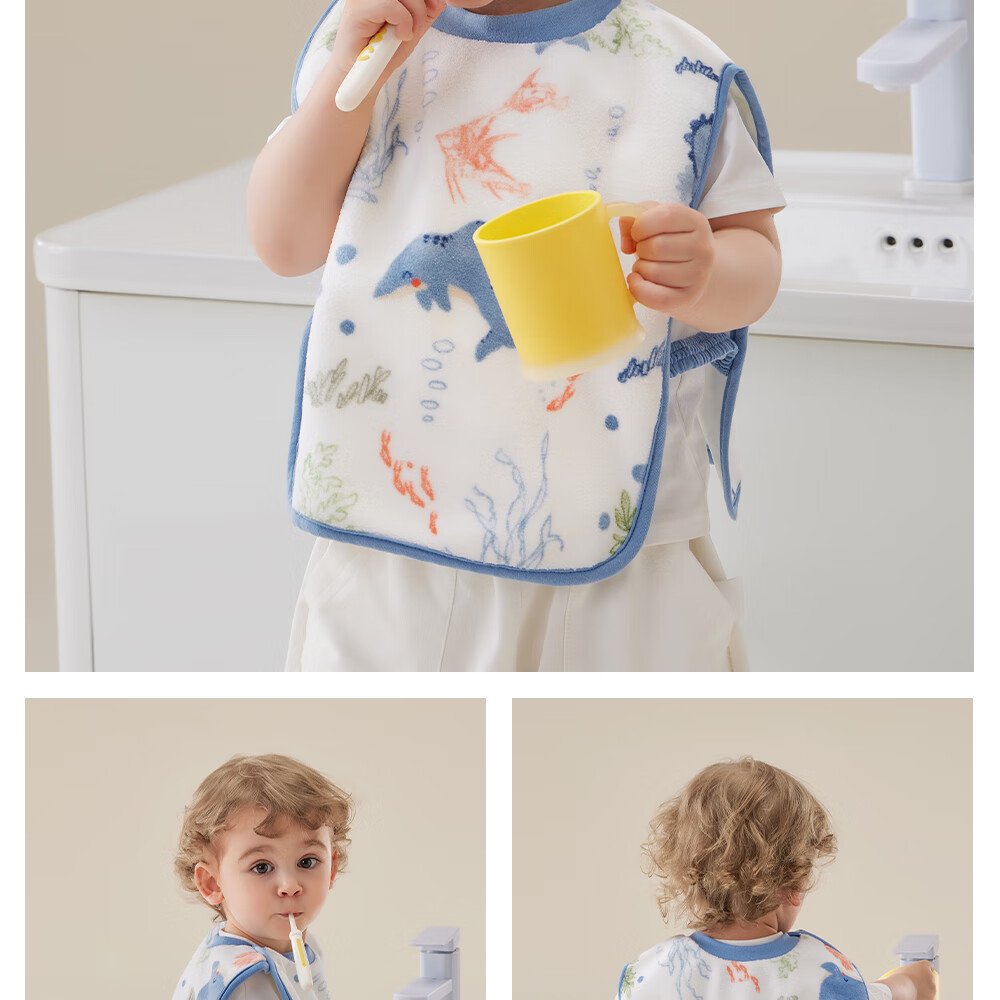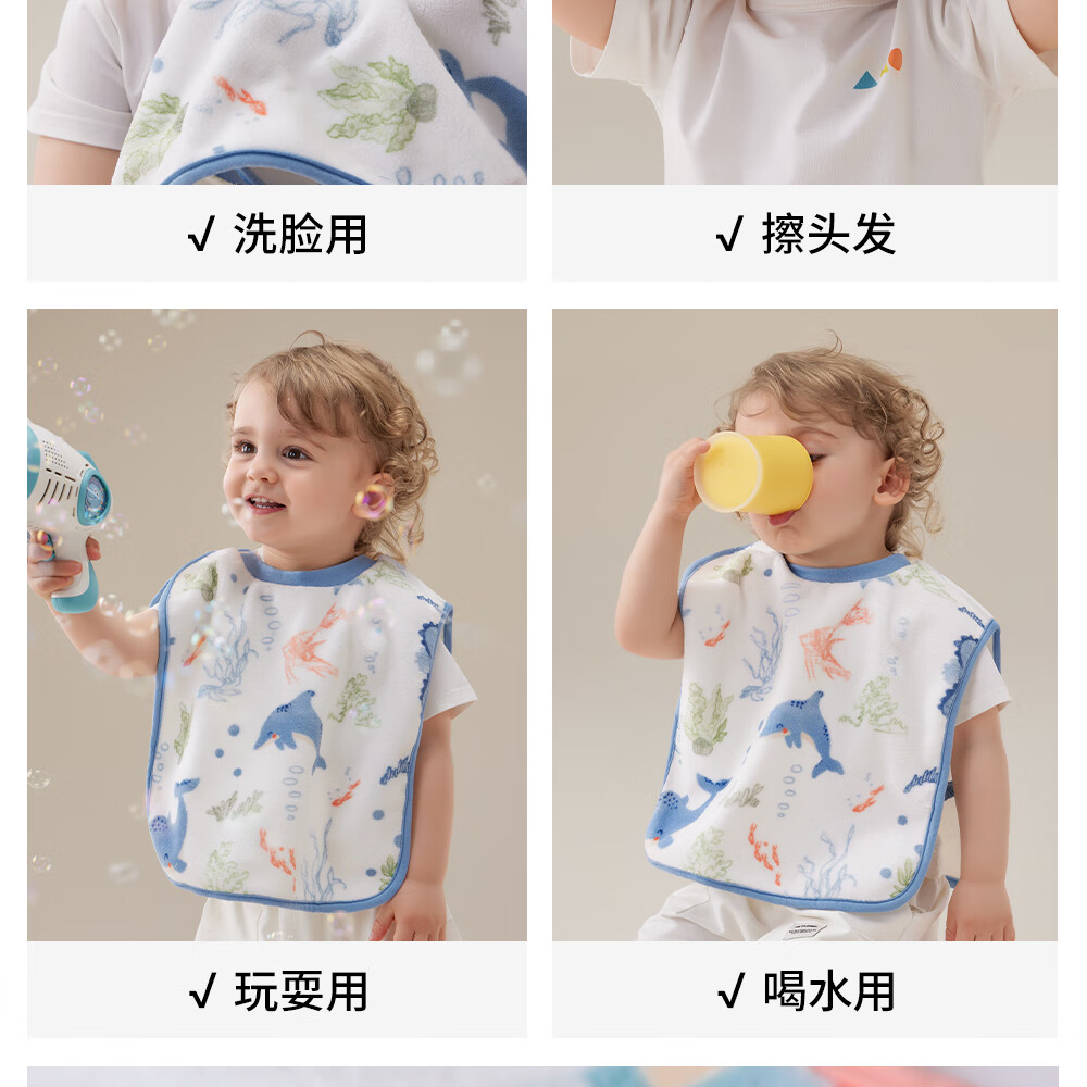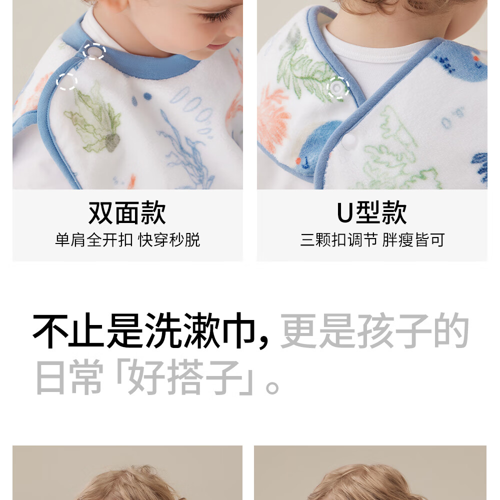 贝肽斯儿童洗漱巾宝宝刷牙围兜洗脸巾漱口巾防水不湿衣多功能毛巾 【单面防水U型款】奇幻城堡