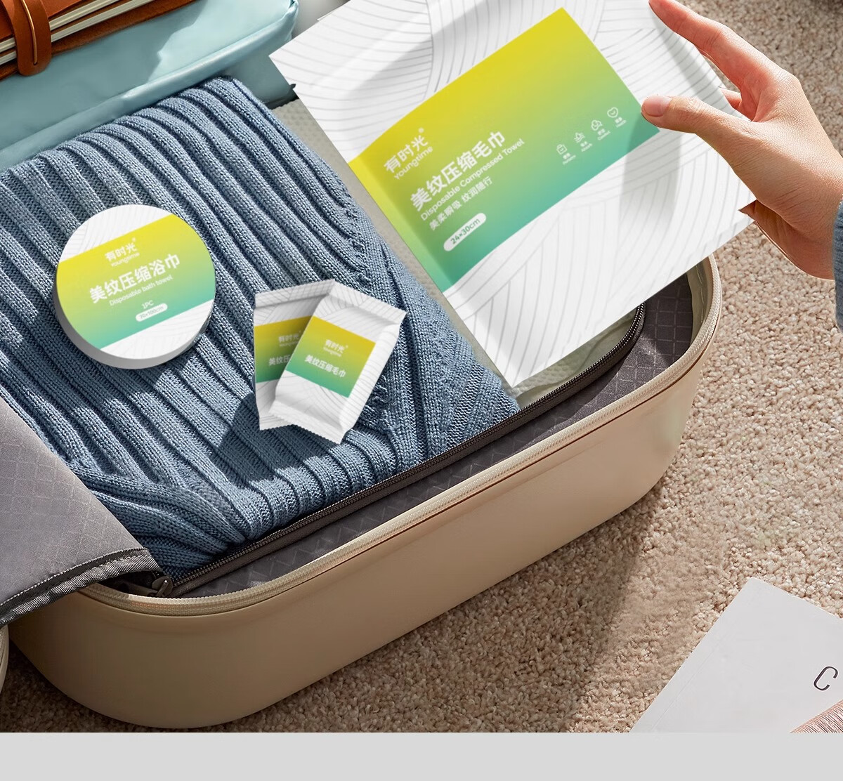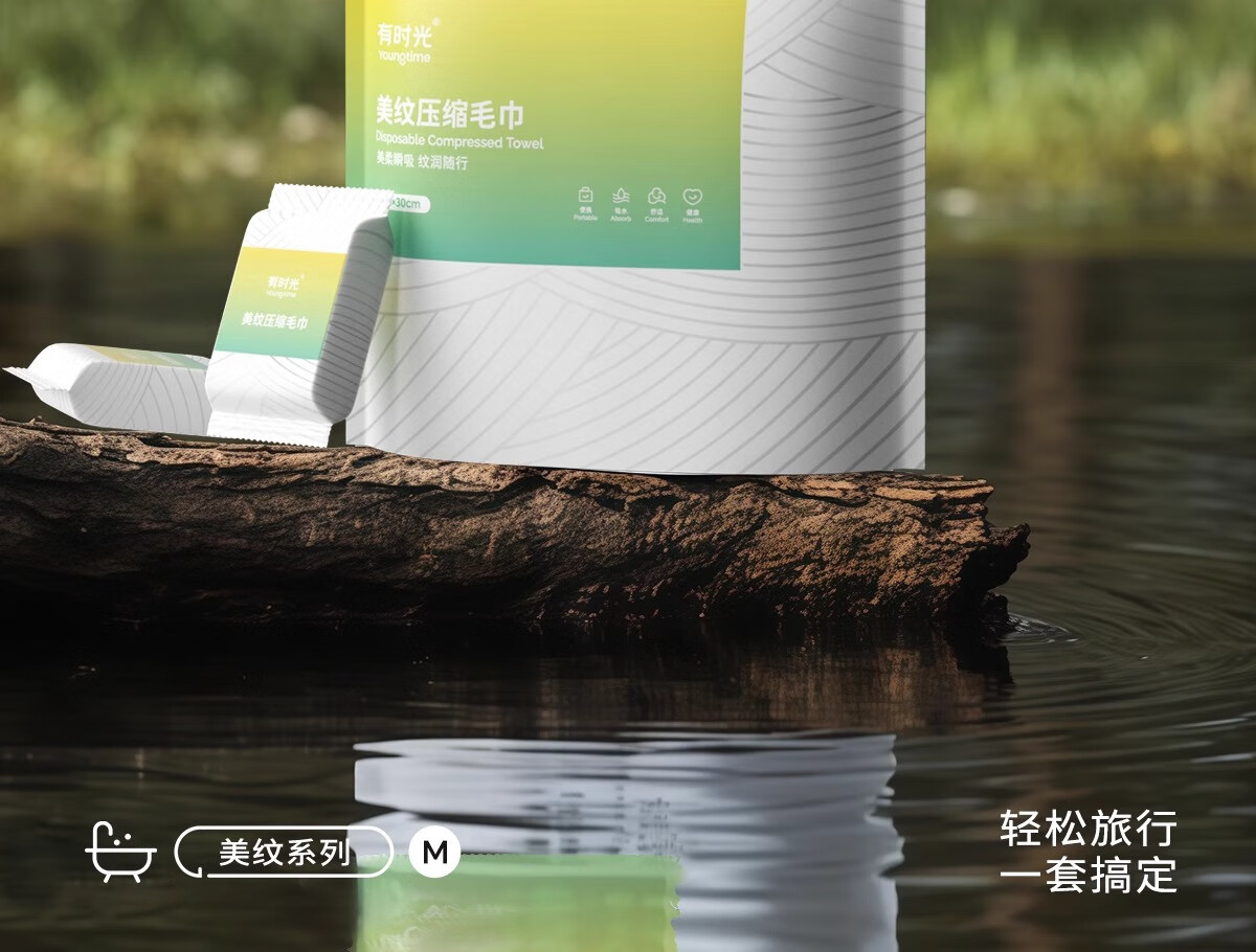有时光一次性毛巾压缩加大加厚独立包装旅行洗脸巾便携式成人婴儿 20粒