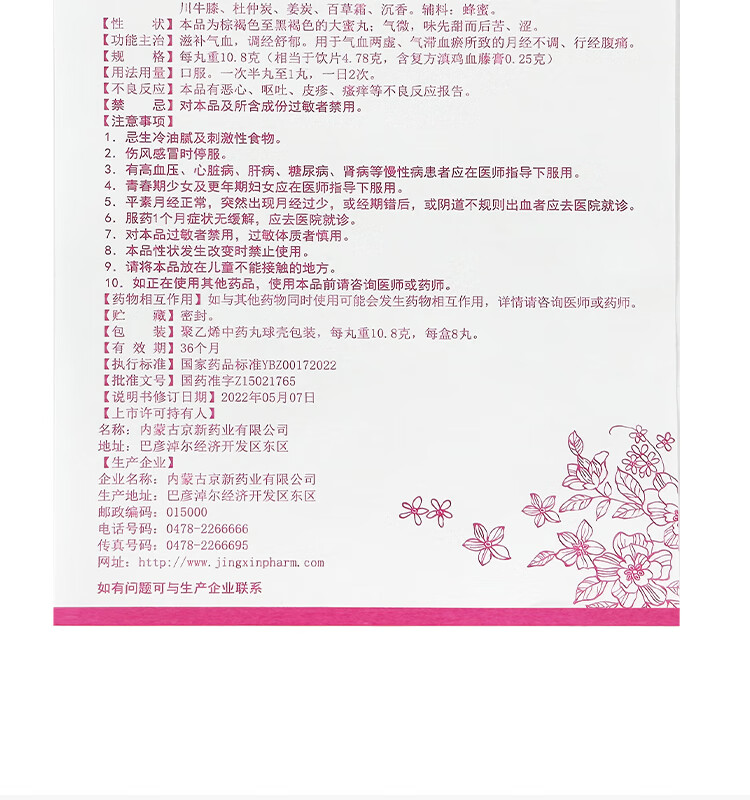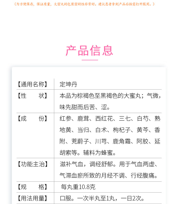 京新 定坤丹10.8g*8丸滋补气血调经舒郁用于气血两虚气滞血瘀所致的月经不调行经腹痛