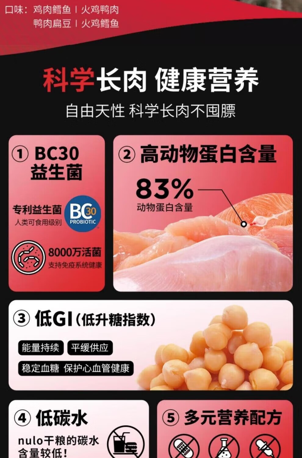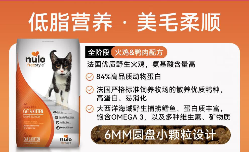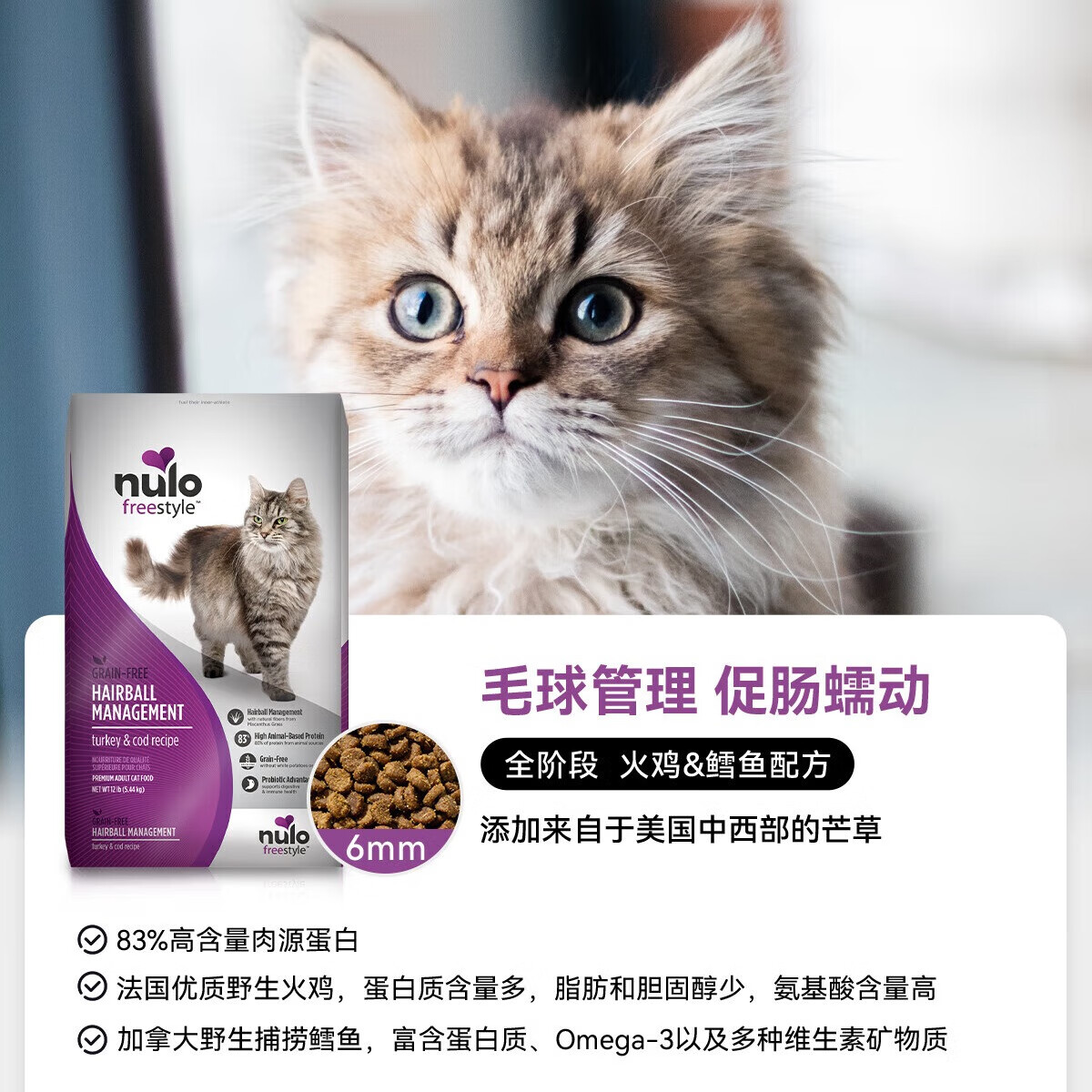 NULO诺乐猫粮无谷低敏鸡肉&鳕鱼12磅5.44kg,低GI高蛋白,BC30益生菌 金牌火鸡鸡肉12磅-26年3月