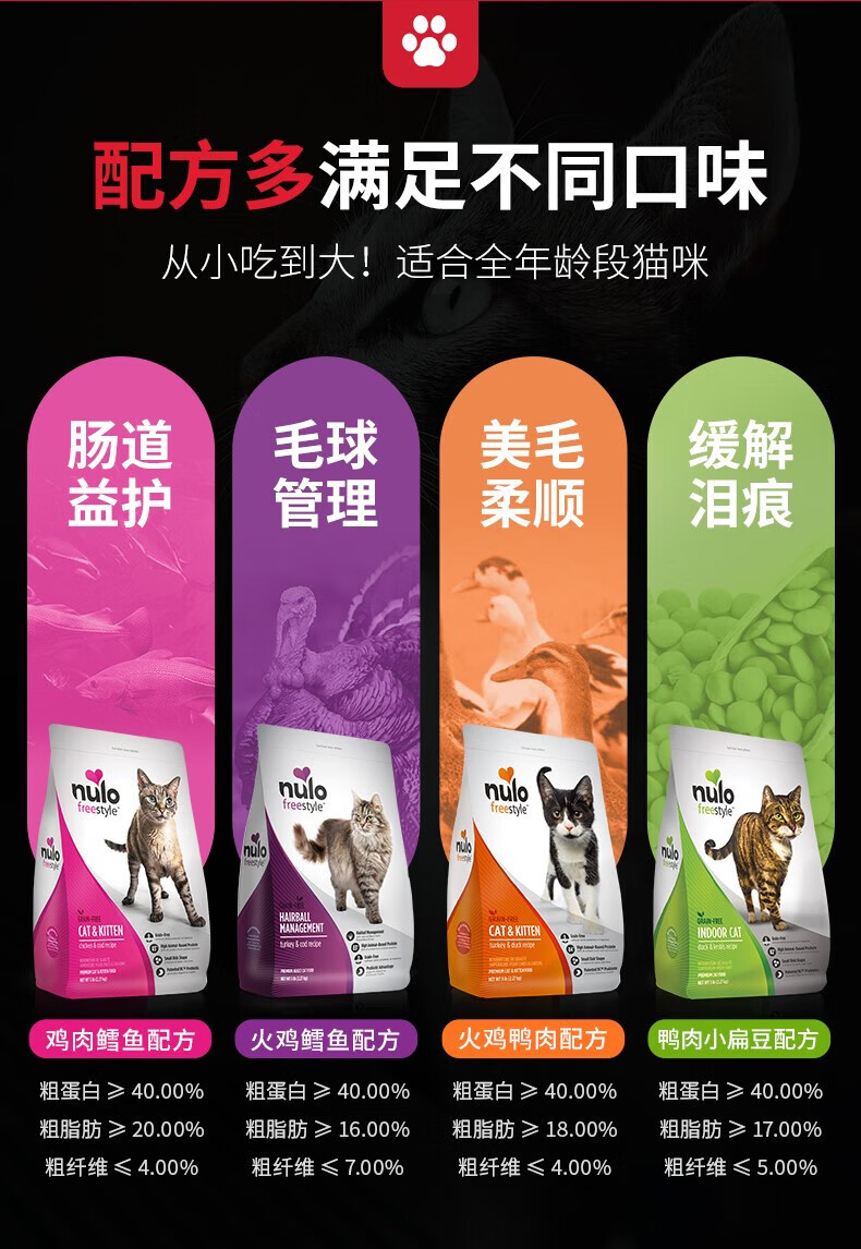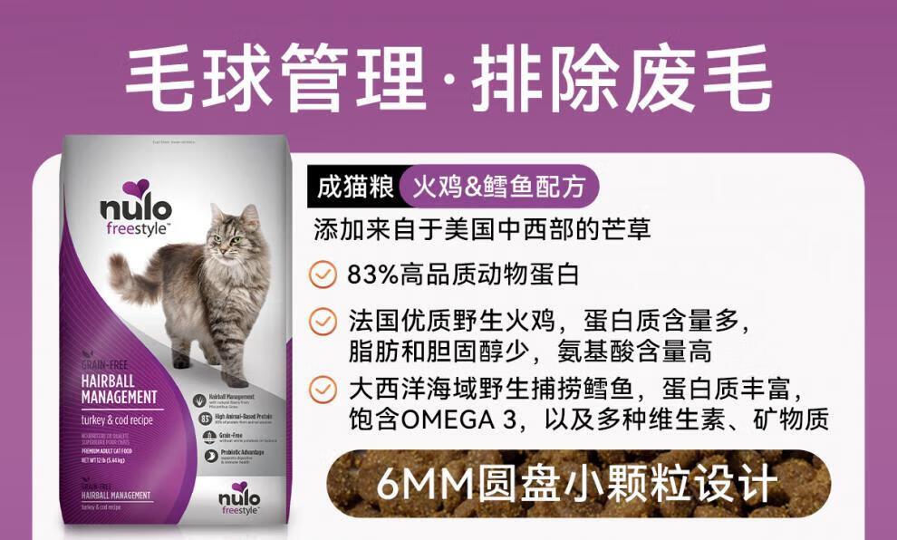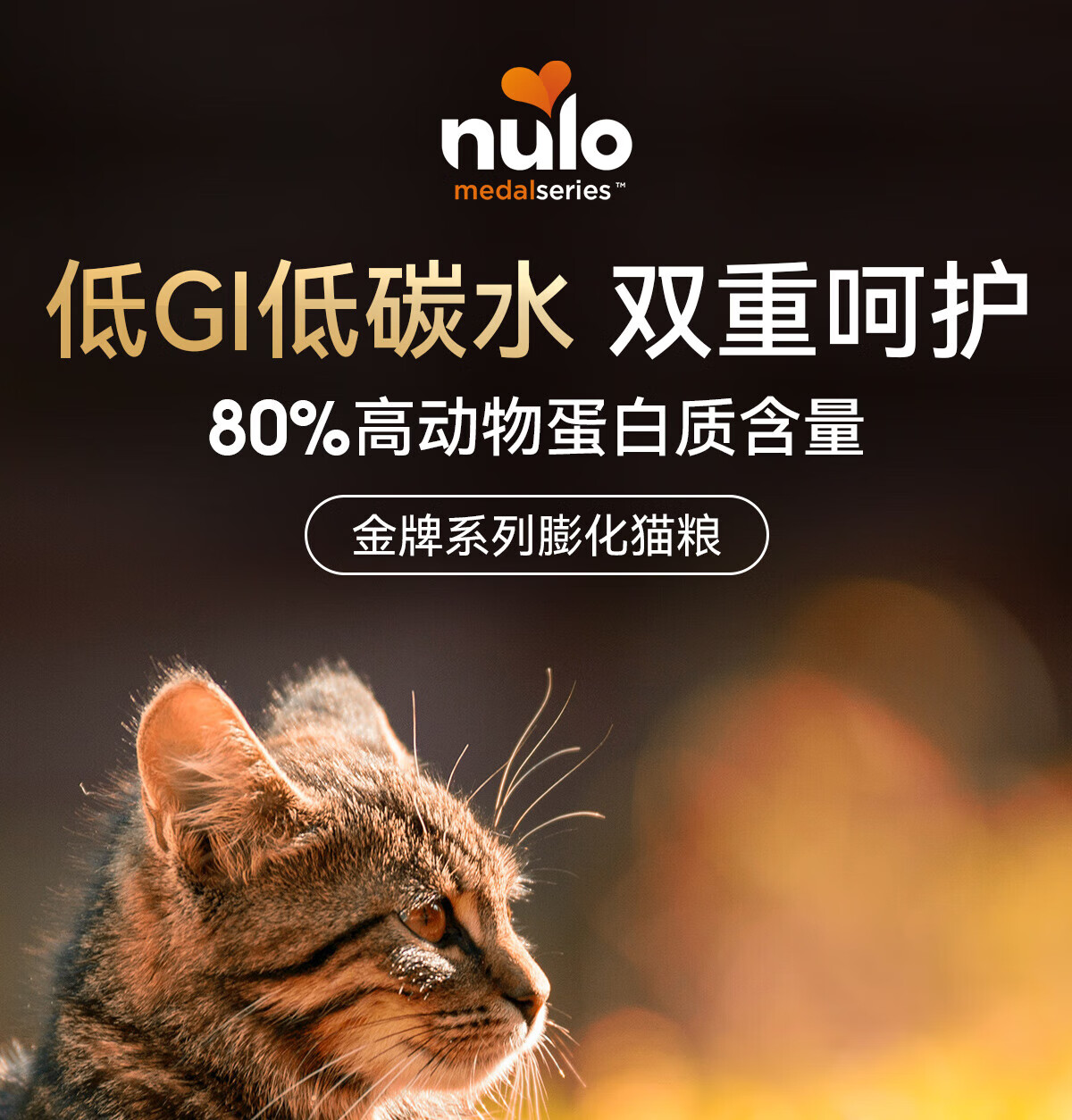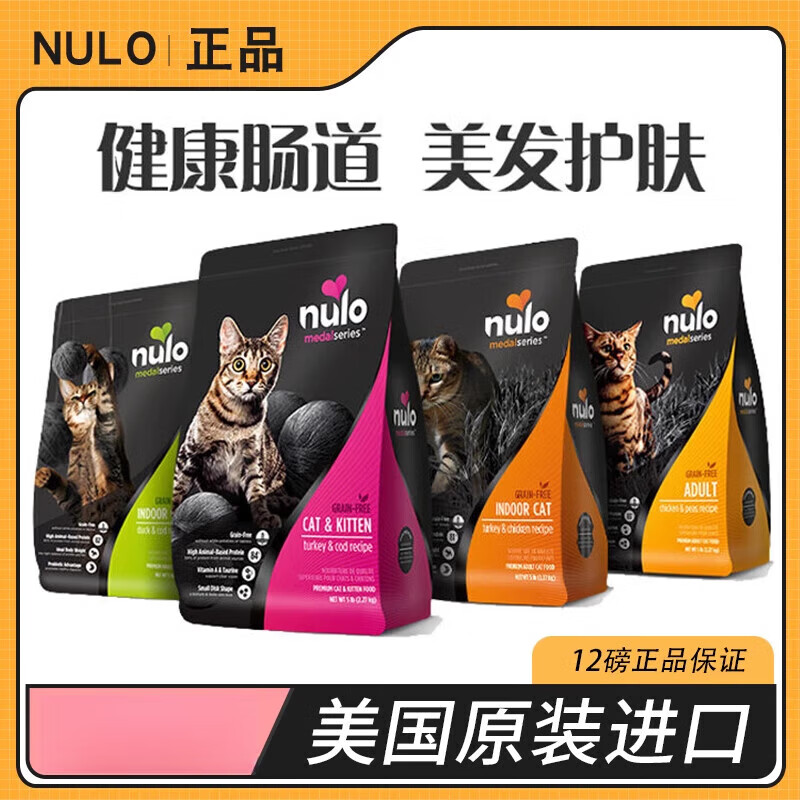 NULO诺乐猫粮无谷低敏鸡肉&鳕鱼12磅5.44kg,低GI高蛋白,BC30益生菌 金牌火鸡鸡肉12磅-26年3月