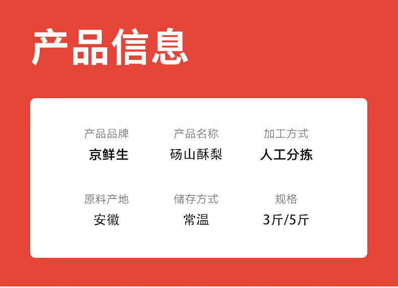 京鲜生安徽砀山酥梨净重5斤装单果200g+ 生鲜水果源头直发包邮