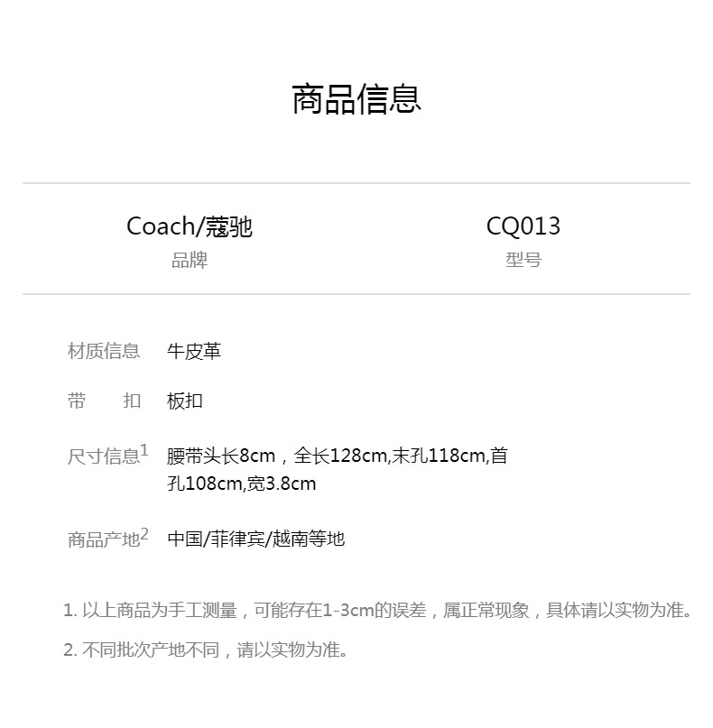 蔻驰(COACH)奢侈品男士商务腰带C扣荔枝纹宽版CQ013 送男友