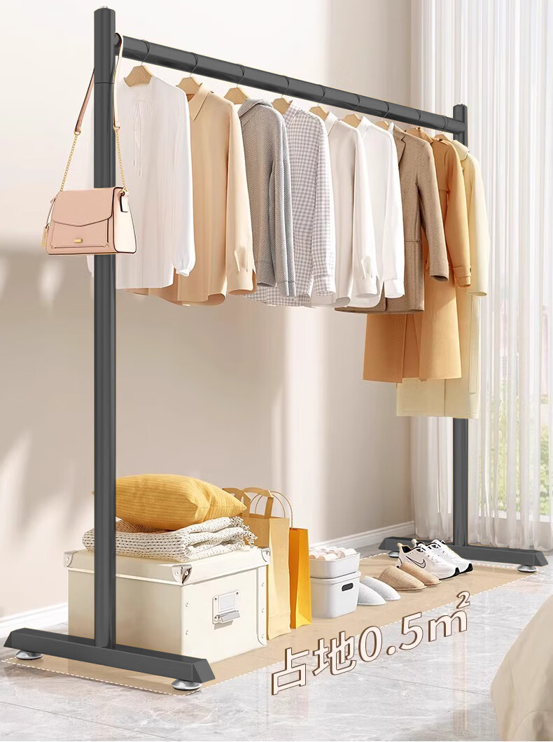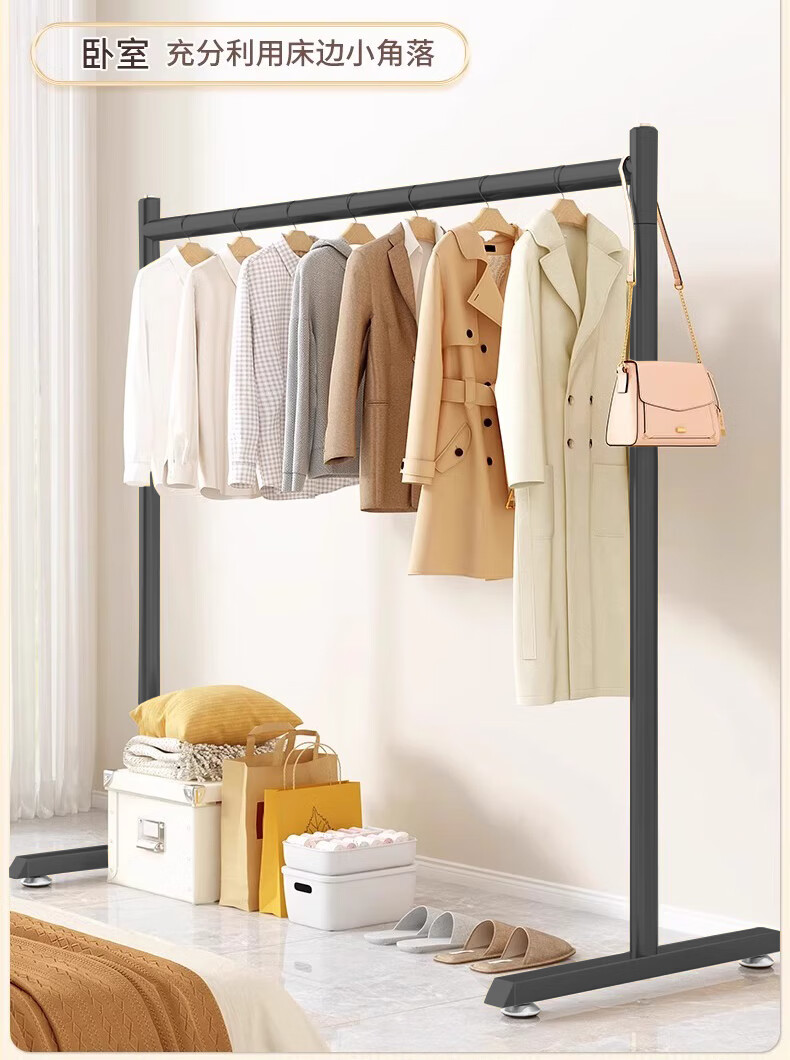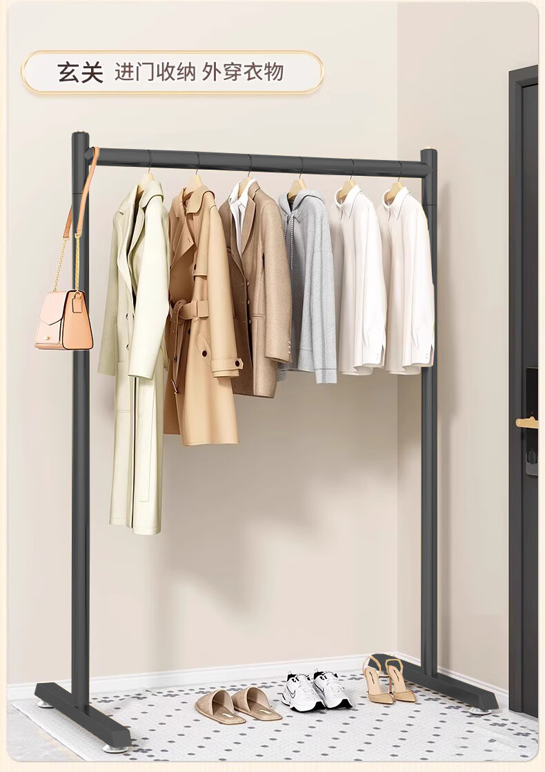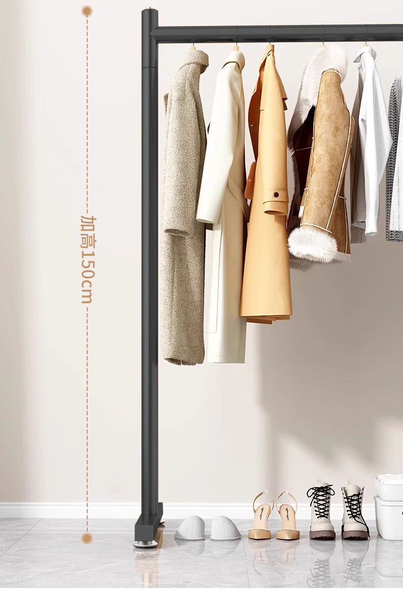 京佳宜衣架落地晾衣架阳台晾衣杆卧室家用宿舍挂衣架黑色脚钉120cm