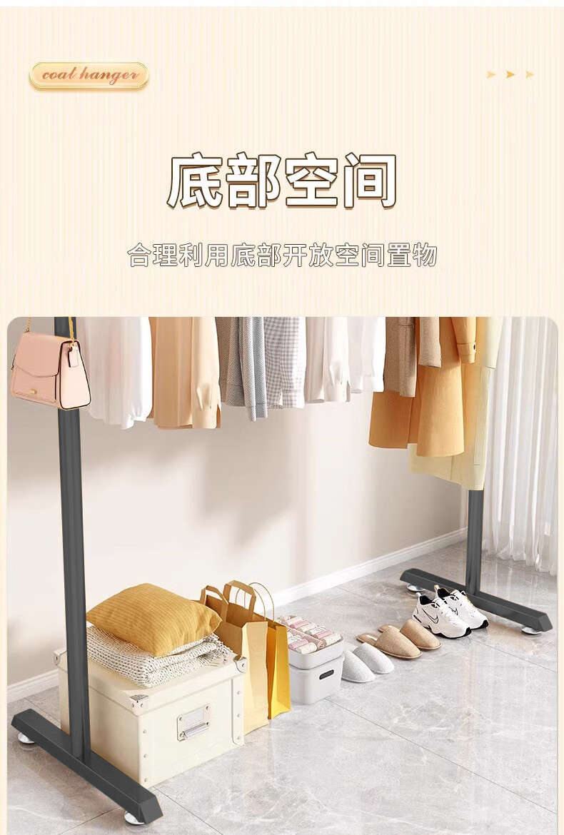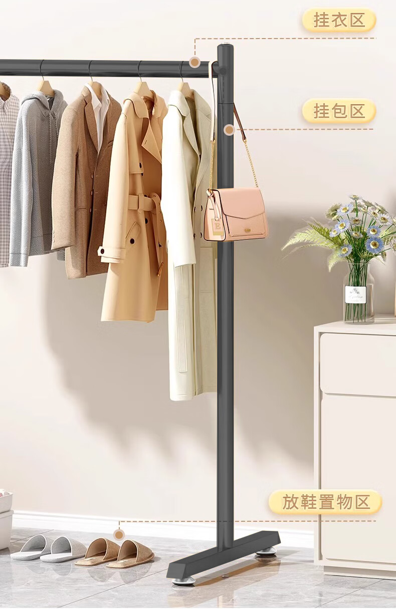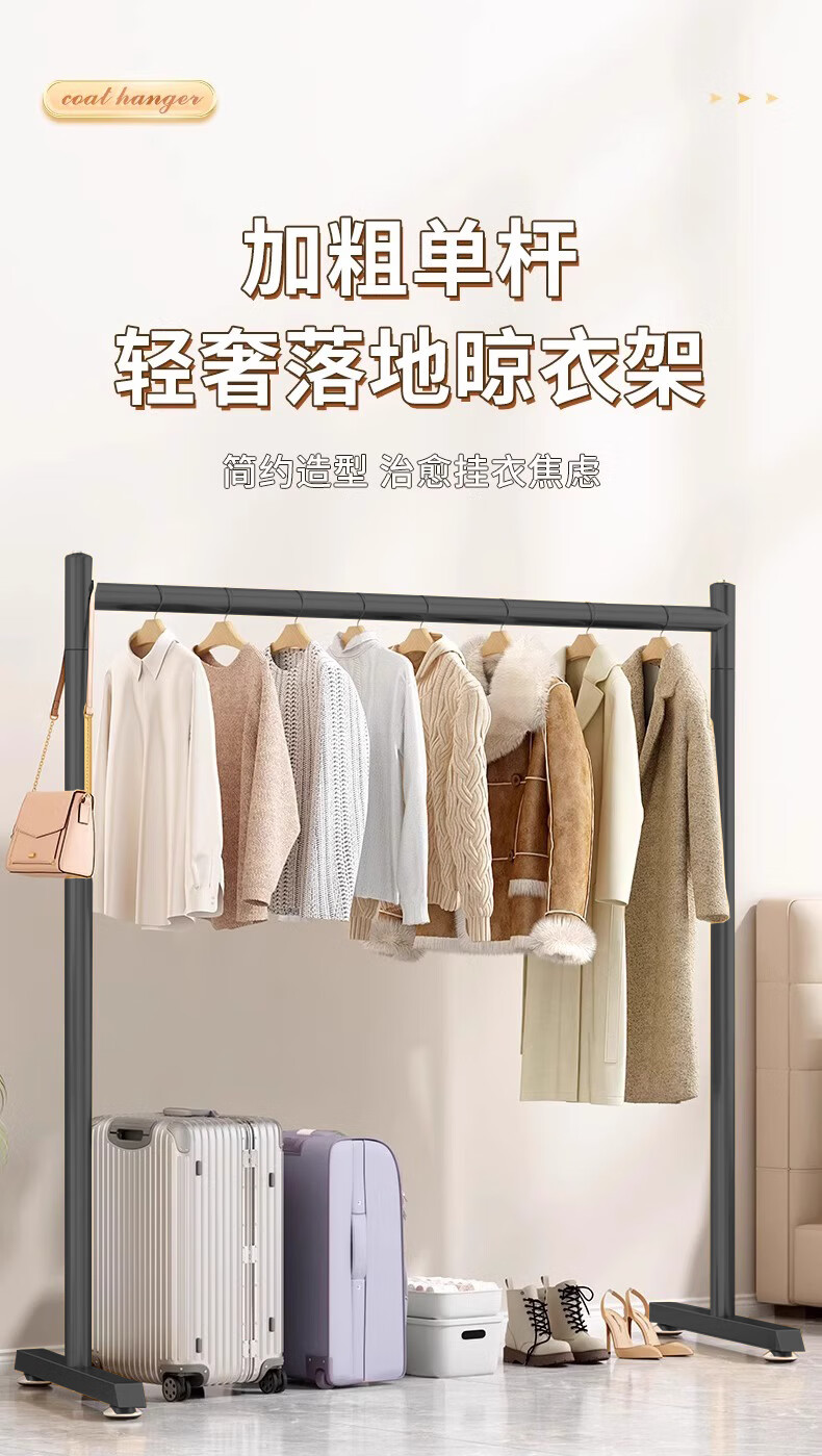 京佳宜衣架落地晾衣架阳台晾衣杆卧室家用宿舍挂衣架黑色脚钉120cm