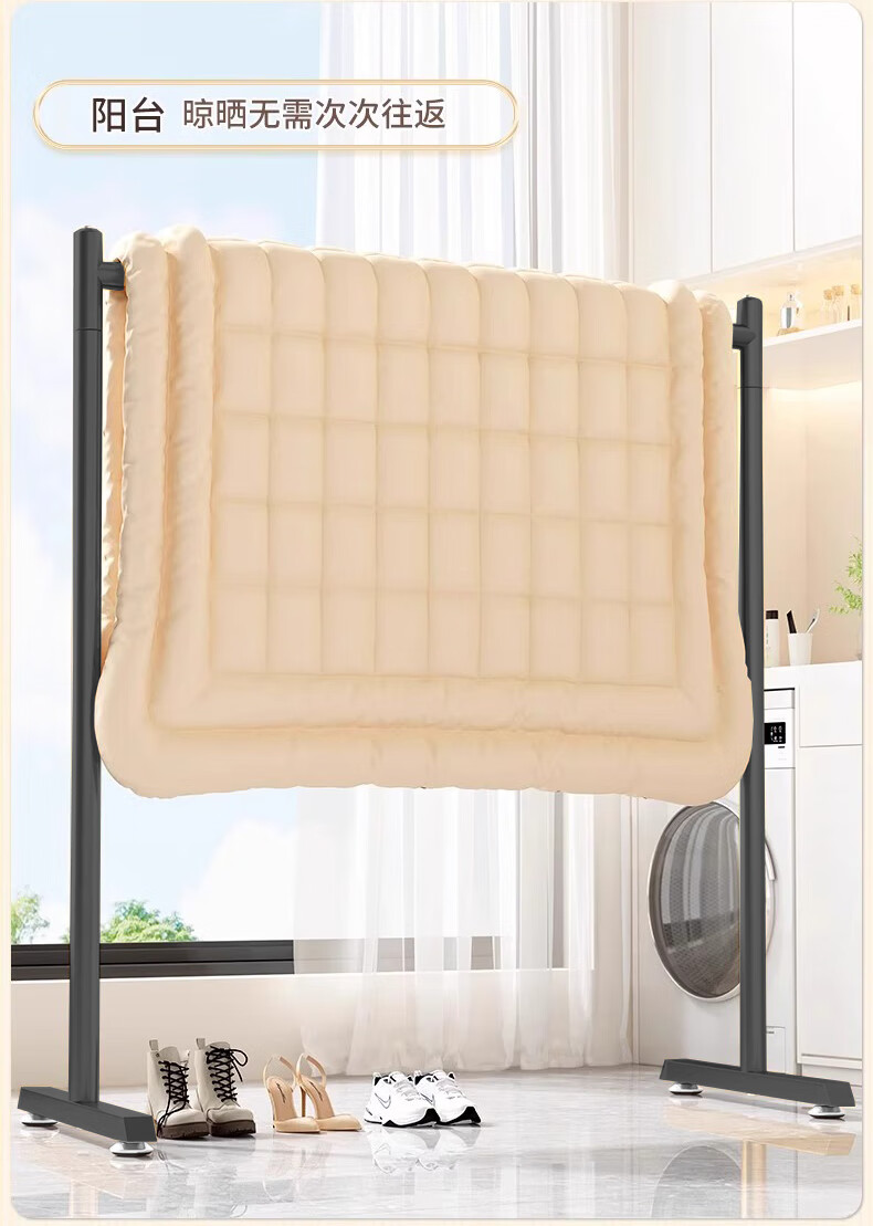 枫尚晾衣架落地伸缩晾衣杆免装折叠晒被架加厚铝合金阳台衣架落地立式