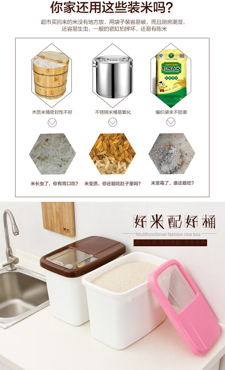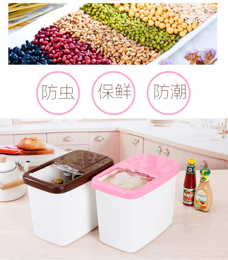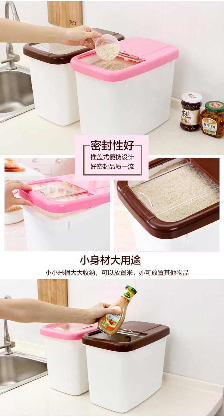 DEATKN米桶塑料储米箱米缸面粉桶防虫防潮加带盖20斤10kg厨房15斤储物盒 咖啡30斤装-带轮子