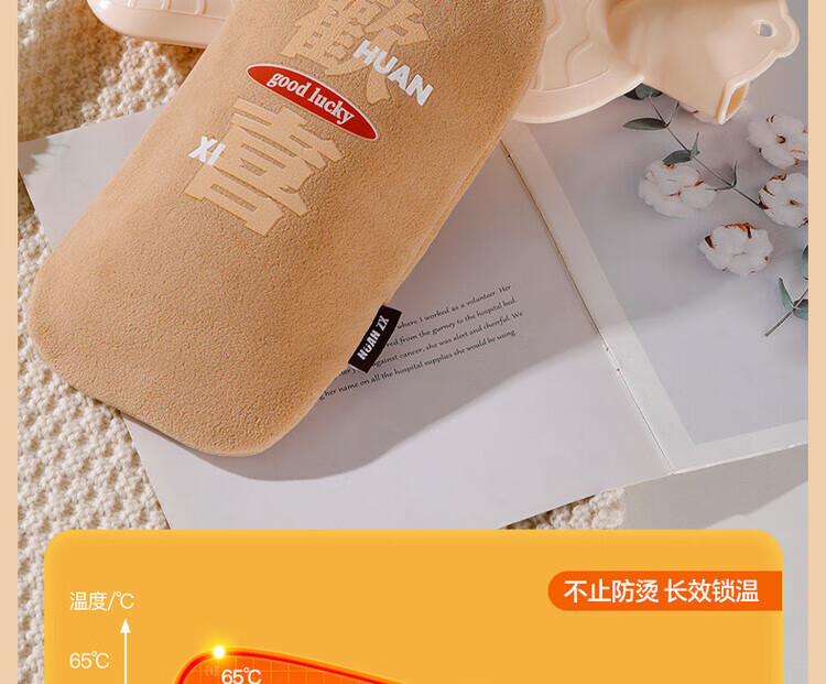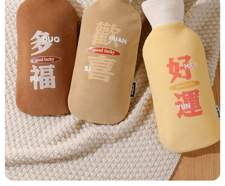 DEATKN德国热水袋老人专用暖水袋灌注水加厚防爆毛绒暖手宝暖脚被窝神器 好運【亲肤德绒 900ml】暖被窝神器 可拆洗