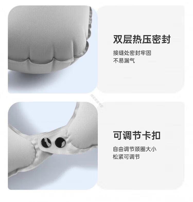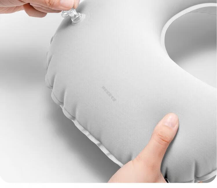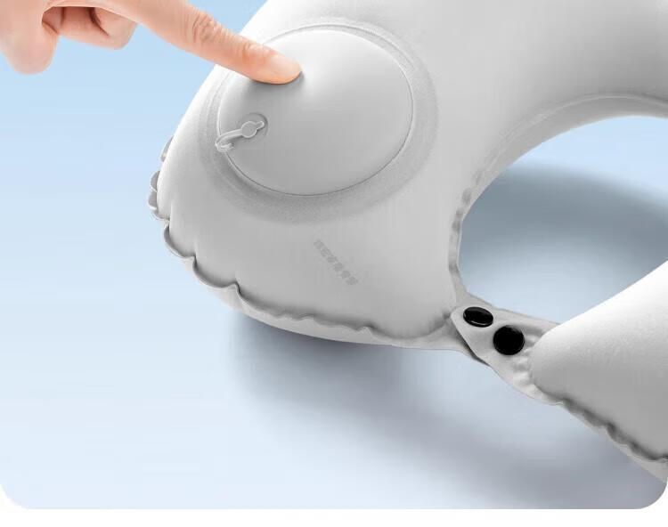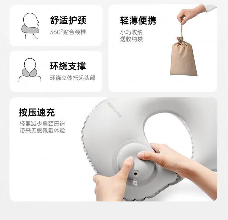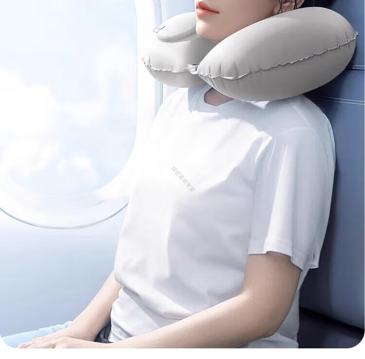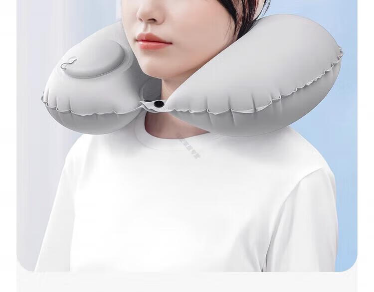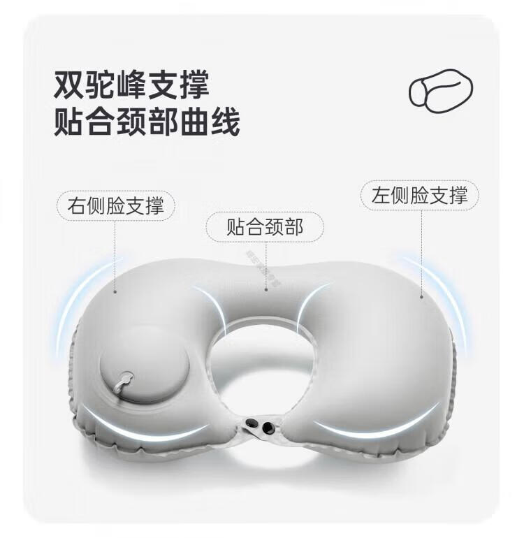 DEATKN德国充气u型枕旅行便携枕头出差长途高铁飞机睡觉u形颈枕 植绒亲肤款-夜月灰【按压速充可