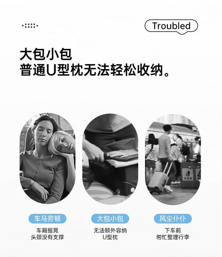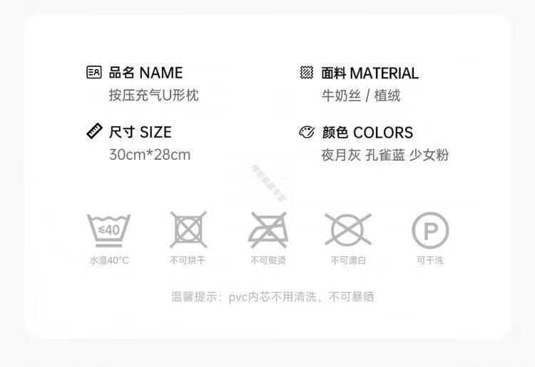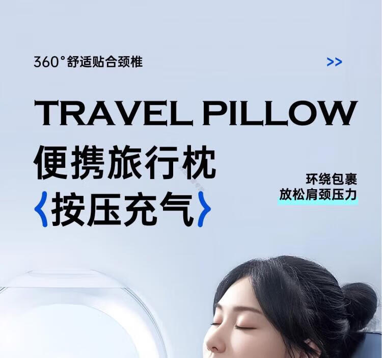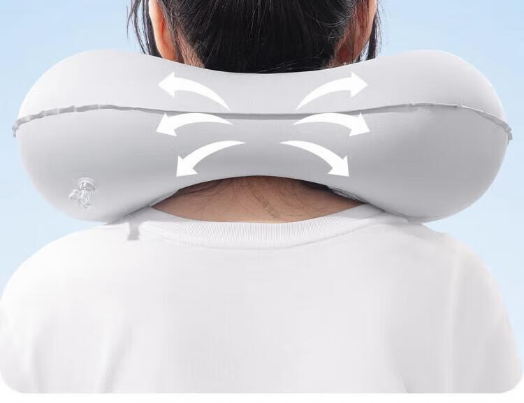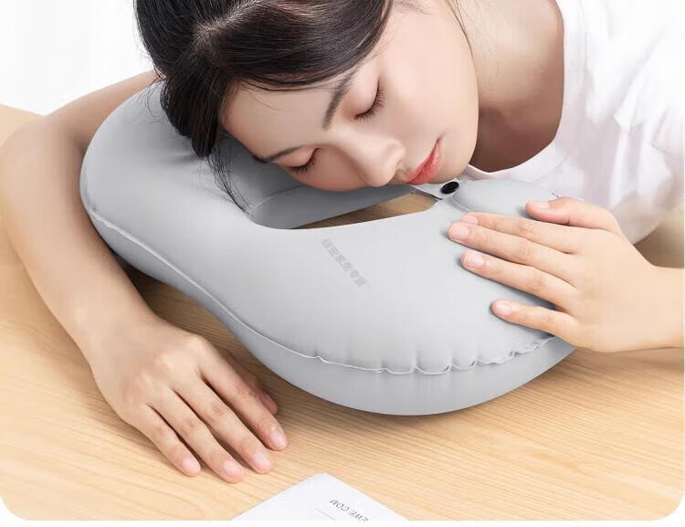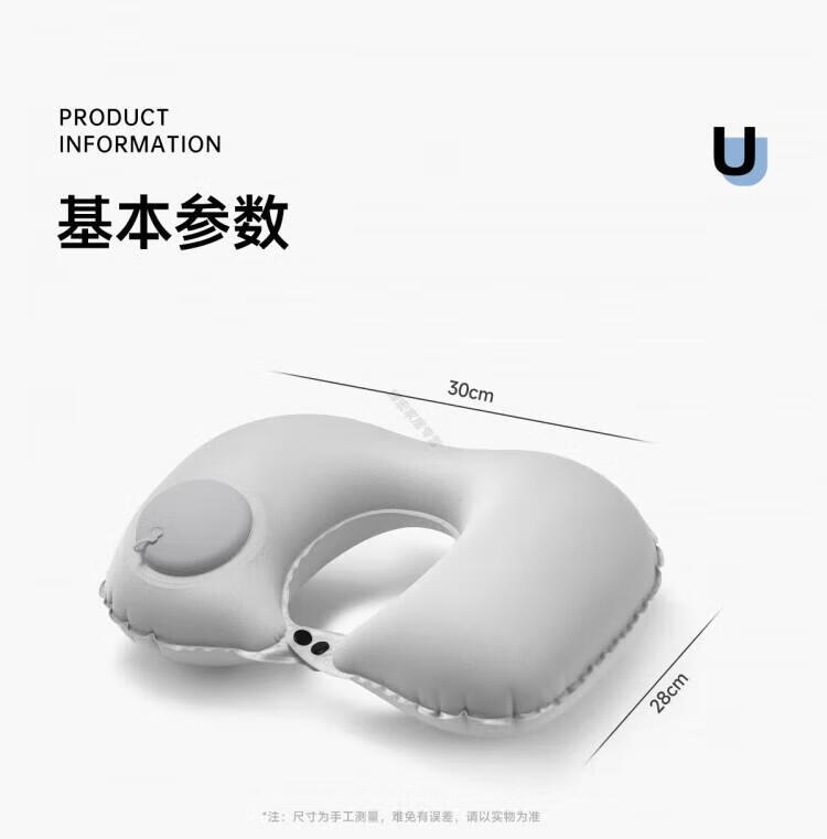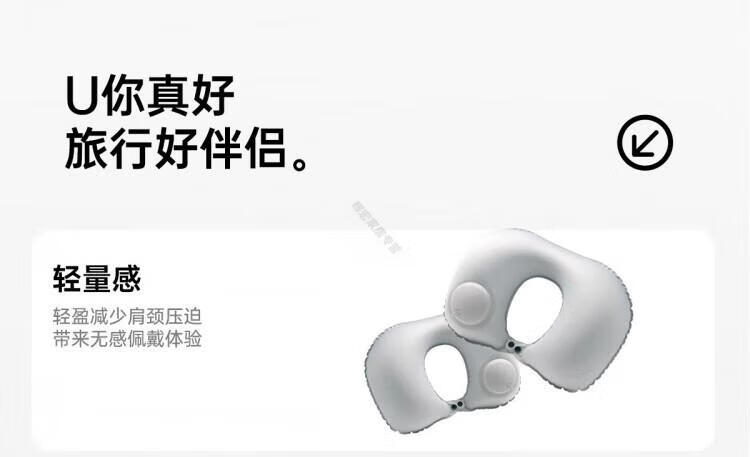 DEATKN德国充气u型枕旅行便携枕头出差长途高铁飞机睡觉u形颈枕 植绒亲肤款-夜月灰【按压速充可