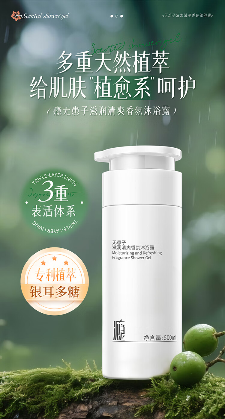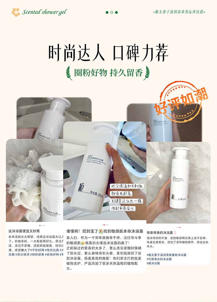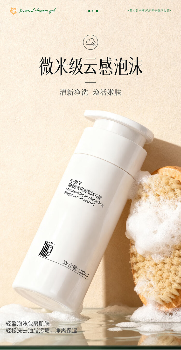 瘾无患子滋润清爽型香氛沐浴露持久留香温和控油舒缓沐浴乳500ml