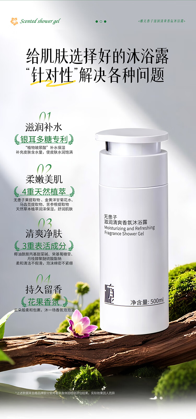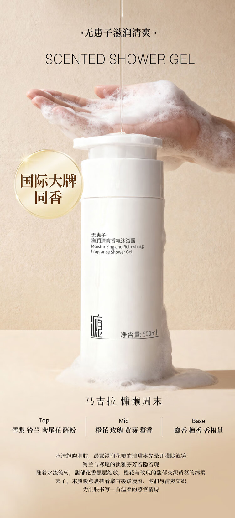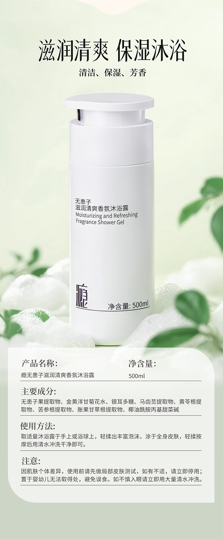瘾无患子滋润清爽型香氛沐浴露持久留香温和控油舒缓沐浴乳500ml