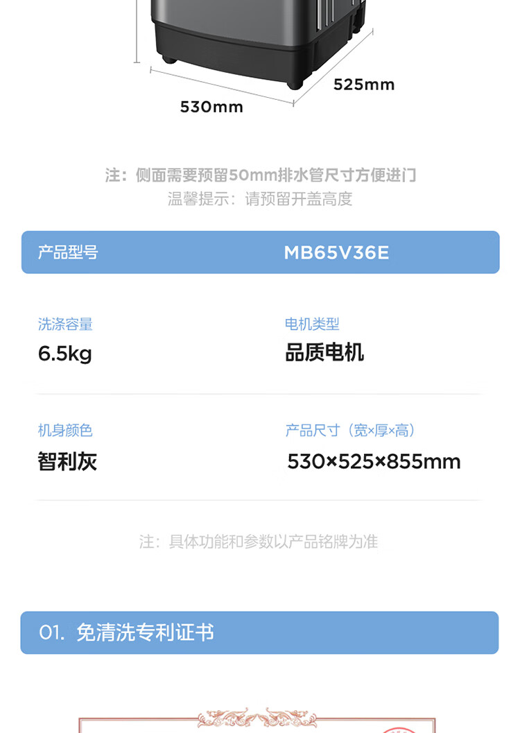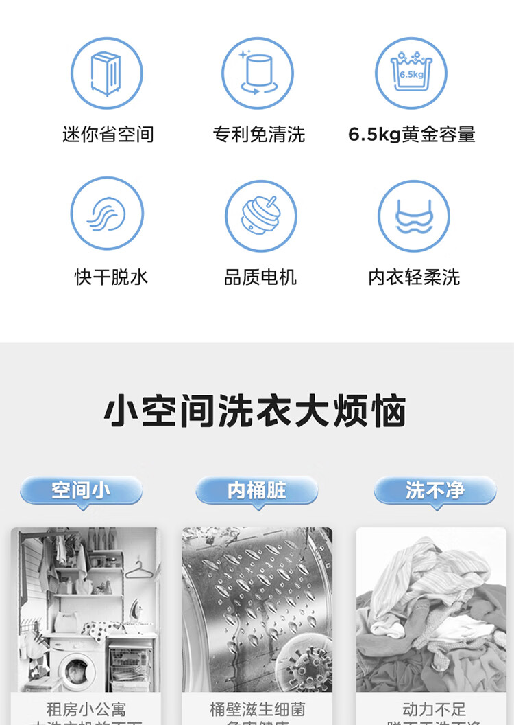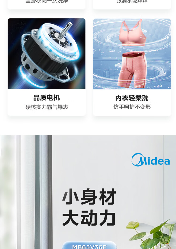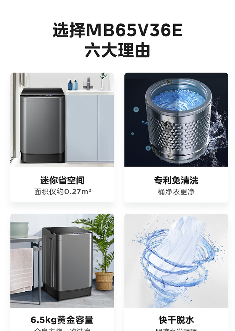 美的(Midea)波轮洗衣机全自动家用 MB65V36E 6.5公斤 宿舍租房 迷你洗衣机小型 随心洗 以旧换新 家电国家补贴