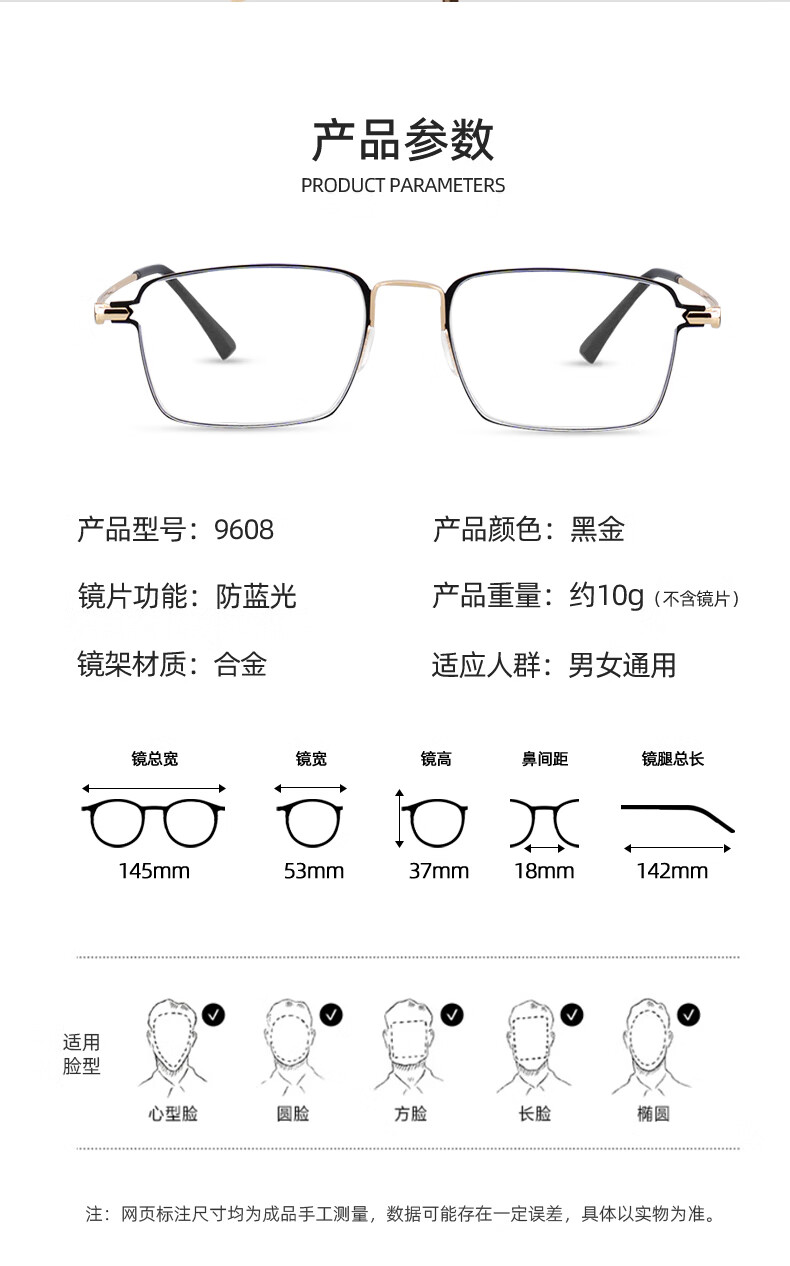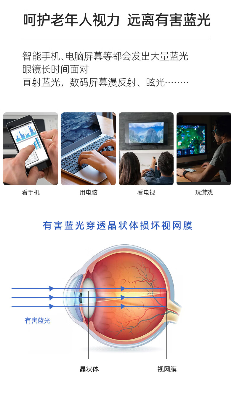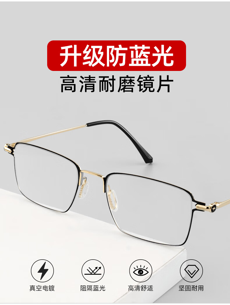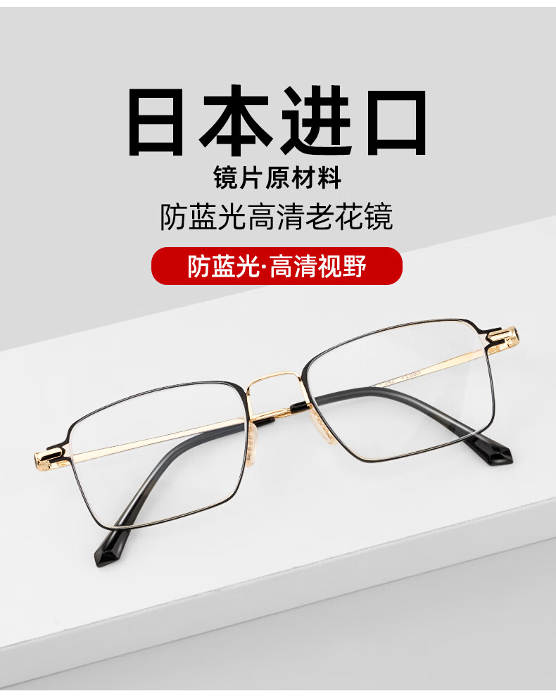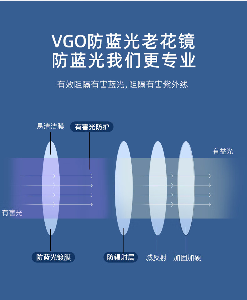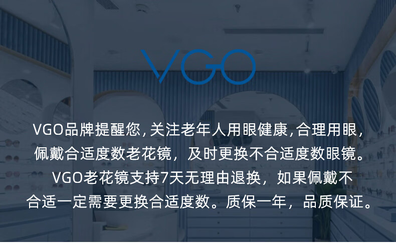 VGO老花镜男女通用时尚超轻高清防蓝光老年人眼镜9608开学