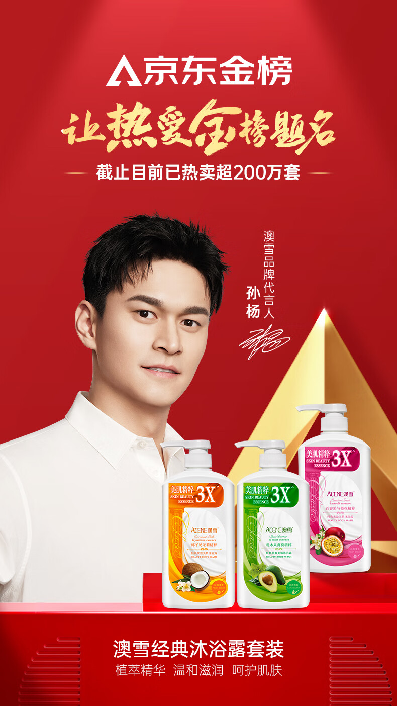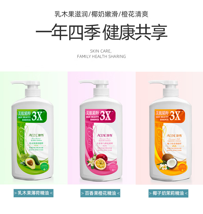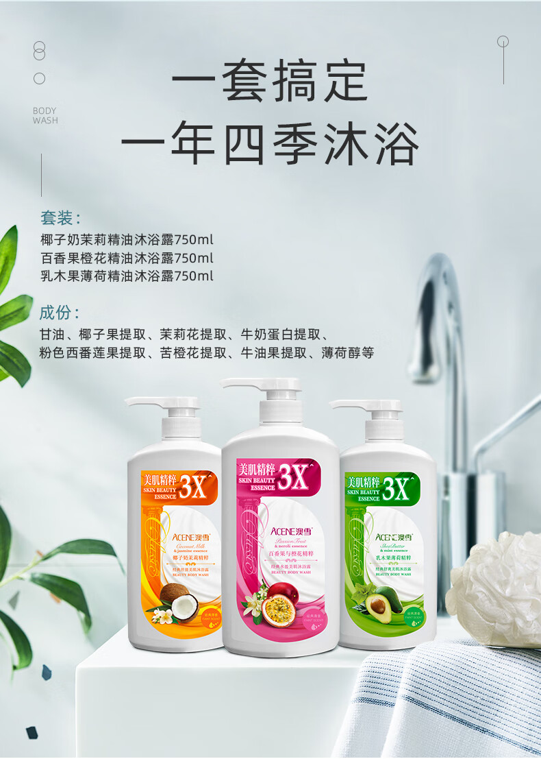 澳雪(accen)经典美肌滋润沐浴露750ml*3瓶 乳木果薄荷+百香果橙花+椰子奶茉莉
