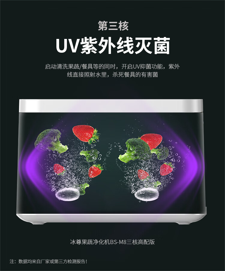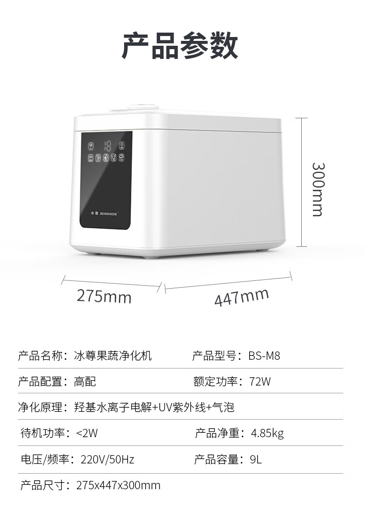 冰尊(BENSHION)果蔬清洗机家用洗菜机除菌99%羟基水离子电解食材净化机果蔬解毒机净化器M8 机器标配