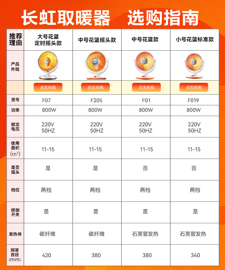 长虹(CHANGHONG)取暖器/小太阳/电暖器/电暖气/取暖电器/电热扇/电暖炉小型/烤火炉/快热炉 速热取暖 中号花篮款【网罩380mm】 1