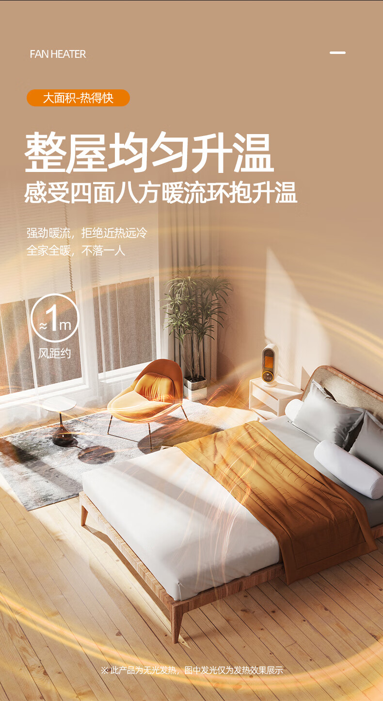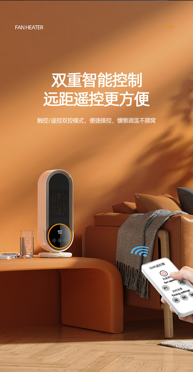 哲驰【2025年新款速热节能】桌面暖风机电热取暖器家用客厅全屋小型小太阳办公室升温静音电暖器 【尊享款】智能遥控+定时+液晶触显+倾倒断电 高效速热|智能恒温省电