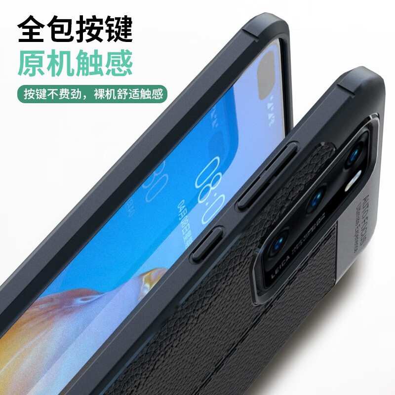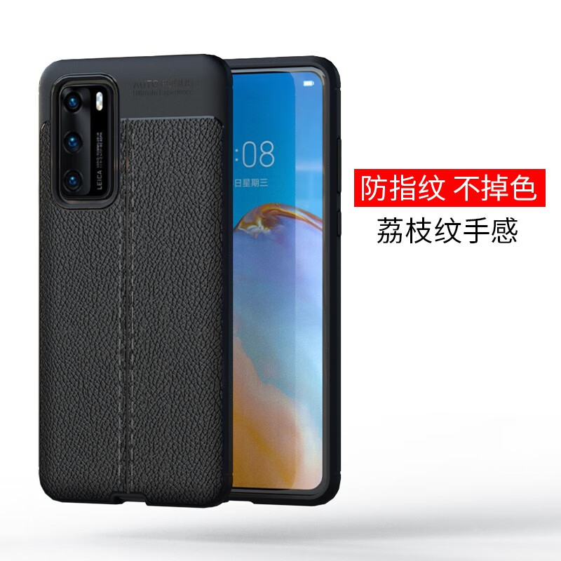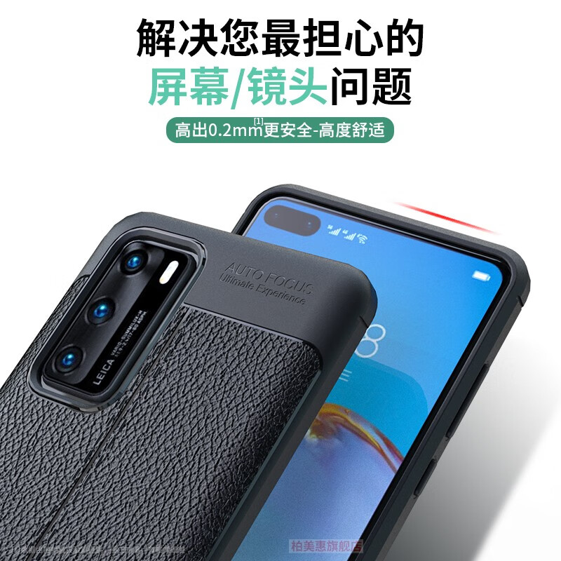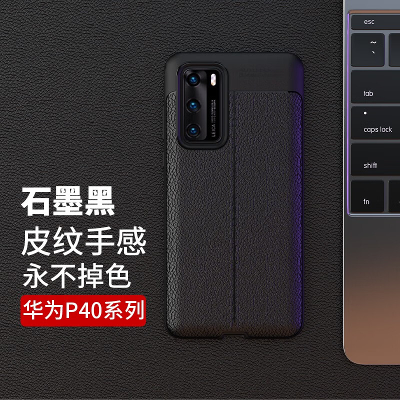 柏美惠 华为P40手机壳P40Pro保护套por防摔外壳2023新款p4opro磨砂p4o软壳 皮纹手感【P40 - 石墨黑】收藏贈全屏膜