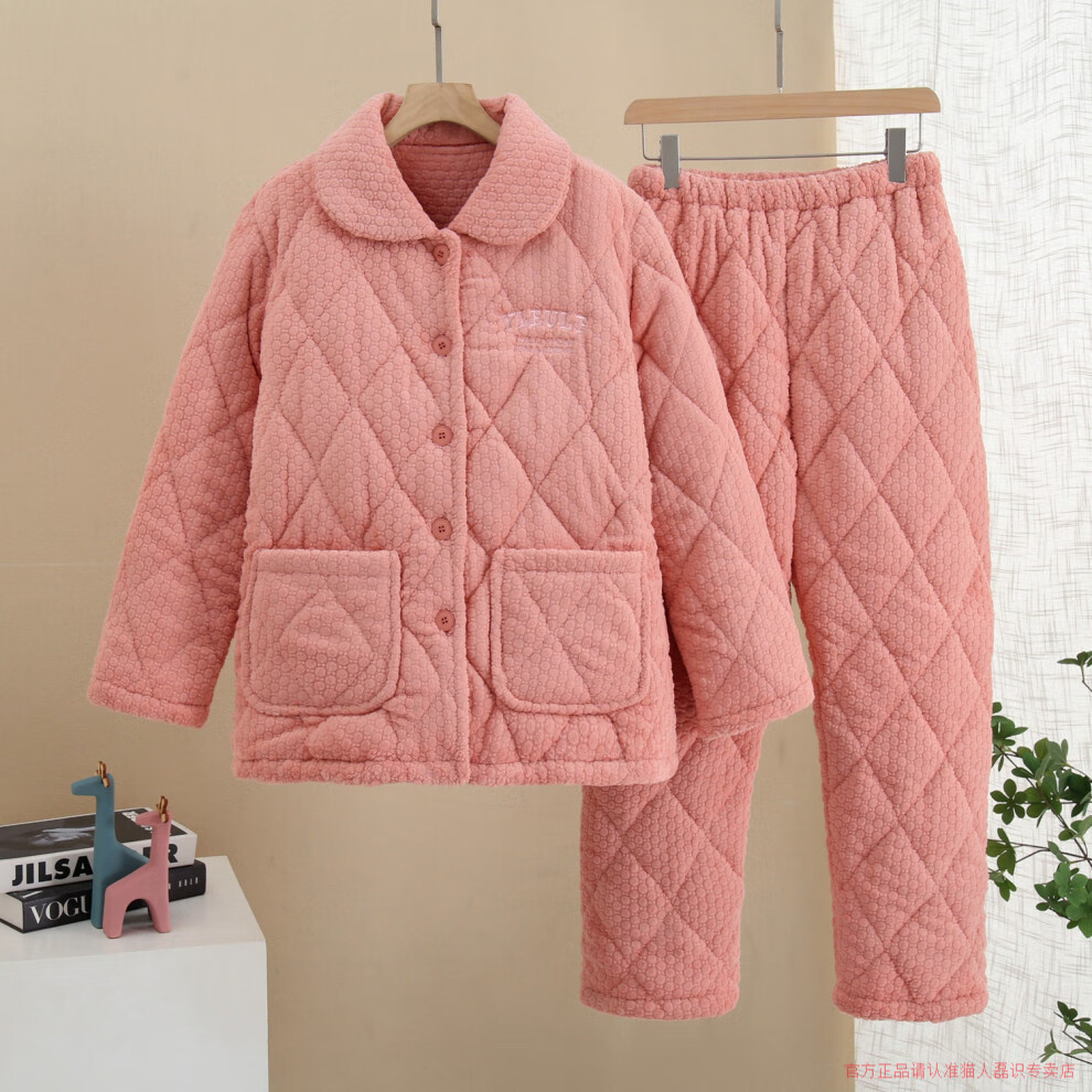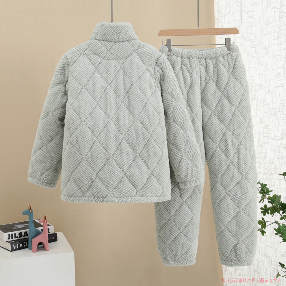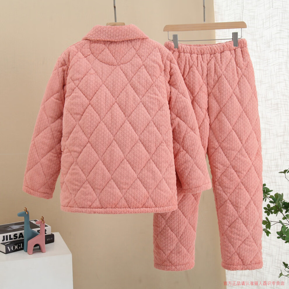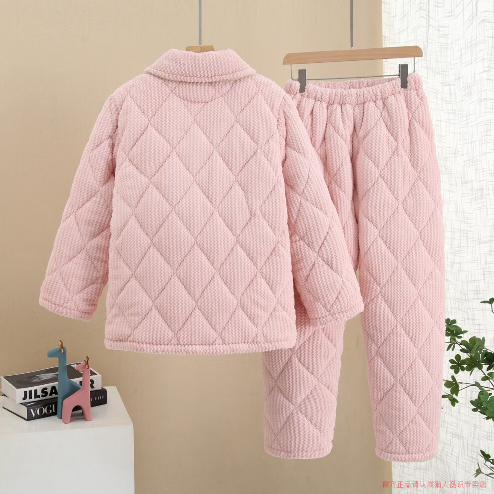 猫人(MiiOW)睡衣女秋冬季加厚加绒珊瑚绒夹棉三层保暖可外穿法兰绒家居服套装 一套过冬 杏仁黄纽扣 L 女适合80-105斤左右