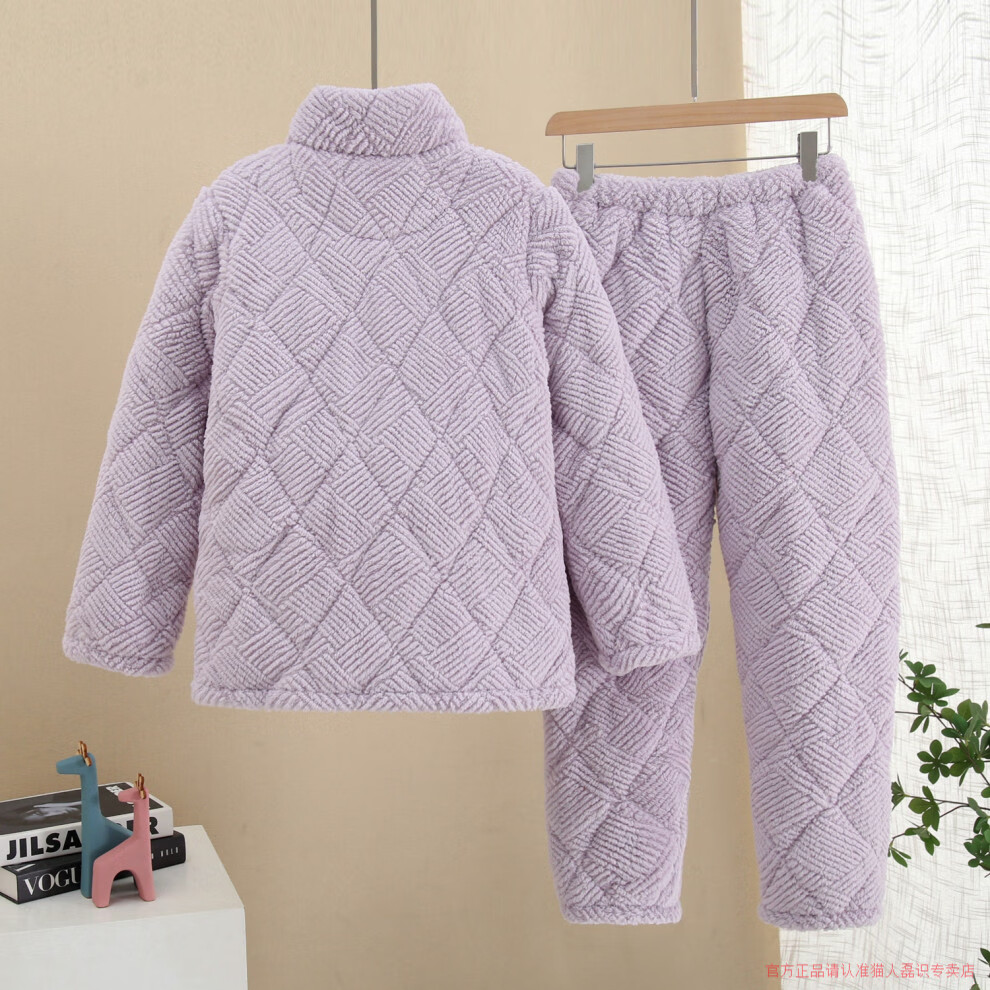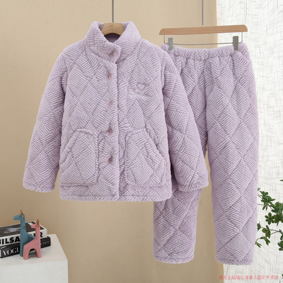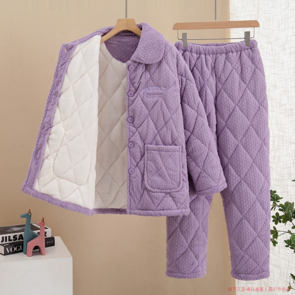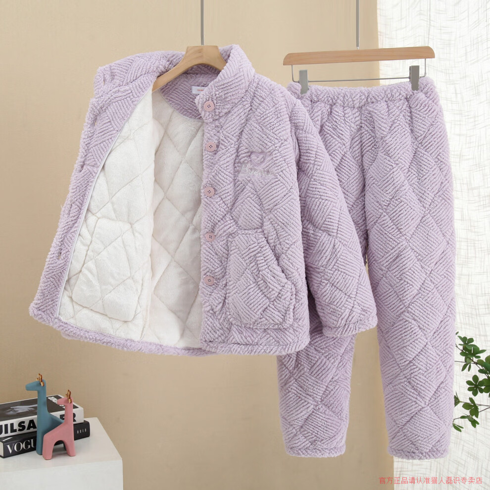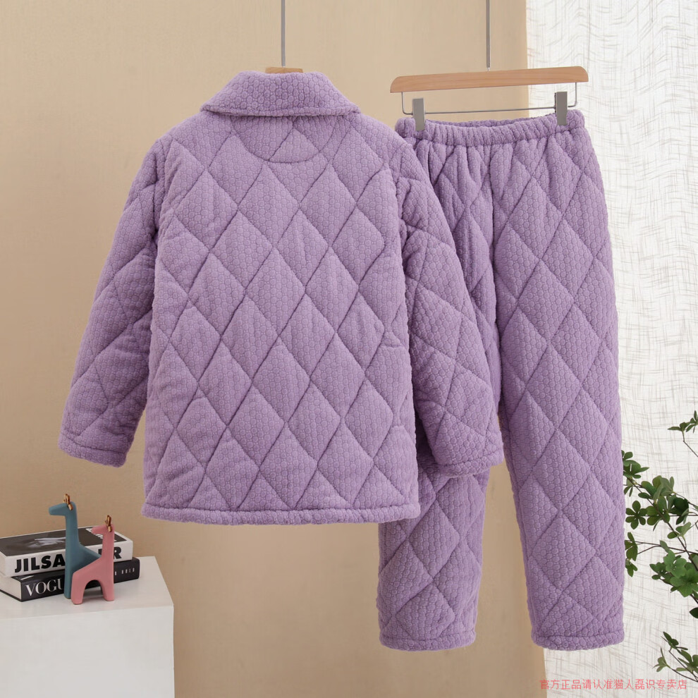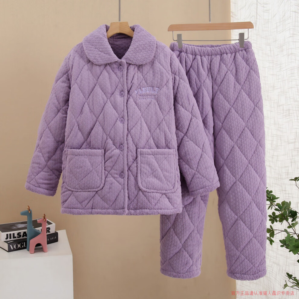 安之伴【陪宠抗静电】睡衣女秋冬雪花绒保暖休闲宽松女士家居服可外穿 氧气紫 L
