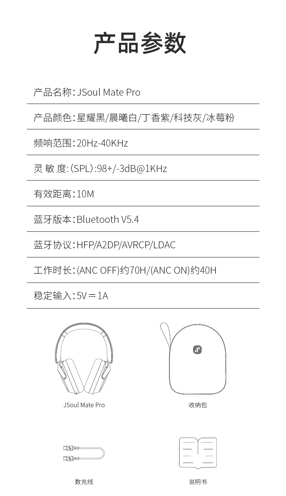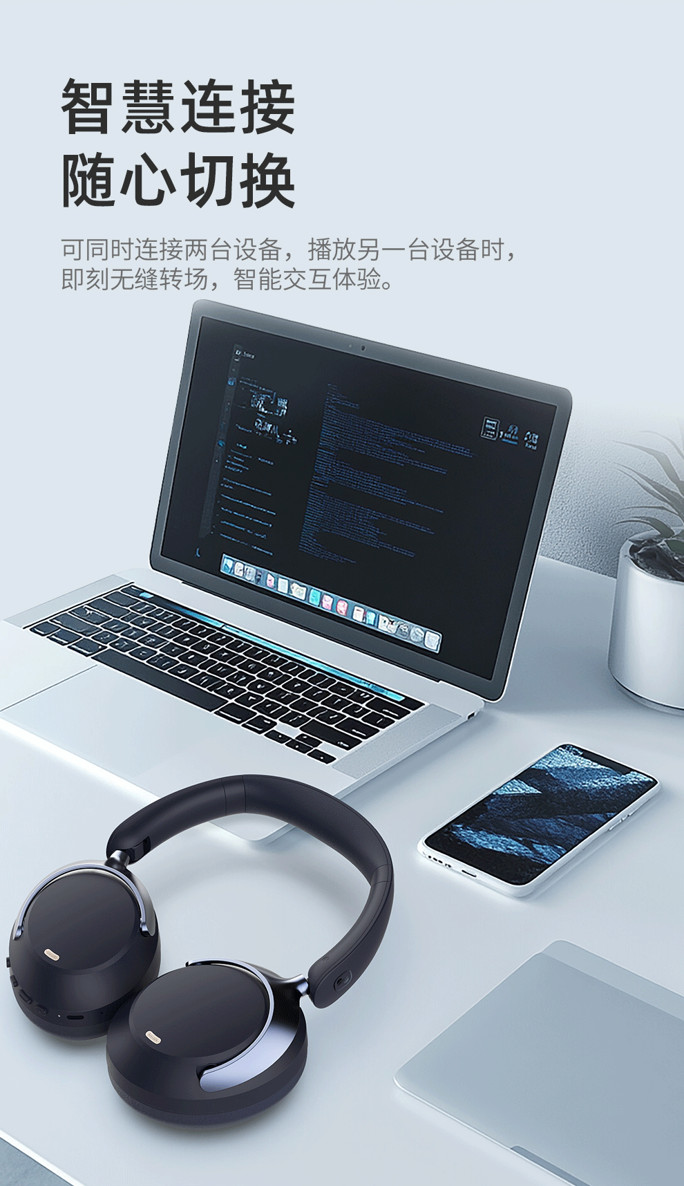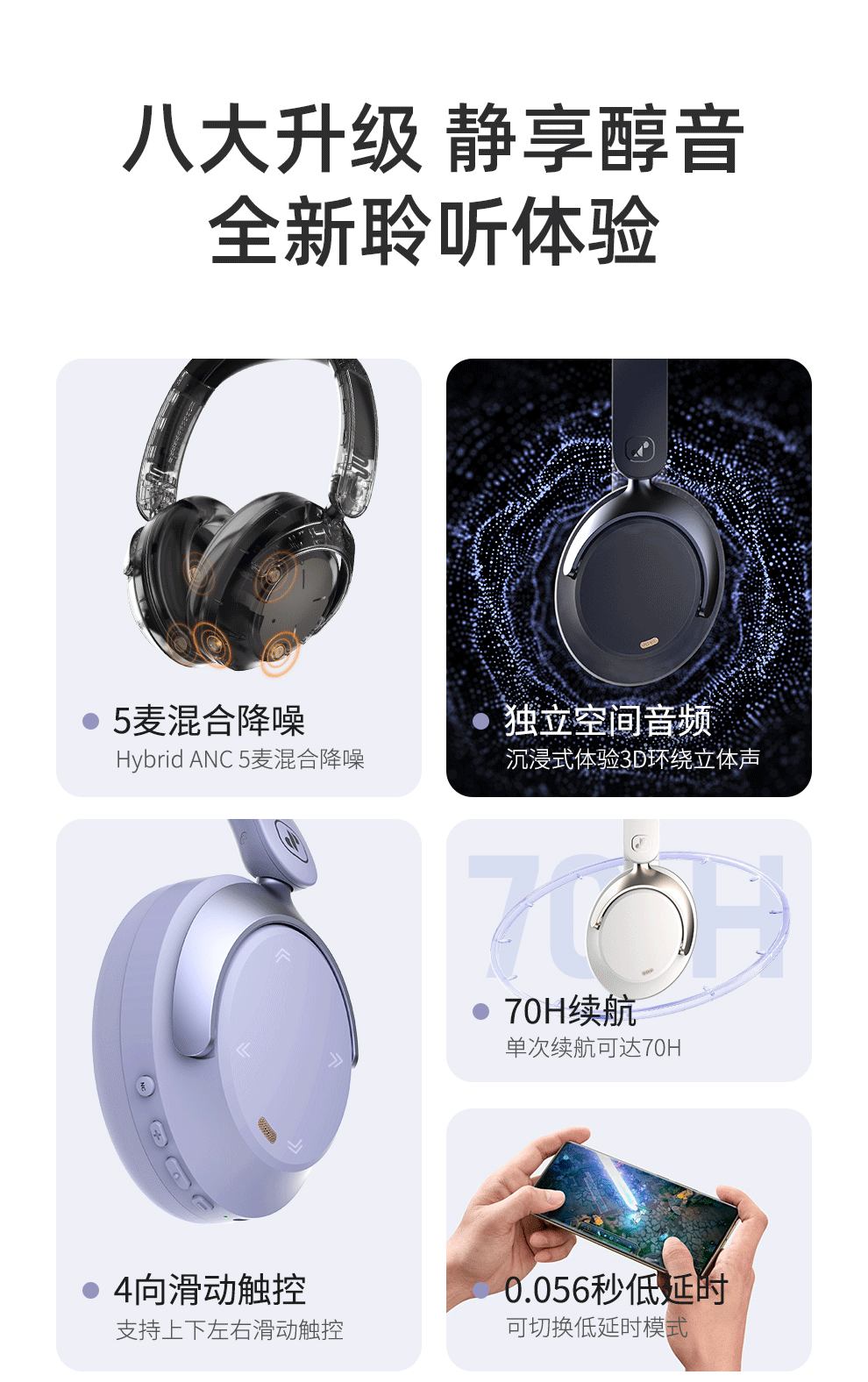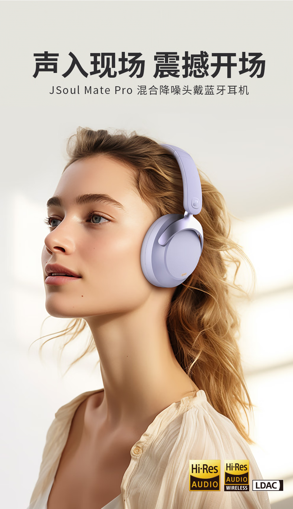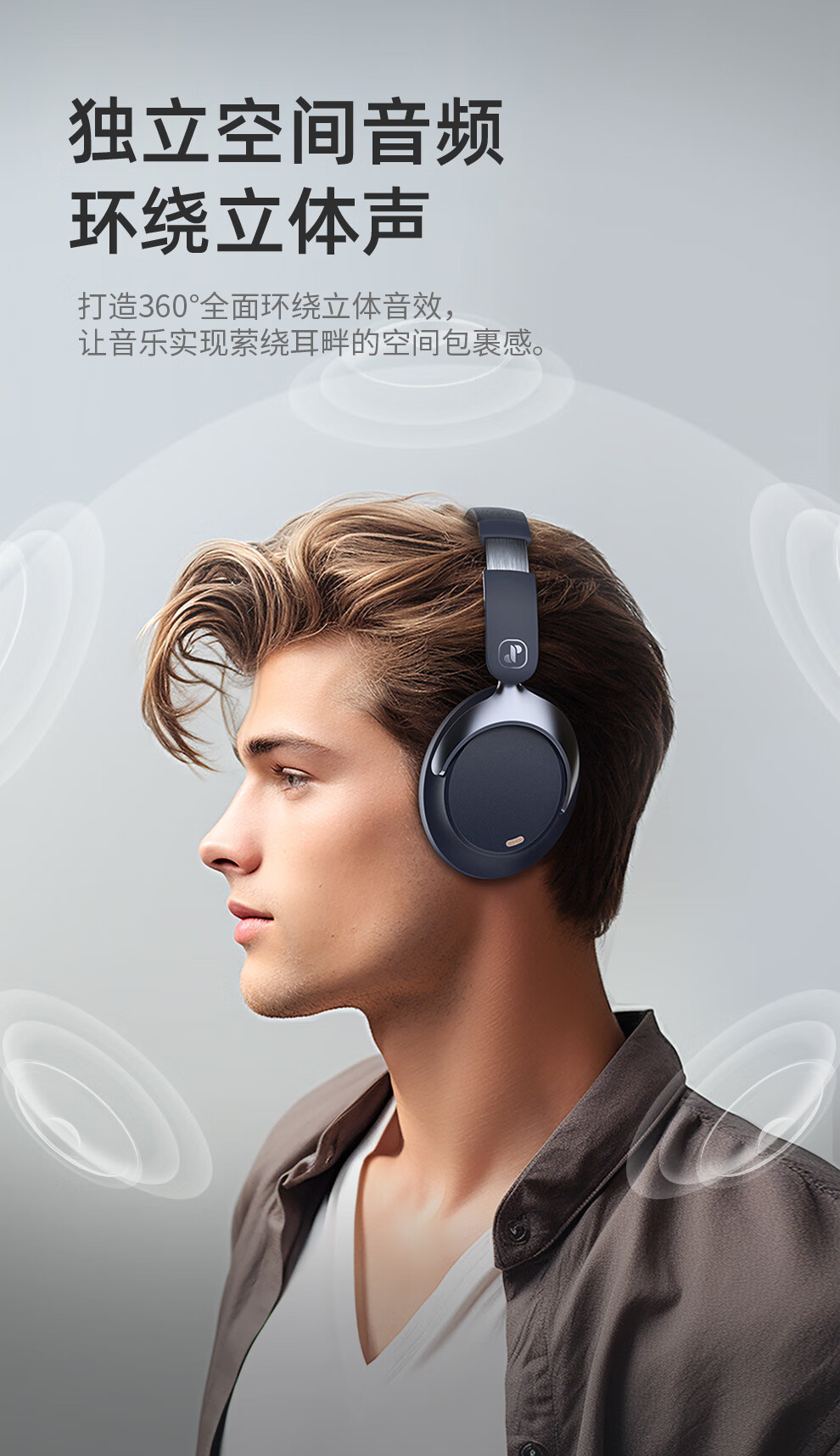 眷蜀JSOUL Mate Pro无线混合降噪主动降噪头戴蓝牙耳机滑动触控低延时超长续航236g 科技灰