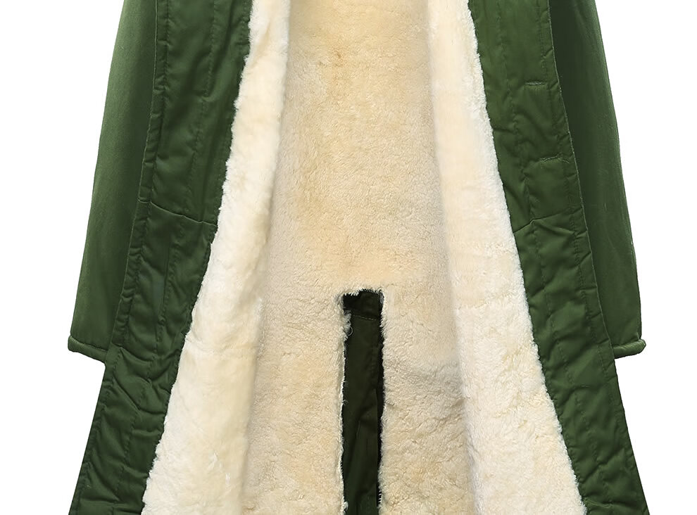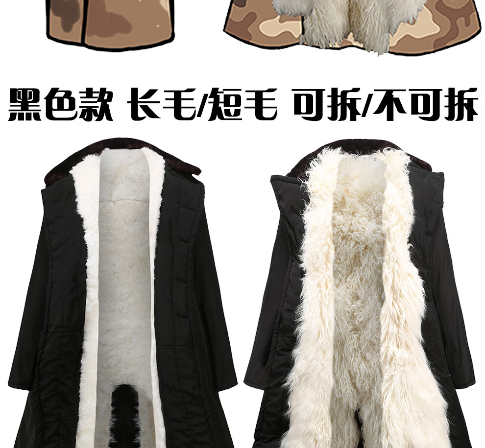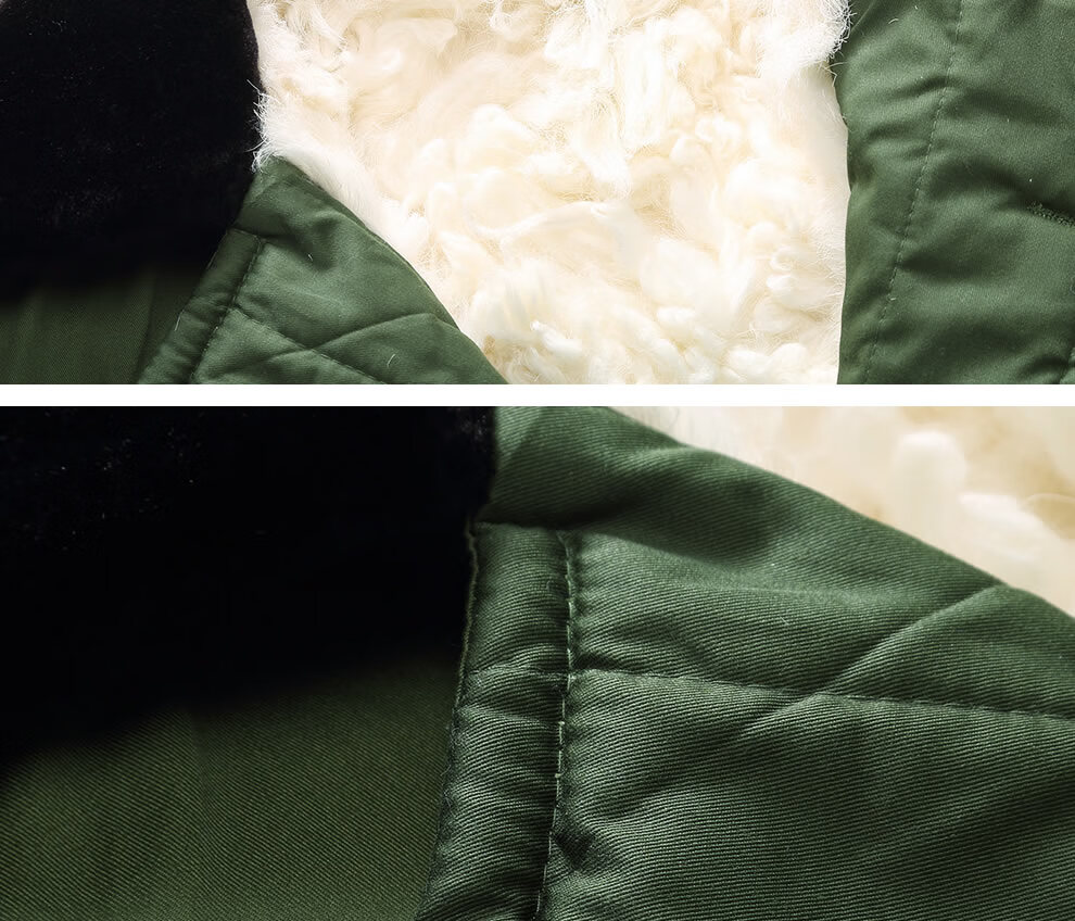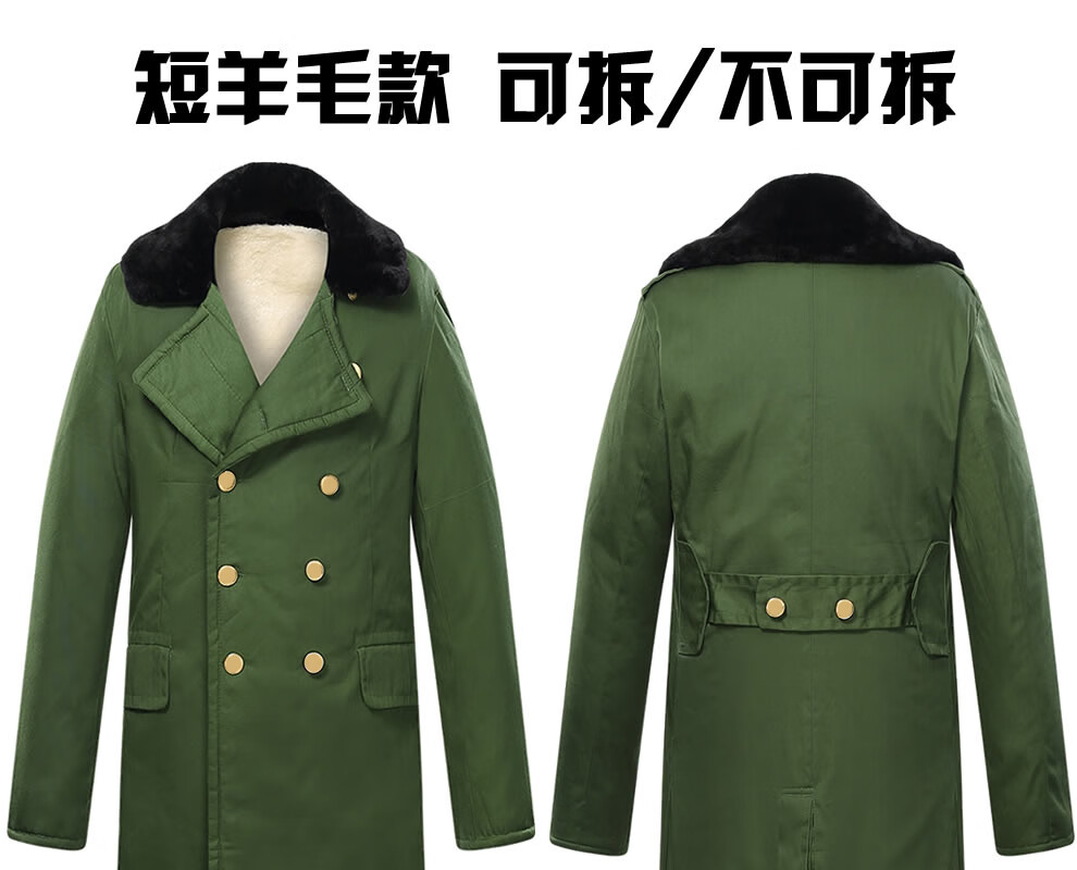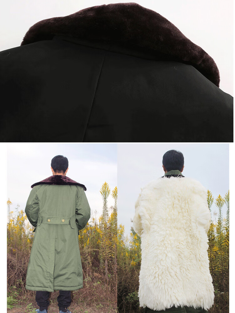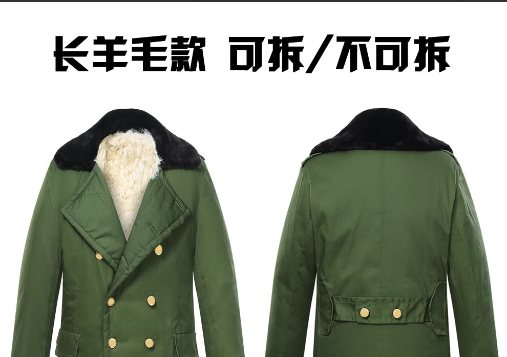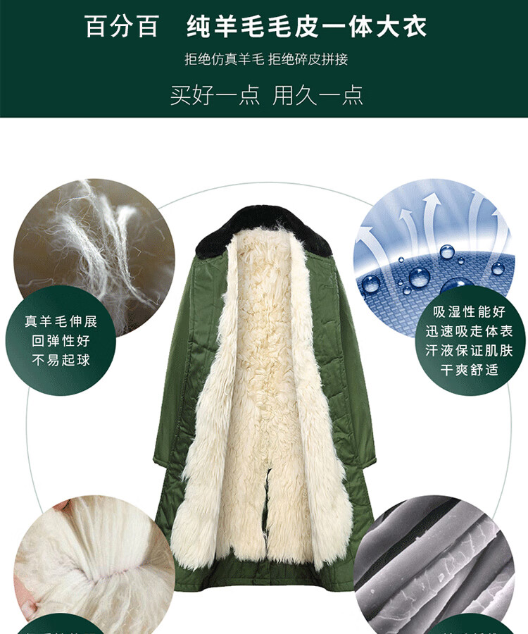 恒源祥羊皮军大大衣男女皮毛一体棉大衣东北皮大衣冬季长款加厚防寒羊毛 绿色-羊毛皮大衣 短毛-中号【可拆款】