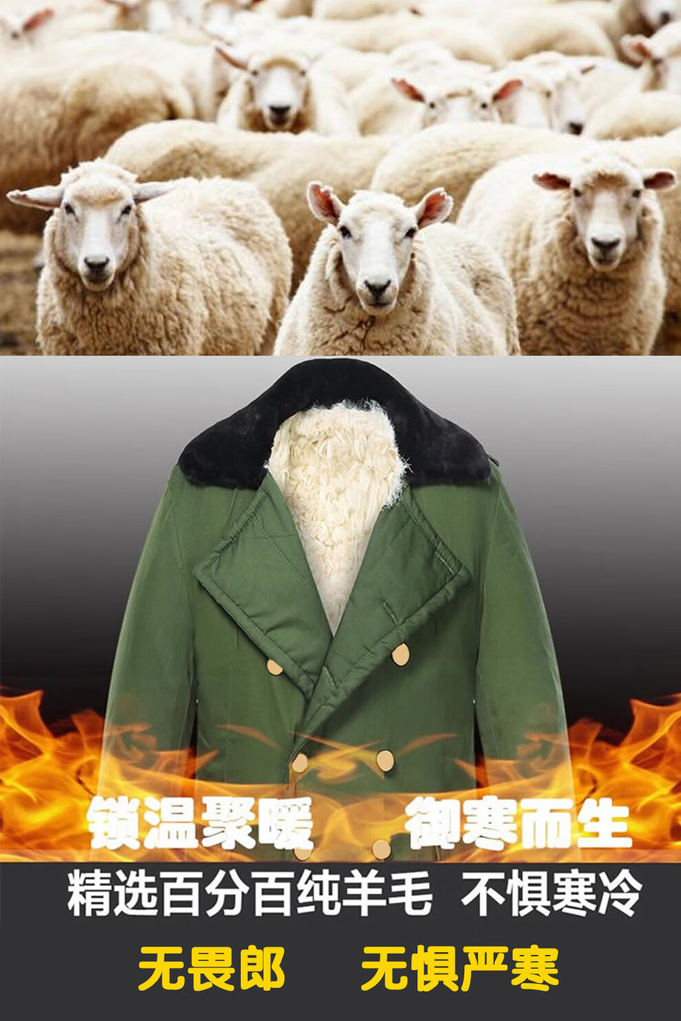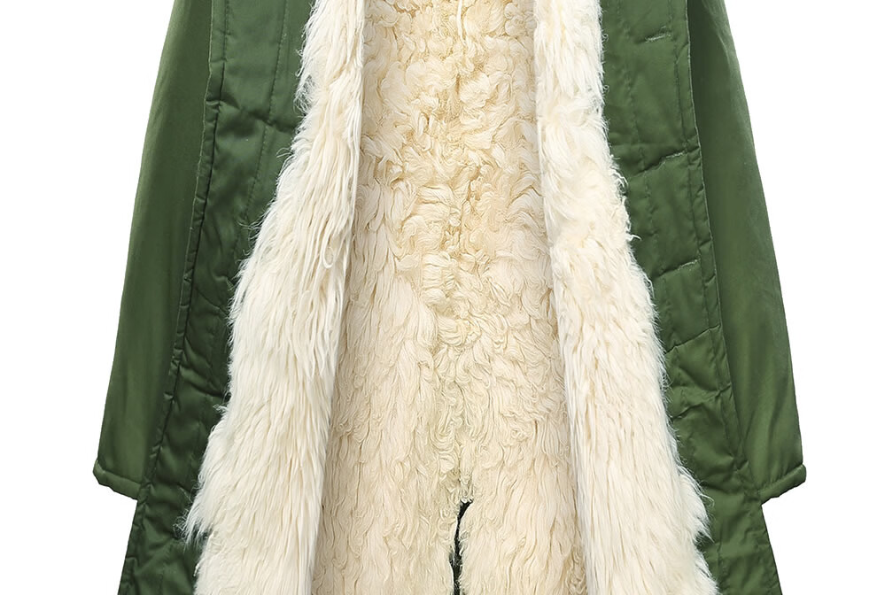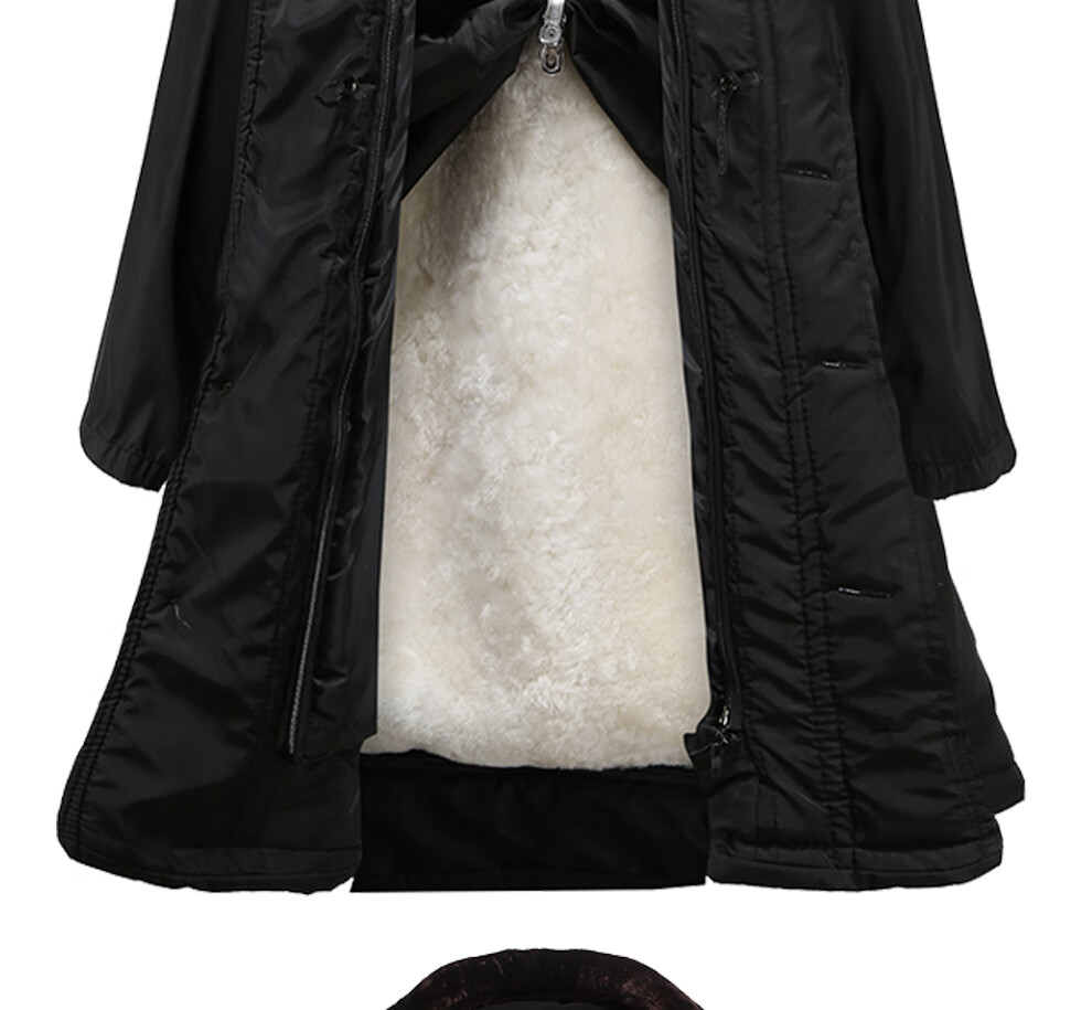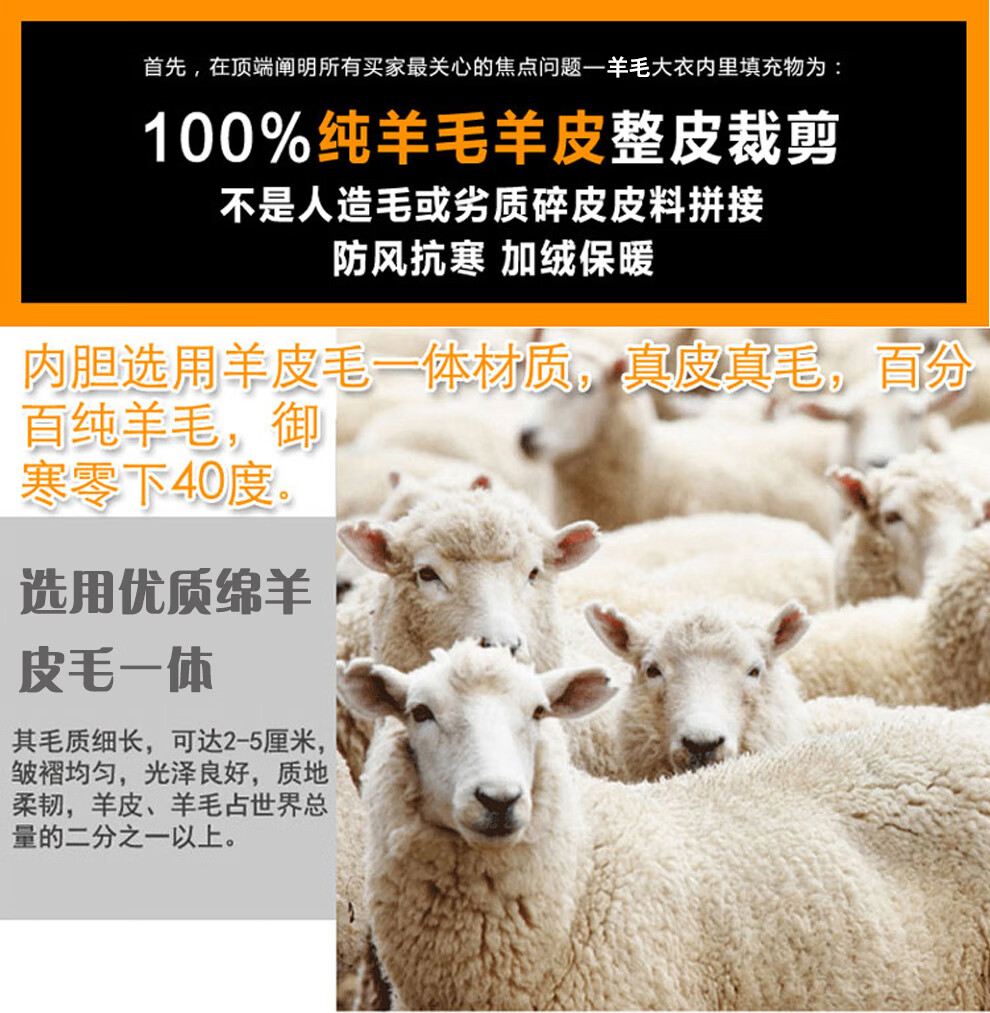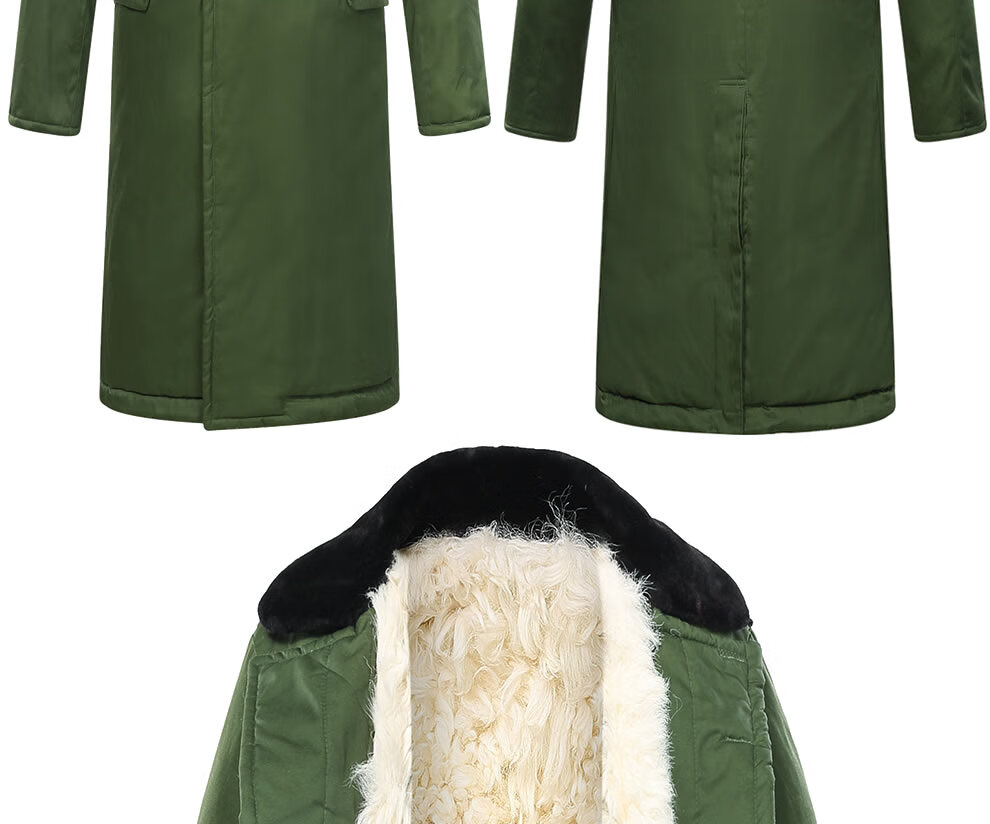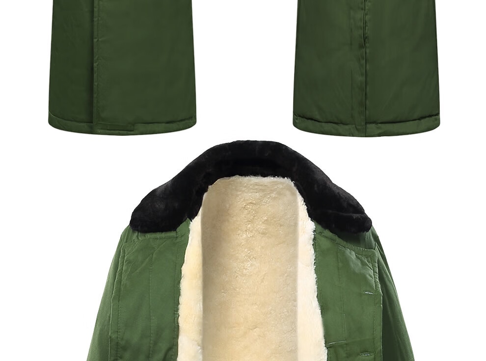 恒源祥羊皮军大大衣男女皮毛一体棉大衣东北皮大衣冬季长款加厚防寒羊毛 绿色-羊毛皮大衣 短毛-中号【可拆款】