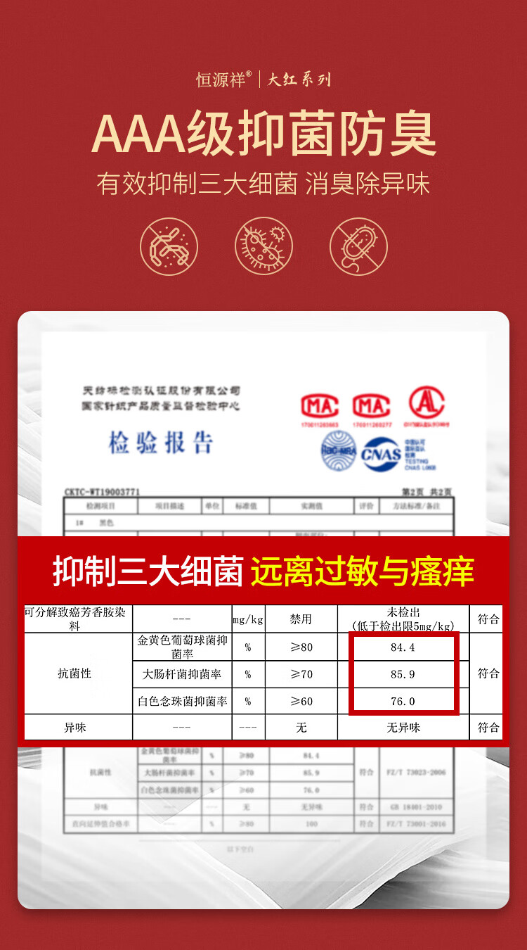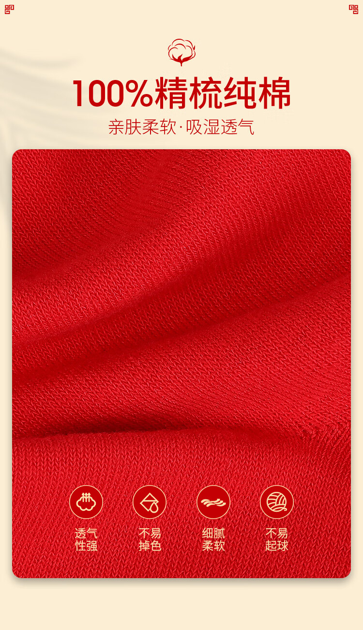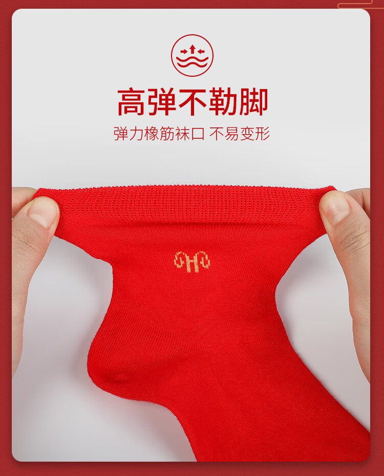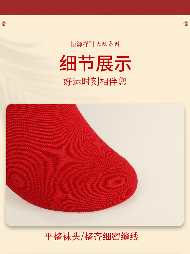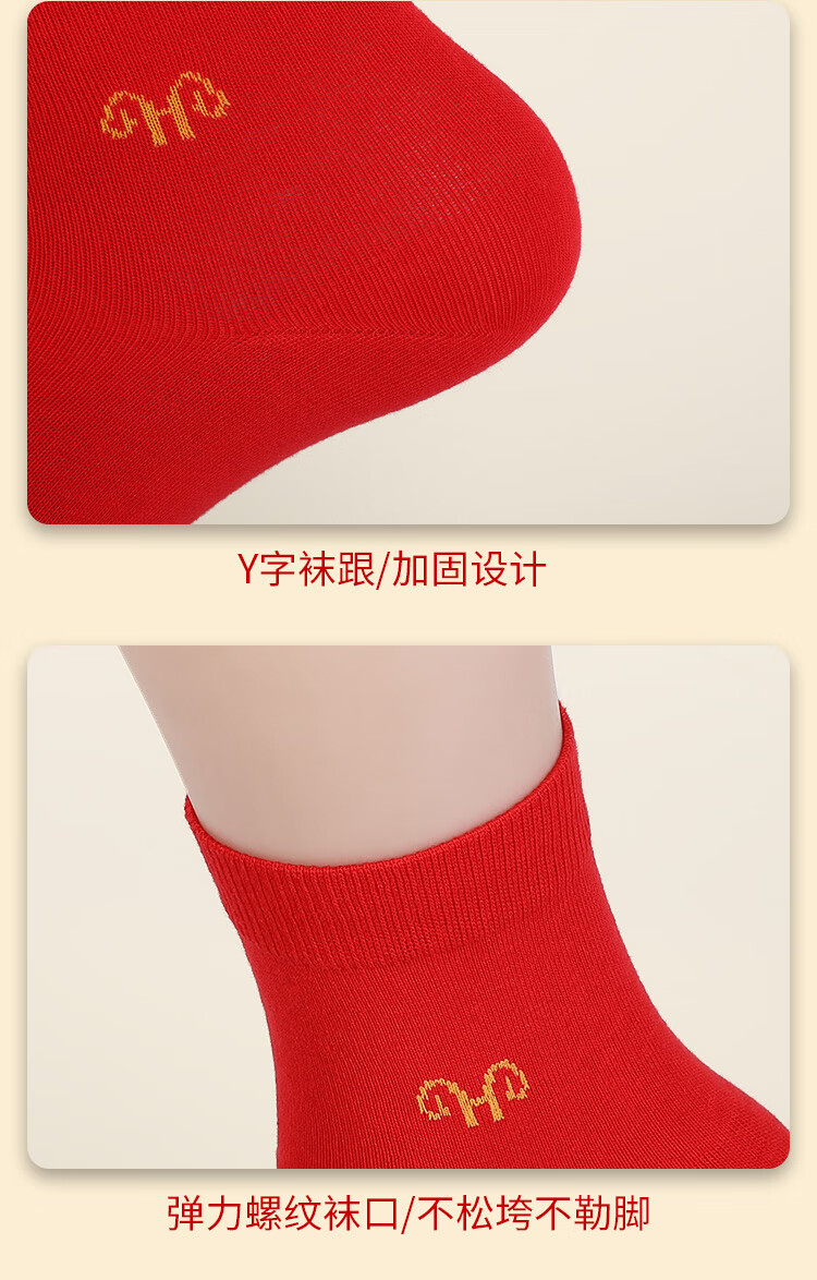 恒源祥本命年大红袜子男女同款纯棉鸿运新年袜子中筒结婚喜庆舒适棉袜 情侣款【纯棉大红3男3女】 6双