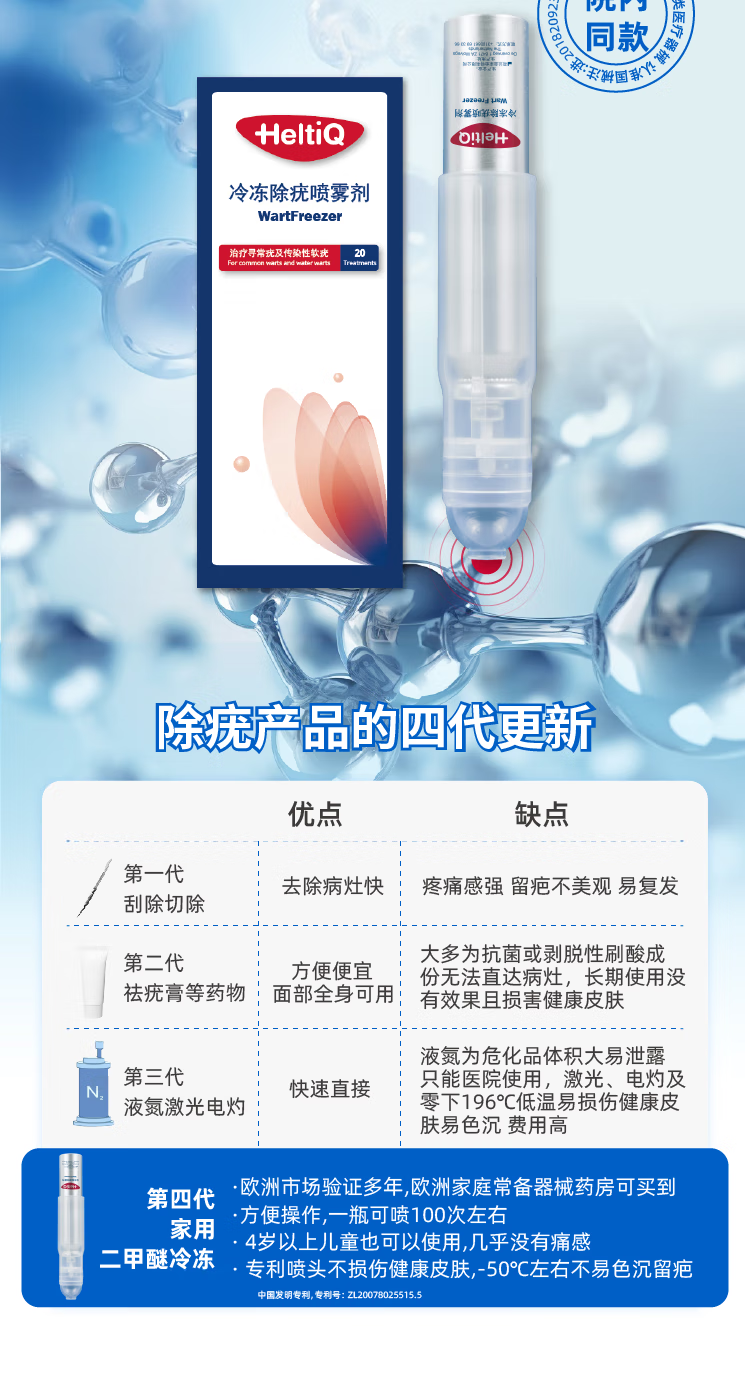 荷迪优液氮冷冻祛疣去疣喷雾剂去除疣体药膏扁平疣丝状疣跖疣疣体脱落膏 2瓶【40颗左右软疣】可洗澡