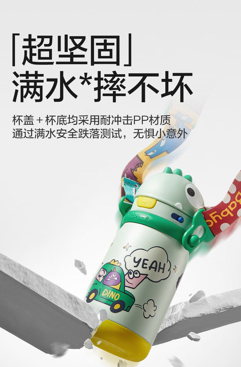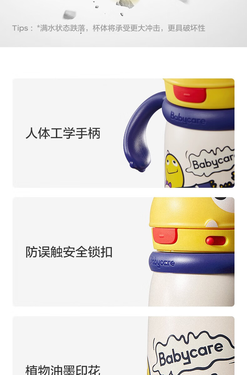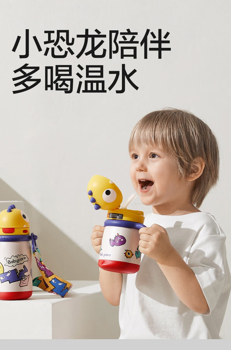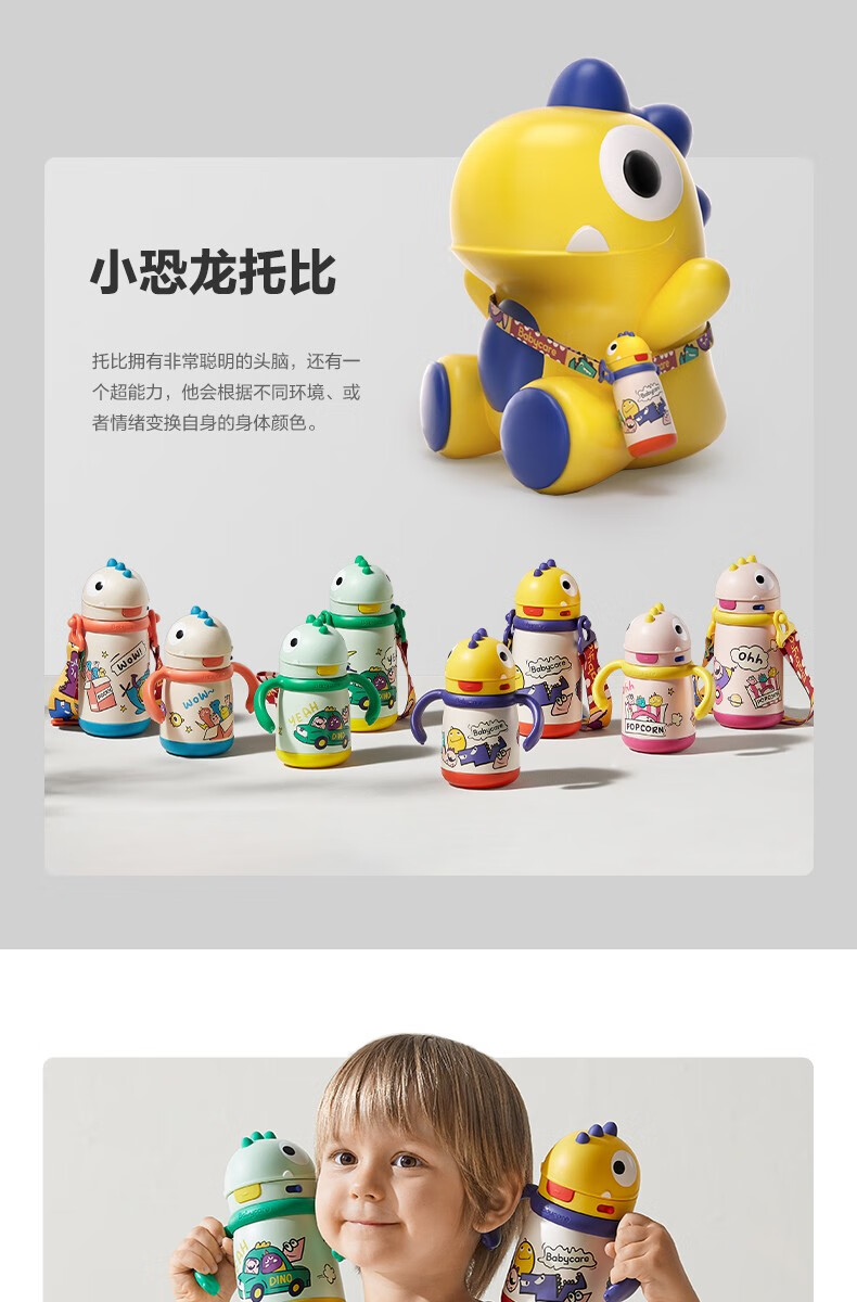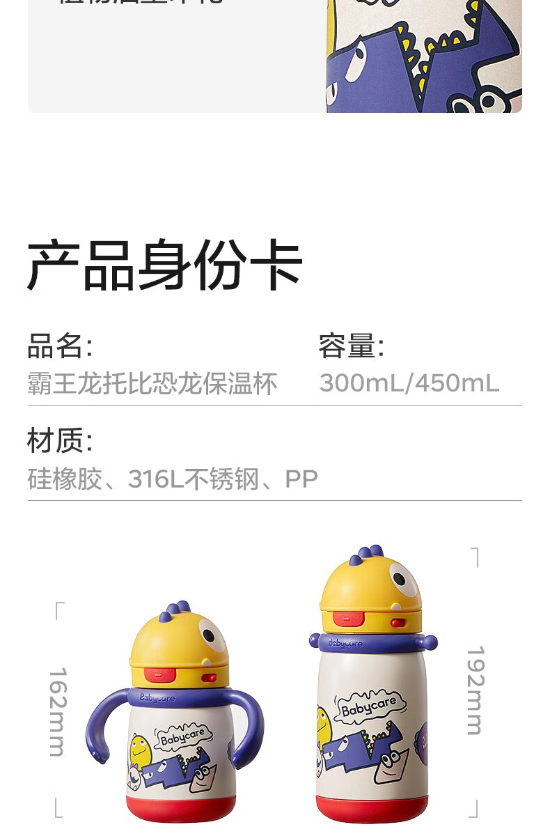 babycare儿童水杯保温杯1-3-6岁吸管杯学饮杯外出喝水杯霸王龙便携水壶 洛克黄 300ml