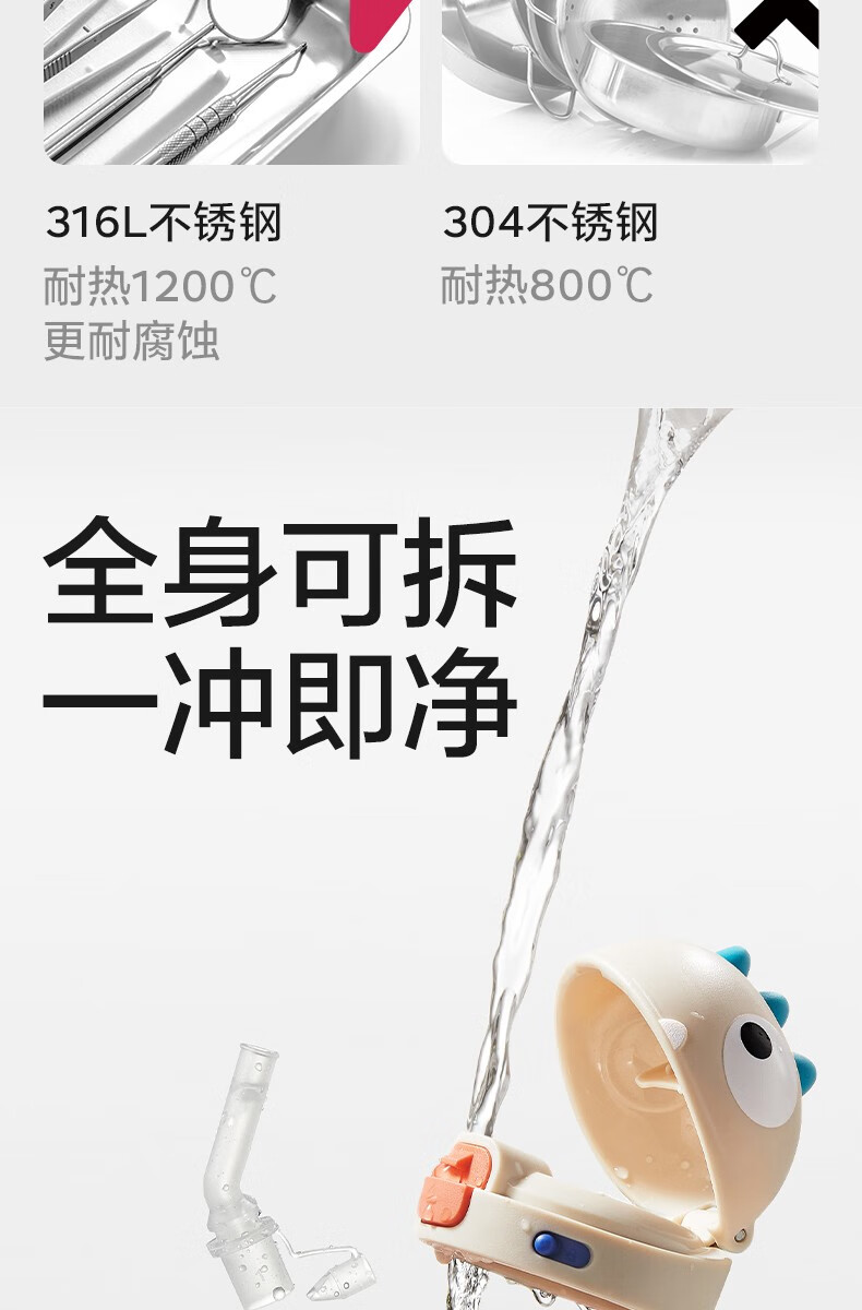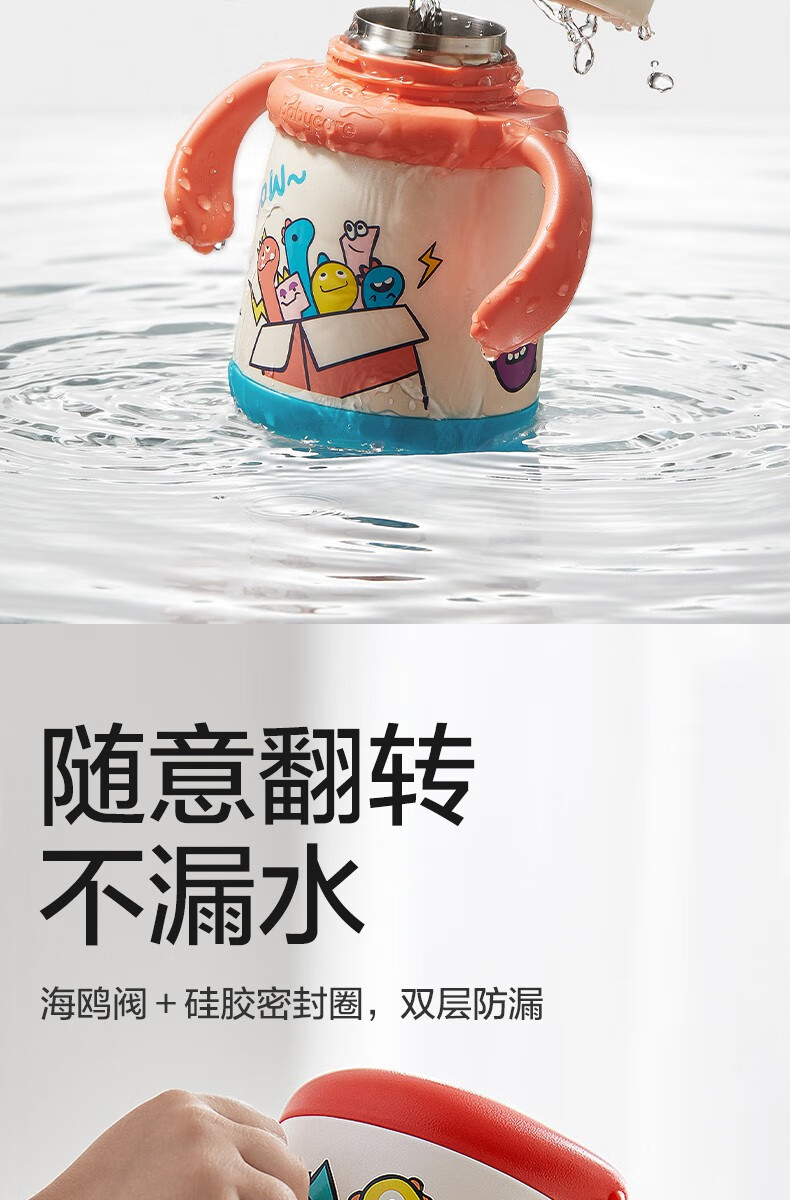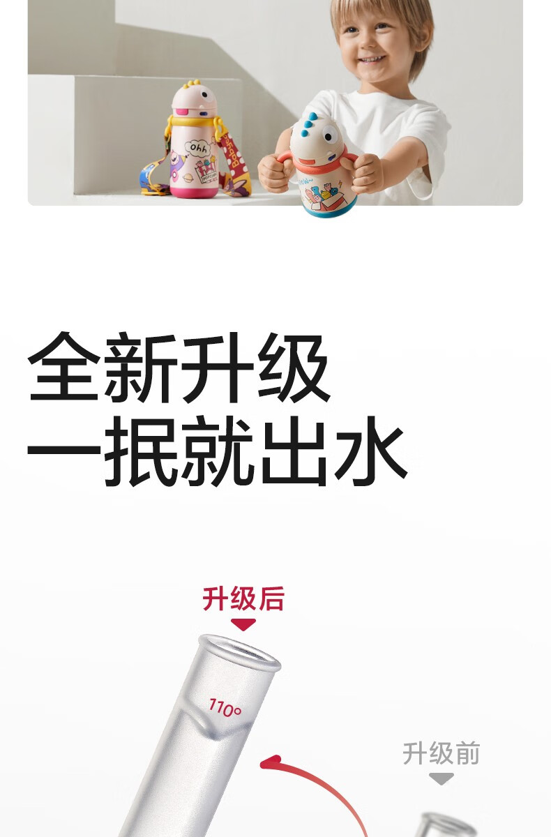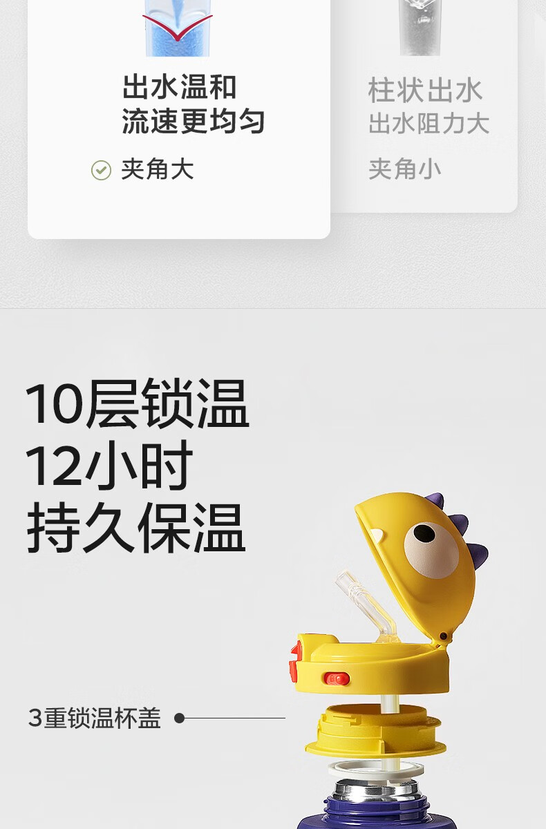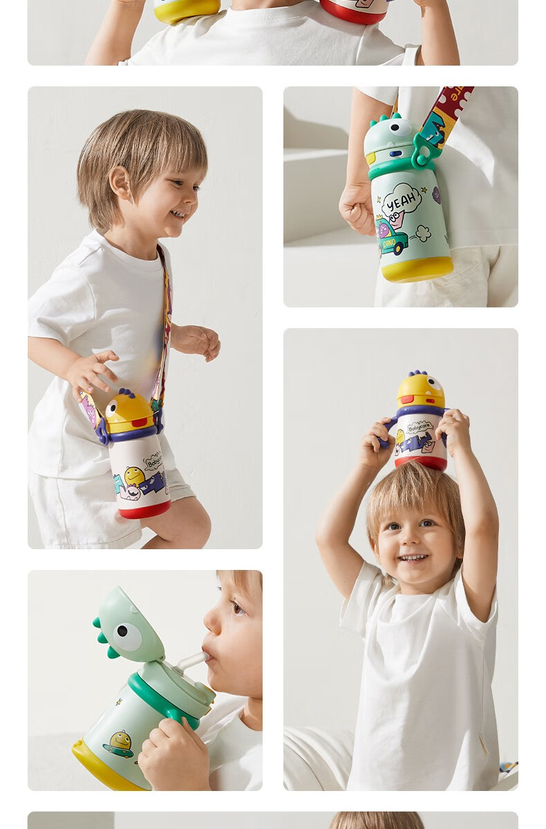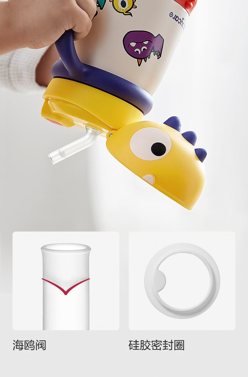 babycare儿童水杯保温杯1-3-6岁吸管杯学饮杯外出喝水杯霸王龙便携水壶 洛克黄 300ml