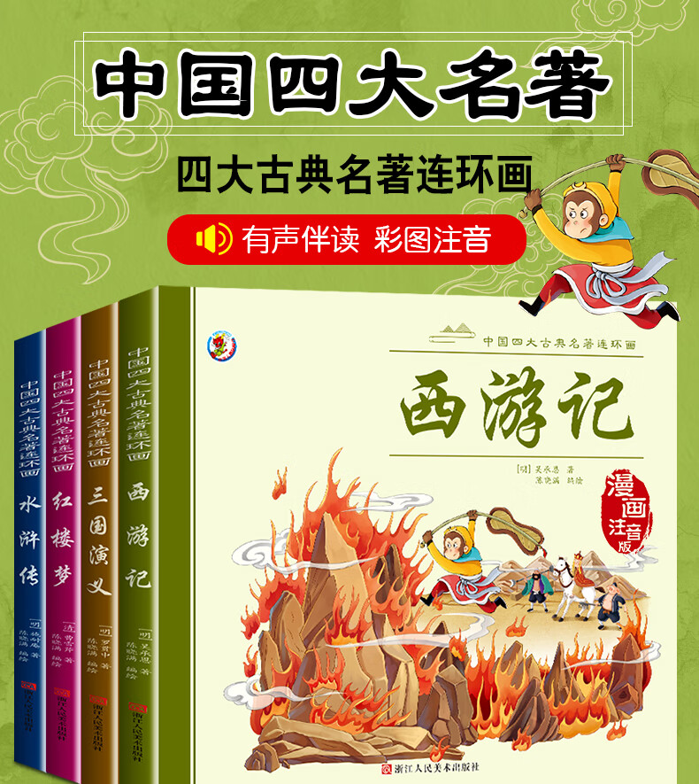 西游记三国演义红楼梦水浒传四大名著全集彩图注音版有声音频扫码一二三四五六年级小学生课外阅读书籍 三国演义+水浒传+红楼梦+西游记【共4本】
