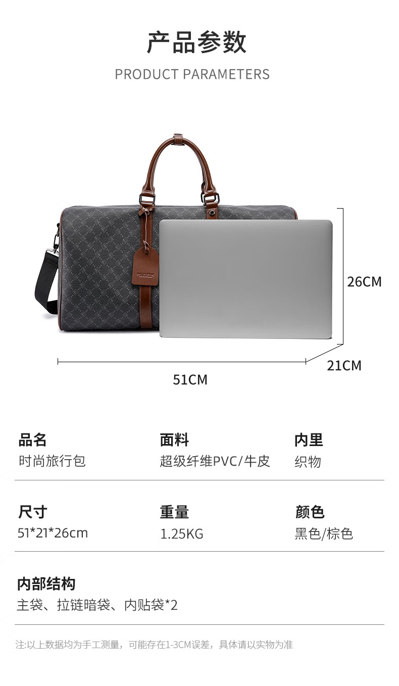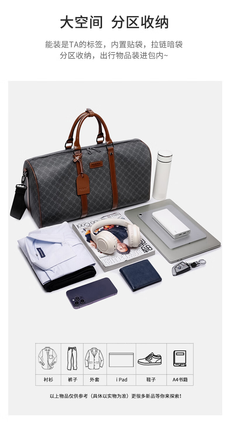 马克华菲旅行包男士干湿分离游泳运动大容量手提旅行包女短途出差收纳背包 黑色【顺丰快递】