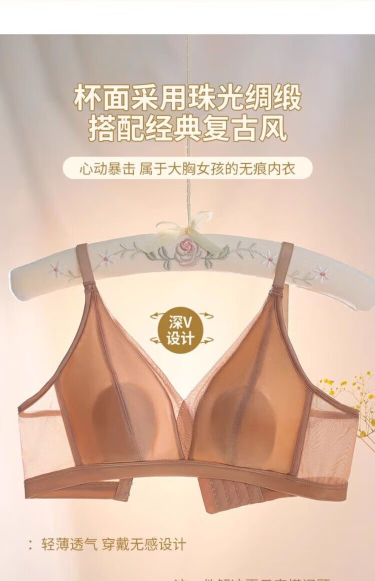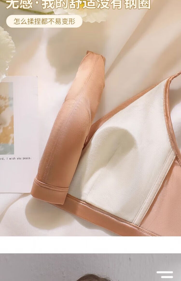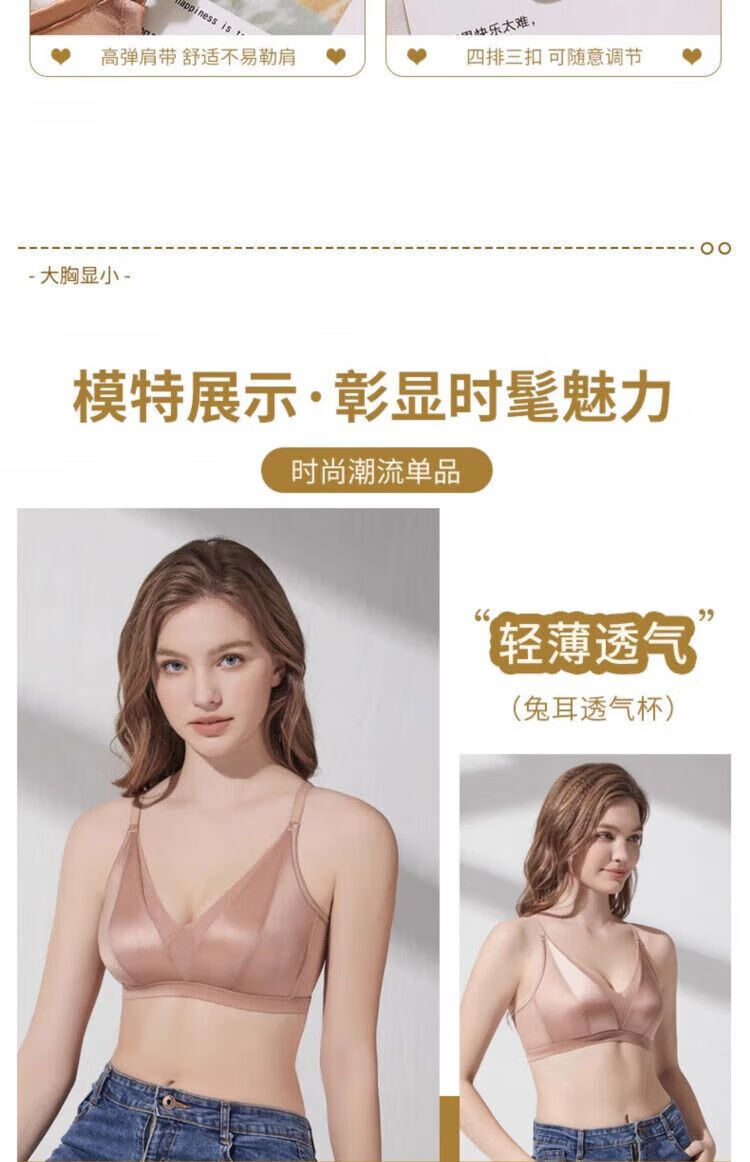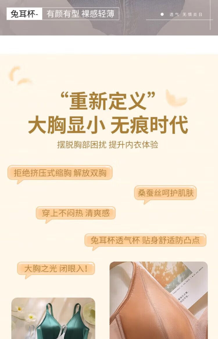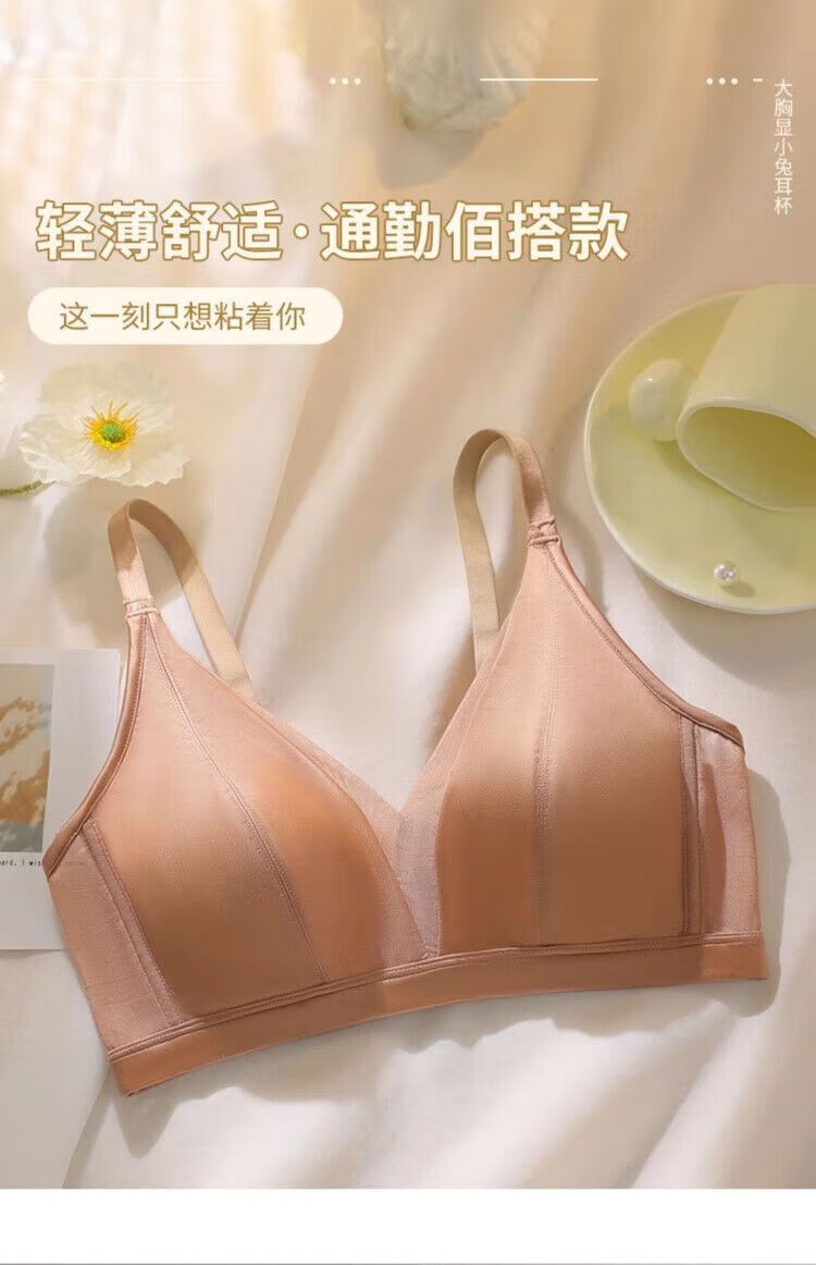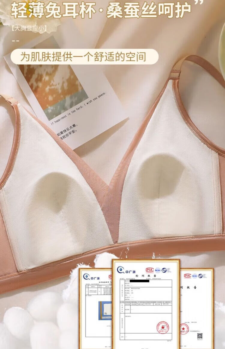 猫人(MiiOW)无钢圈内衣女性感法式三角杯文胸亲肤绸缎桑蚕丝内里大胸显小 浅咖色 2XL 40 BC通杯