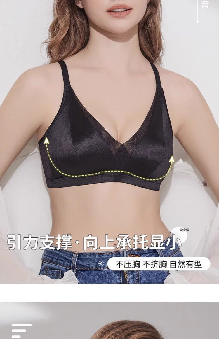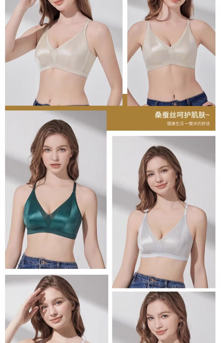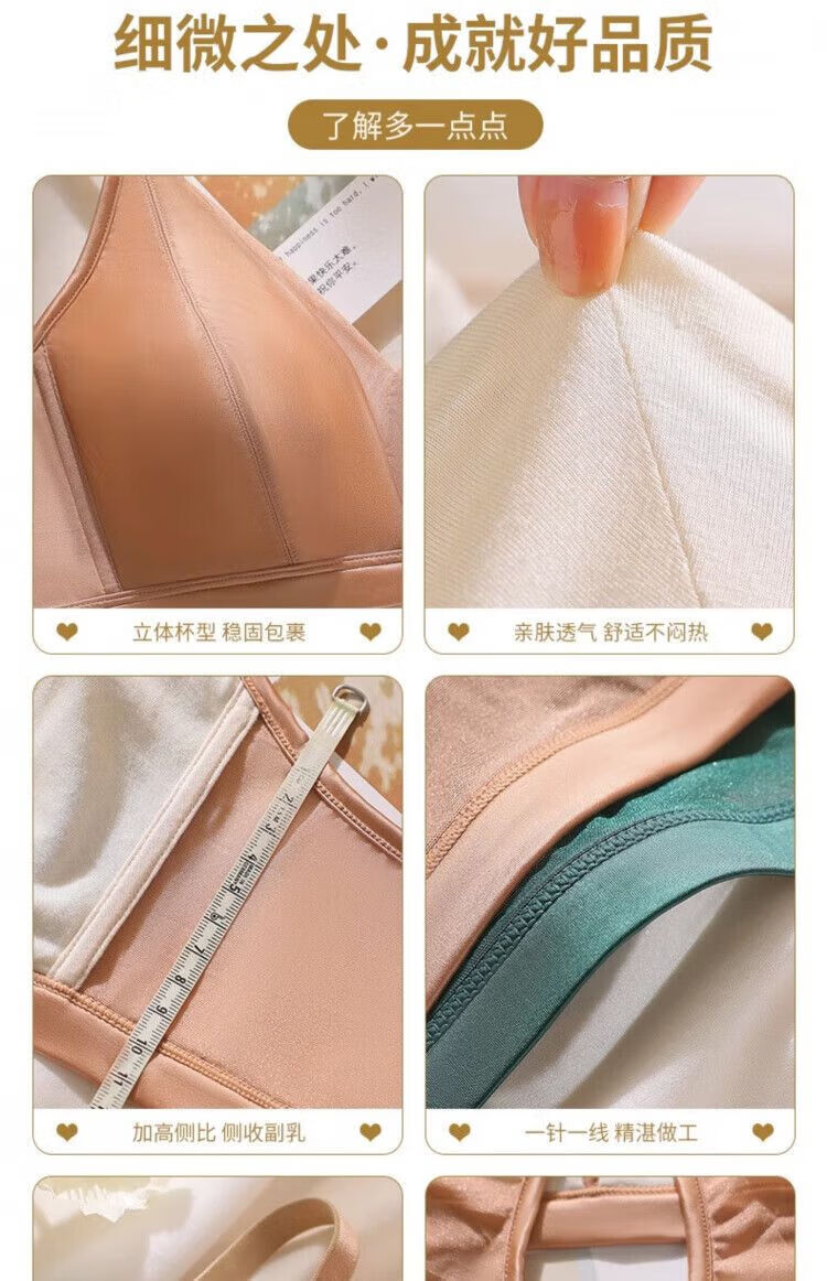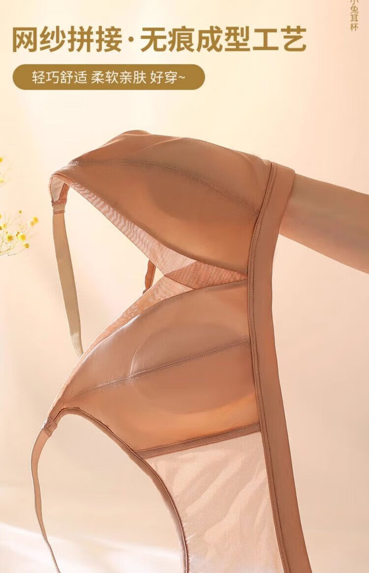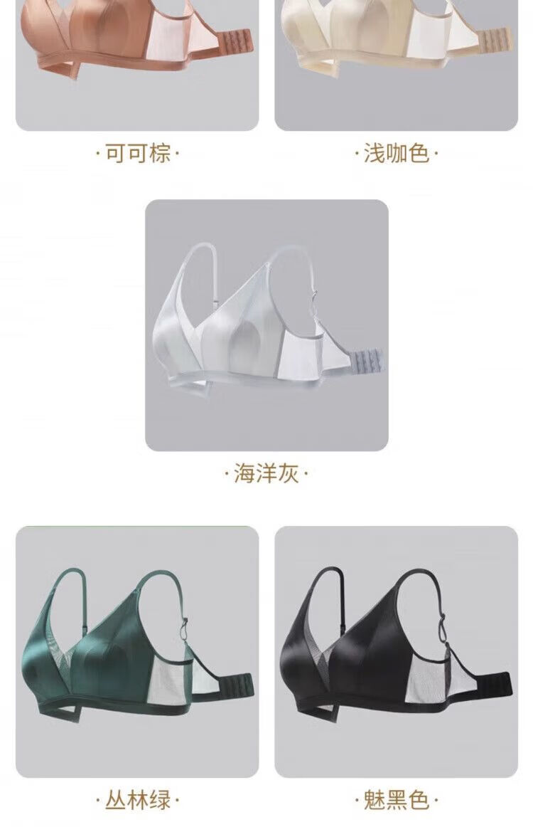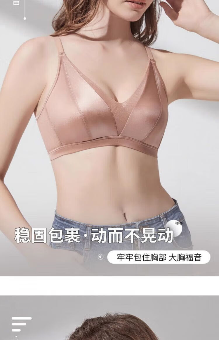 猫人(MiiOW)无钢圈内衣女性感法式三角杯文胸亲肤绸缎桑蚕丝内里大胸显小 浅咖色 2XL 40 BC通杯