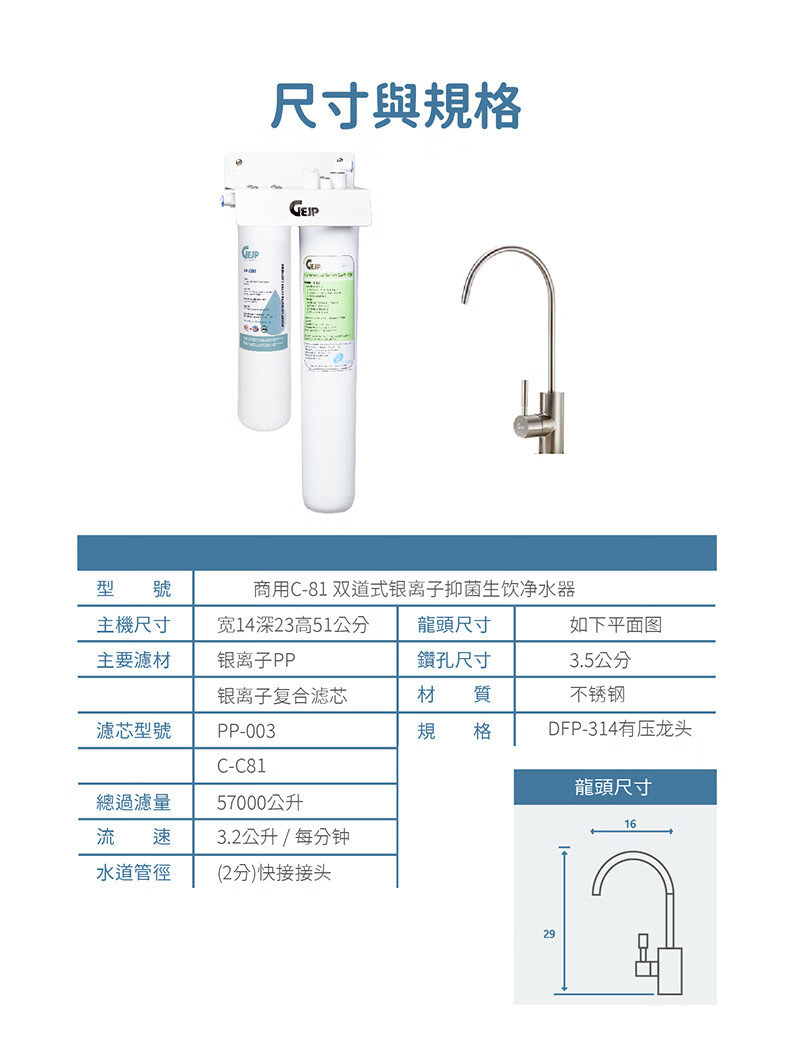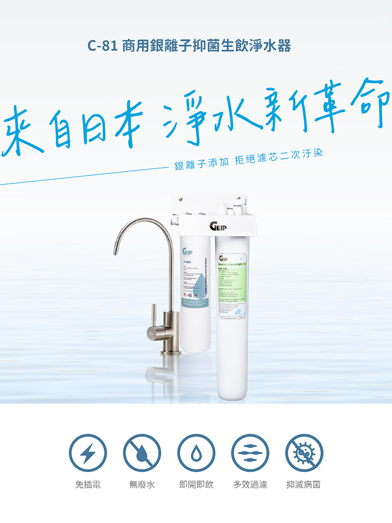 基浦(GEJP)净水器进口商用净水机6L/min gejp厨下式银离子除氯活性炭纤维直饮机C-81