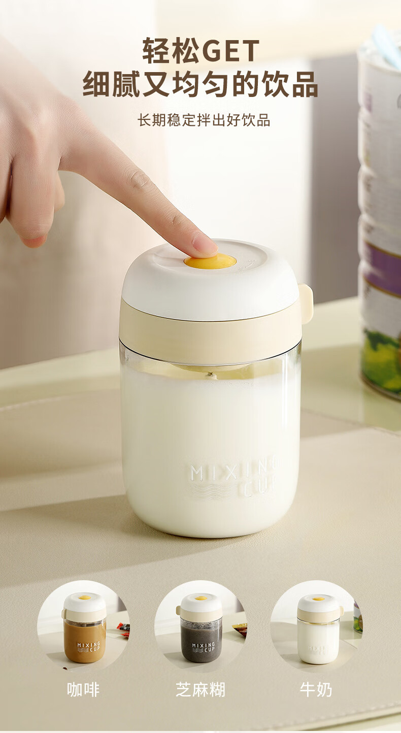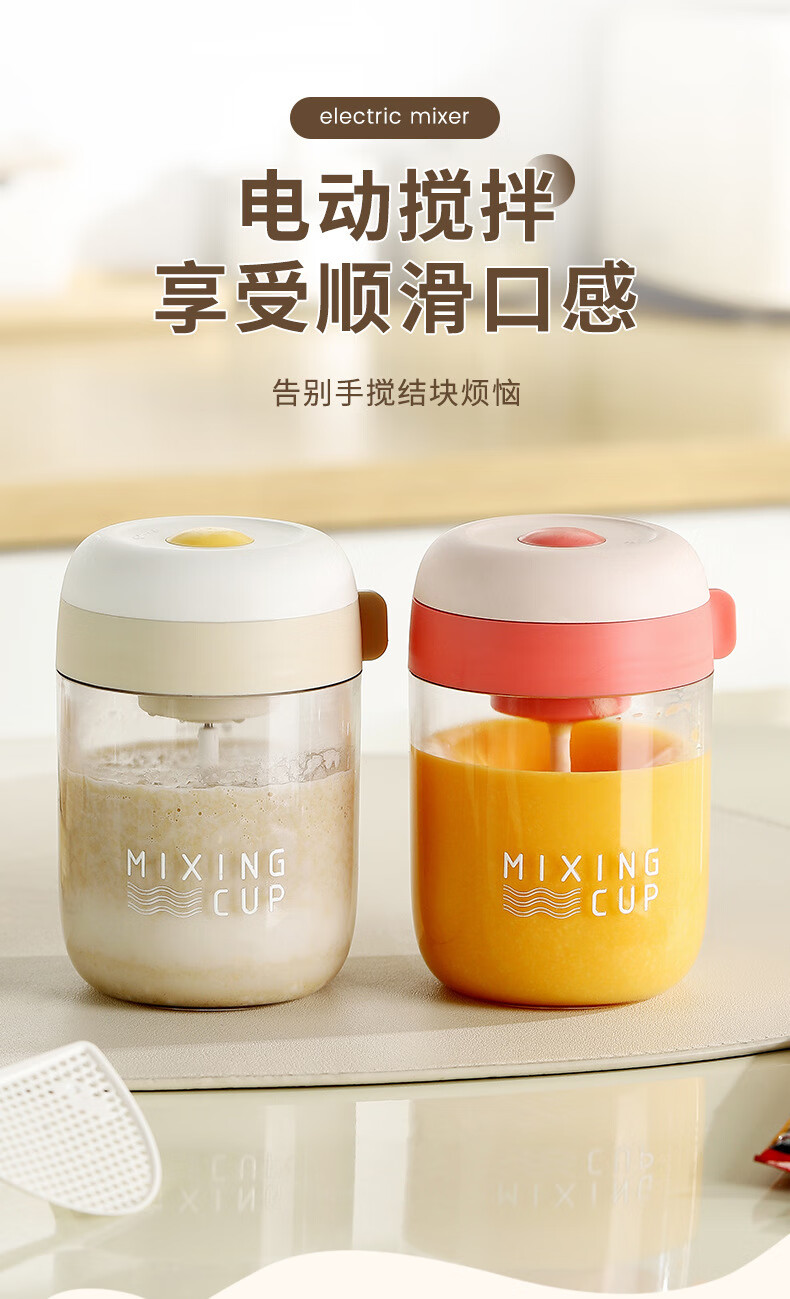 美之扣打蛋器电动家用小型烘焙蛋糕搅拌奶油打发器全自动无线咖啡打泡器搅拌器打发器 浅咖色【电动打蛋搅拌/带过滤器】